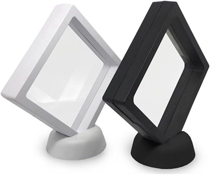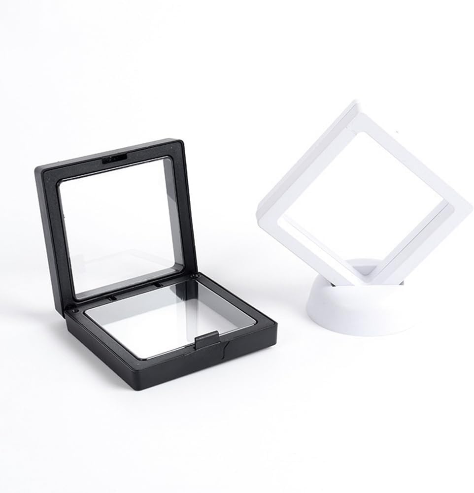 Innovativa galleggiante sospesa, con telaio e supporto in plastica, membrane trasparenti durevoli. Uso multiuso, può essere utilizzato per conservare monete sfida, tutti i tipi di gioielli come orecchini, gemme, anelli; Perfetto per esporre i lati anteriore e posteriore di oggetti da collezione e gioielli. Riutilizzabili, le membrane possono essere lisciate utilizzando un asciugacapelli si forma una piega. Gli oggetti da esposizione sono tenuti tra due membrane trasparenti che fanno sembrare gli oggetti da collezione "fluttuanti" nella cornice. La vetrina inoltre protegge il tuo prezioso oggetto maggior parte 'aria, 'umidità e della polvere, garantendo che i tuoi oggetti siano in perfette condizioni.