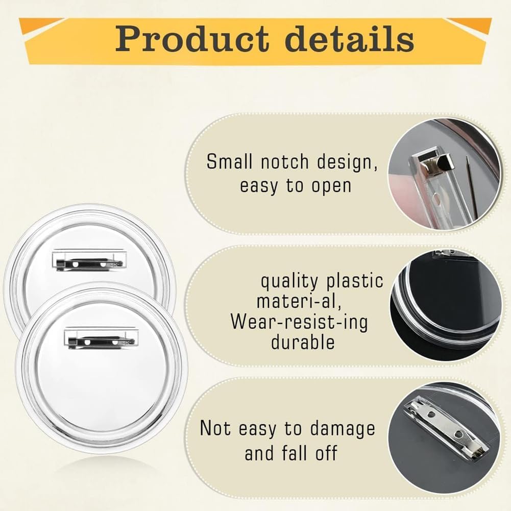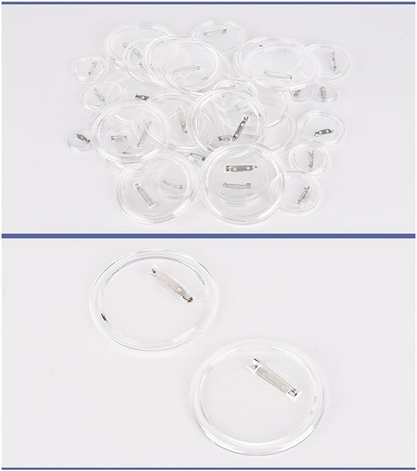 [MATERIALE DI ALTA QUALITÀ] Realizzati in acrilico trasparente e durevole che resiste all'usura, questi spilli a sono progettati per un uso ripetuto. Ogni spillo è confezionato singolarmente per evitare graffi e garantire la qualità. [DESIGN USER-FRIENDLY] Crea facilmente i tuoi pulsanti personalizzati bisogno di strumenti speciali. Posiziona semplicemente la tua immagine tra le due coperture e premi con decisione per chiudere. Controlla la sicurezza del perno tirandolo leggermente per assicurarti che fissato saldamente. [VERSATILE E RIUTILIZZABILE] Il design trasparente consente una creatività infinita. Inserisci i tuoi design o messaggi e modificali tutte le volte che vuoi per adattarli a diversi o esigenze promozionali. [AMPIA APPLICAZIONE] Ideale per lavori DIY, spille fotografiche, progetti scolastici o come regali unici. Crea spille memorabili per amici, colleghi o speciali come compleanni e matrimoni, esaltando il tocco personale.