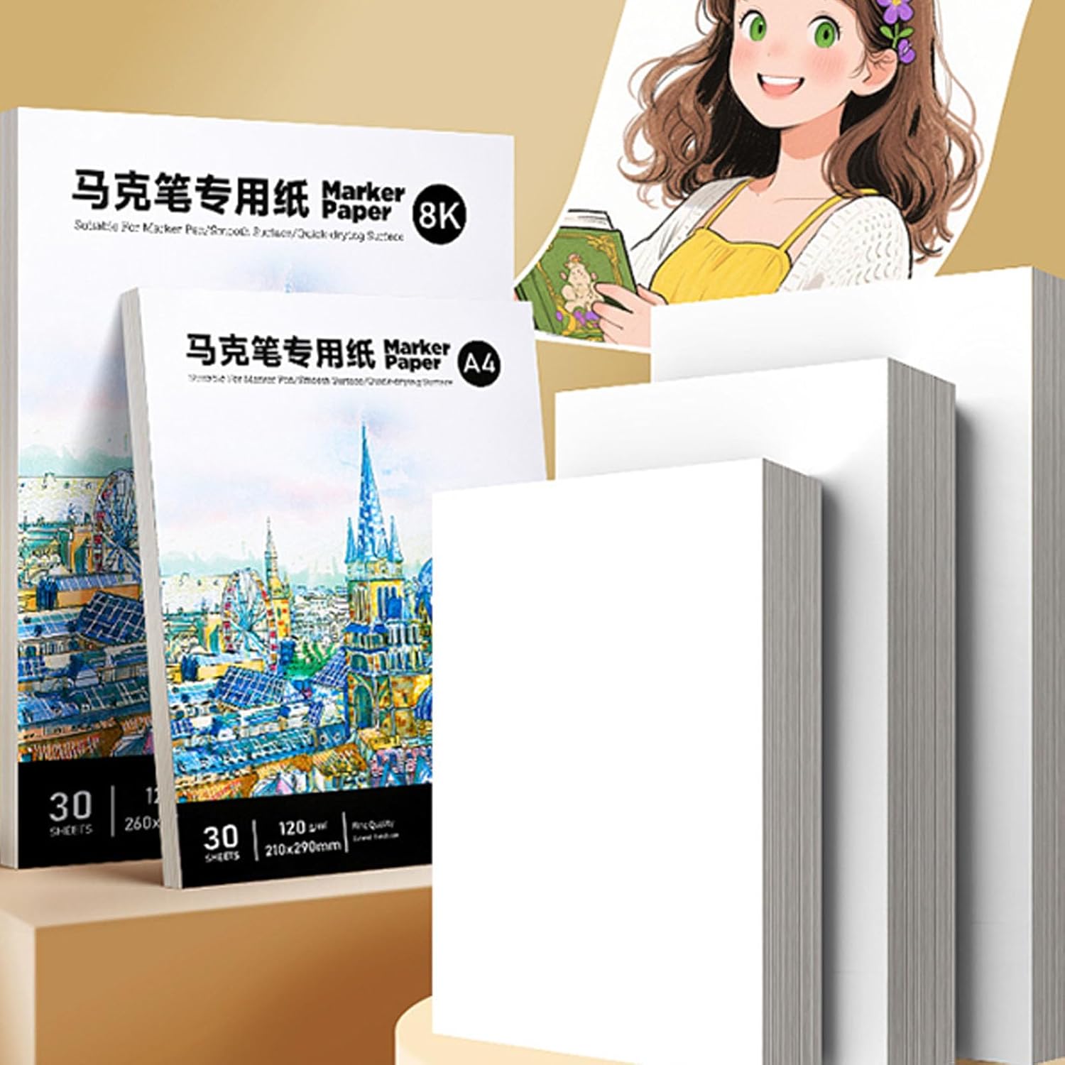 Il blocco per pennarelli di alta qualità da 30 fogli presenta un design a prova di sbavatura su entrambi i lati, ottimizzato per pennarelli basati su o ghosting consentendo allo stesso tempo versatile Ideale per illustratori professionisti e appassionati che richiedono opere d'arte dettagliate, architettoniche o progetti con tecnica mista Ecologico apprezzerà il , che mantiene l'archiviazione sostenendo pratiche sostenibili su 30 superfici riutilizzabili Ogni foglio da 8 K vanta una consistenza liscia che migliora la vivacità del colore e la precisione, con una struttura spessa 120 g/m² che garantisce durata attraverso molteplici tecniche di stratificazione Compagno perfetto per postazioni di lavoro in studio, dimostrazioni in aula e schizzi all'aperto grazie alle dimensioni portatili e ai fogli resistenti agli strappi che resistono a frequenti trasporti