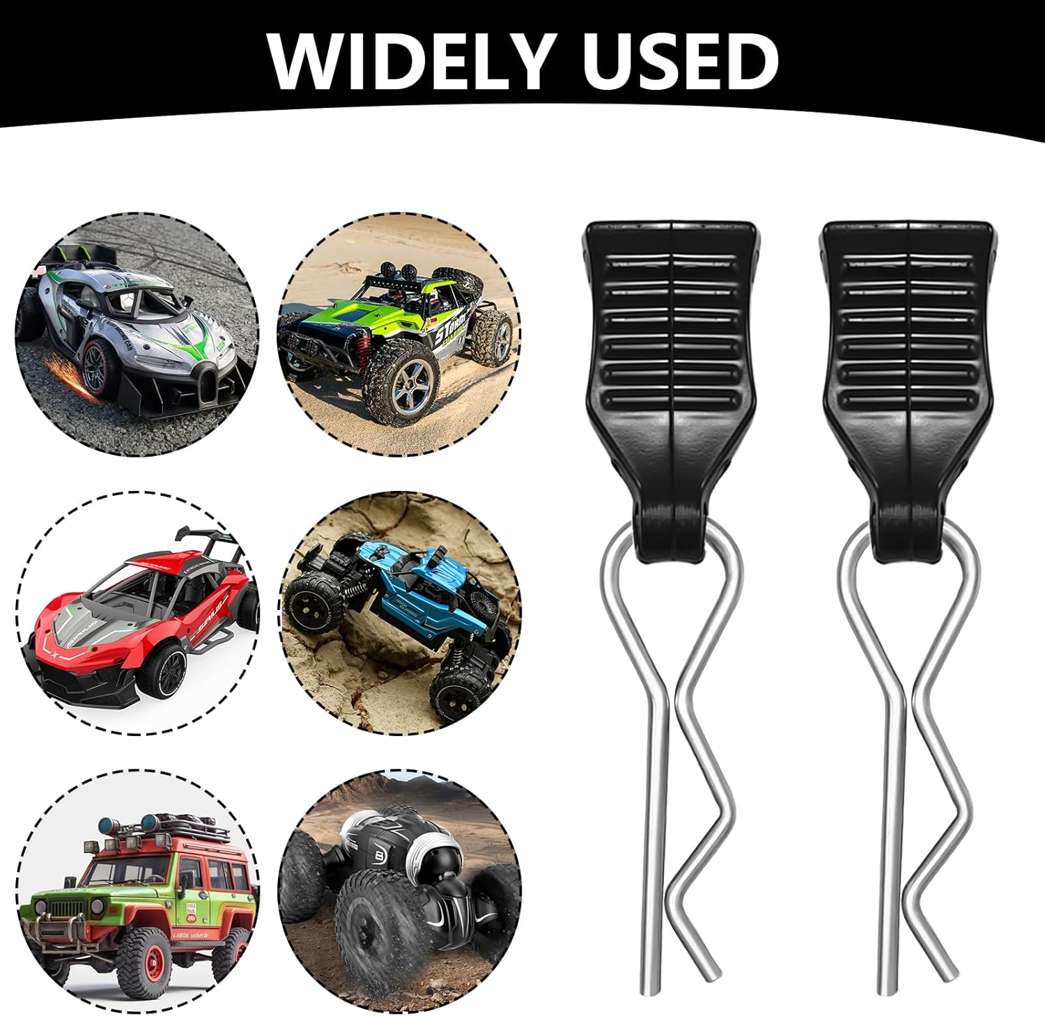 Quantità Nella Confezione: La confezione contiene 30 ricambi clip carrozzeria rc neri, una quantità sufficiente per soddisfare le esigenze quotidiane di utilizzo, sostituzione e ricambio Materiale di Alta Qualità: R clip rc è realizzato in metallo di alta qualità, resistente e durevole, altamente rigido e resiliente, resistente alla deformazione, alla corrosione e alla rottura, adatto per un uso a lungo termine Facile da Installare: Clip nere per carrozzeria rc è dotato di un design con estremità ricurve che consente un'installazione e uno smontaggio rapidi e manuali senza l'ausilio di attrezzi, garantendo un funzionamento semplice e un risparmio di tempo e fatica Fissaggio Stabile: Clip per carrozzeria rc fissa saldamente il corpo e la carrozzeria dell'auto telecomandata, impedendo efficacemente lo scivolamento e la caduta durante la guida e proteggendo efficacemente i componenti interni dell'auto telecomandata Ampia Applicabilità: Clip carrozzeria rc è adatto a molti modelli comuni di auto telecomandate in scala 1/8, 1/10, 1/12, 1/14, 1/16, 1/18 e 1/20, sia per le gare su pista che per le avventure fuoristrada, soddisfacendo diverse esigenze di utilizzo