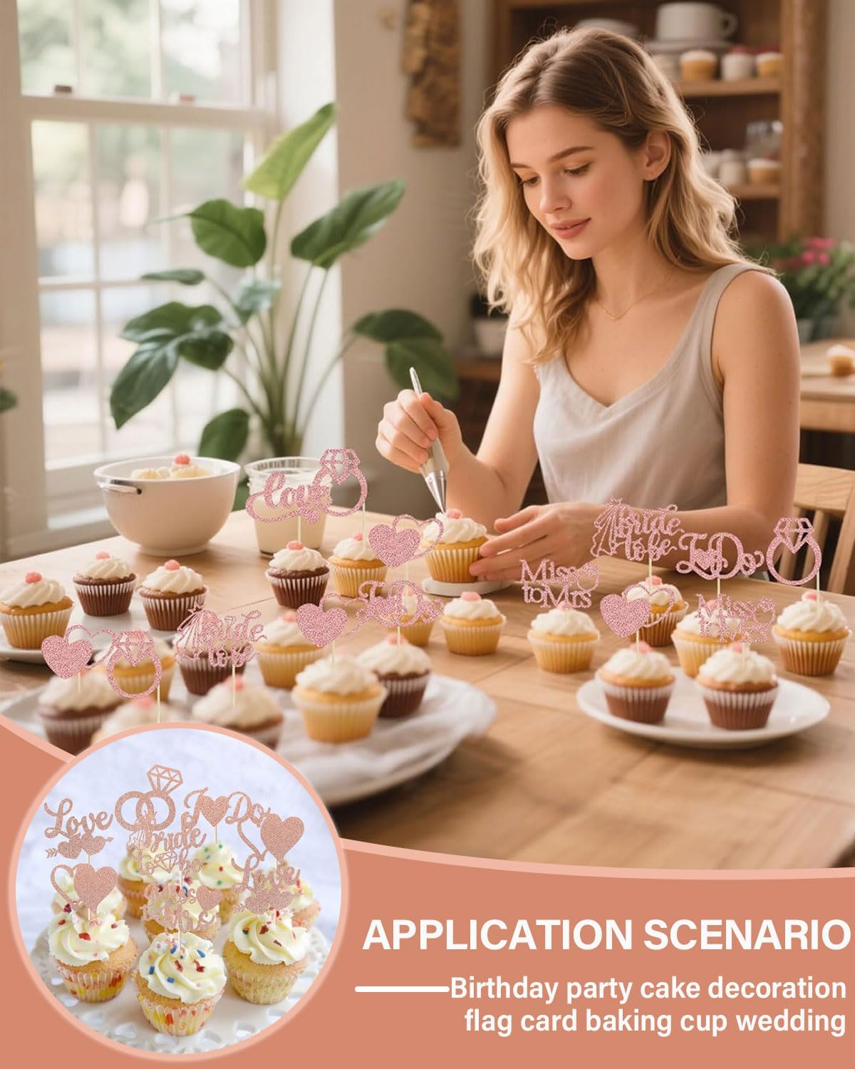 Materiale: i nostri topper per cupcake sono realizzati in cartone spesso glitterato monofacciale di alta qualità, robusto e durevole Confezione: contiene 30 decorazioni per cupcake per soddisfare le tue diverse esigenze decorative. Le dimensioni sono 5,6 x 12,7 cm (con bastoncini). Queste decorazioni per cupcake sono preassemblate e puoi usarle subito dopo averle ricevute. Utilizzo: perfetto per decorare cupcake, biscotti, torte, frutta, brownies, gelati, ecc., particolarmente adatto per graziosi e perfetti addii al nubilato, feste a tema per sposi, addii al nubilato, forniture per decorazioni per cupcake per feste di fidanzamento e matrimonio. Suggerimenti: questi topper per cupcake non sono commestibili, solo per decorazione, non utilizzare in forno o nel microonde Miglior servizio: se non sei soddisfatto dei nostri prodotti o riscontri problemi di qualità, contattaci e ti serviremo con tutto il cuore!