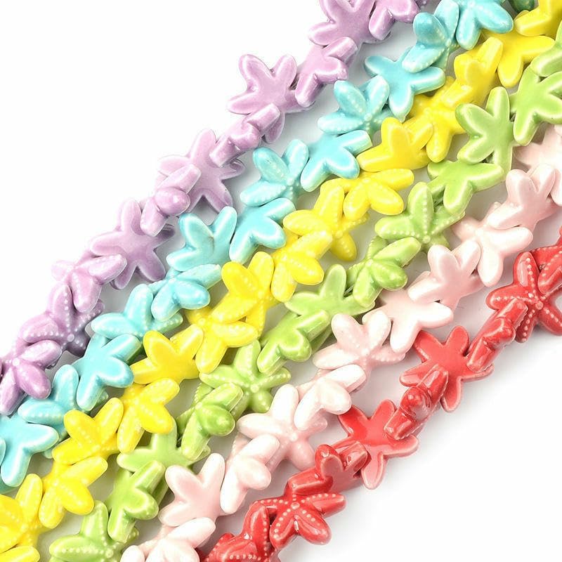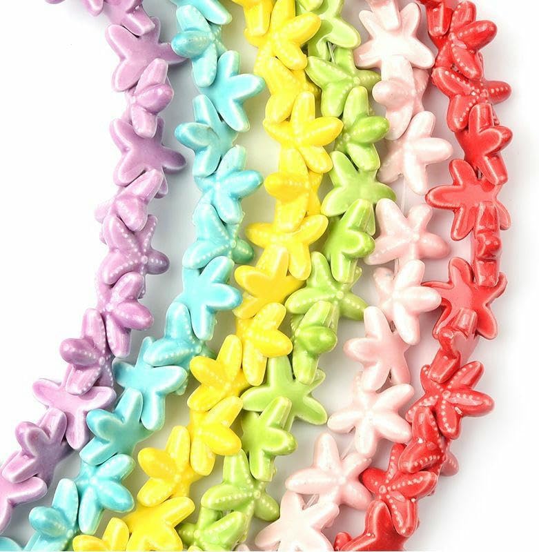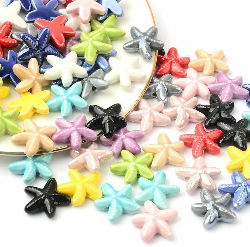 Perline sfuse in ceramica smaltata a forma di stella marina, dimensioni: 18 mm, diametro del foro: circa 2 mm, 9 colori, 30 pezzi/confezione Queste perle di porcellana a forma di stella marina fatte a mano sono realizzate in ceramica, hanno un aspetto liscio, non si rompono o sbiadiscono facilmente, sono comode da indossare e possono essere utilizzate a lungo Queste perline sfuse in ceramica a forma di stella marina sono perfette per essere utilizzate con cordini in pelle, corde di canapa, strisce di tessuto intrecciato e altri materiali per perline per arricchire le tue possibilità di design con perline Queste perle di ceramica colorate sono progettate a forma di stella marina, con colori intensi e un aspetto unico, perfette per braccialetti di perline per una vacanza al mare Queste graziose perline artigianali a forma di stella marina in porcellana sono perfette per realizzare braccialetti, collane, orecchini, ciondoli, portachiavi e vari lavori fai da te
