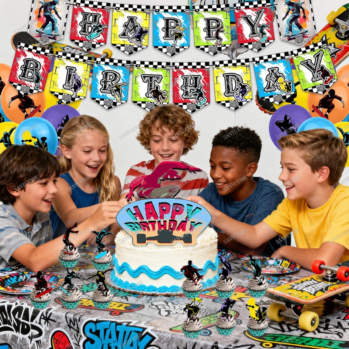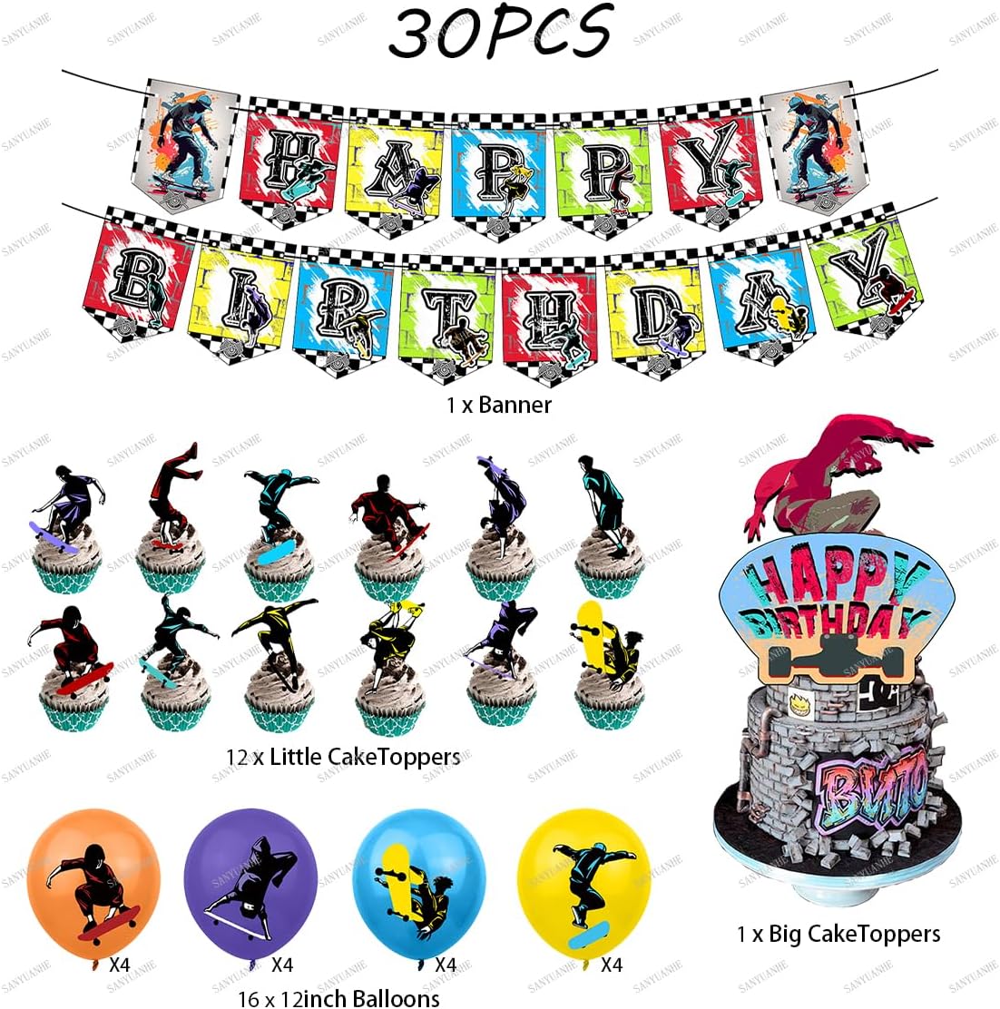 Decorazione di compleanno per skateboard: 30 pezzi, skateboard, decorazione per torte, 1 grande skateboard, decorazione di compleanno "Happy Birthday", 1 x 1 decorazione per skateboard di compleanno "Happy Birthday", 12 skateboard, decorazione per torta di compleanno, 16 palloncini in lattice (12 pollici). Questo set è composto da diversi disegni, è perfetto per qualsiasi festa di compleanno e aggiunge gioia alla tua festa. Topper per cupcake a tema Facile da montare: i nostri bambini sono facili da montare, basta tirarli fuori e metterli insieme e appenderli alle porte, finestre, alberi e stanze, per farvi sentire bene e aggiungere sorprese alla vostra festa. Materiali: decorazione per eventi per skateboard. Il nostro kit di compleanno è realizzato in carta sicura e facile da usare, e i palloncini sono realizzati in lattice, che è molto resistente, stabile e facile da gonfiare. La decorazione per torta di compleanno contribuisce all'atmosfera e sorprende. Fantastico regalo per skateboard: fantastico tema regalo per skateboard, in cui una torta per decorare il compleanno del party skateboard di compleanno. I modelli di stampa unici trasmettono la velocità. Ampia applicazione: accessori per feste, skateboard con movimenti di danza, set di danza per bambini, decorazione per feste di compleanno per bambini, streetdance skateboard, trucchi professionali per skateboard, regalo per skateboard, skateboard, feste di skateboard, accessori per skateboard, feste di skateboard, accessori per skateboard, feste di compleanno, feste fai da te, decorazione per feste per ragazzi, adolescenti.
