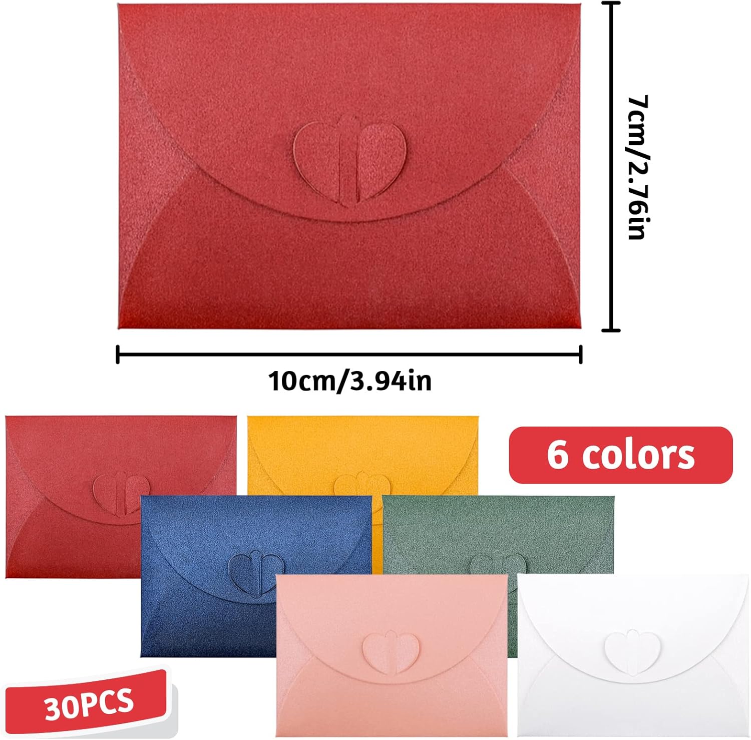Applicazione unica: puoi scrivere i migliori auguri sulle buste colorate per lettere. Possono essere applicati non solo in ufficio, a casa e a scuola, ma anche in negozio, ufficio postale, negozio di articoli da regalo, ristorante per feedback e così via. Materiale di alta qualità: la mini busta è realizzata in carta perlata e carta kraft. La robusta busta di carta non è facile da rompere, proteggendo le tue carte e lettere dalla deformazione, ecc. Buste fai-da-te: le mini buste sono vuote, non sono stampate e puoi scrivere o disegnare qualsiasi cosa secondo la tua immaginazione o preferenza. Serratura a forma di cuore: il design della serratura a forma di cuore consente di fissare la busta senza colla e allo stesso tempo rende la busta più bella ed elegante, molto comoda e pratica. Set buste regalo: grammatura: 250 g/m²; dimensioni: 10 x 7 cm. La confezione include 30 buste per carte regalo mini, 6 bellissimi colori in totale e 5 buste per ogni colore.