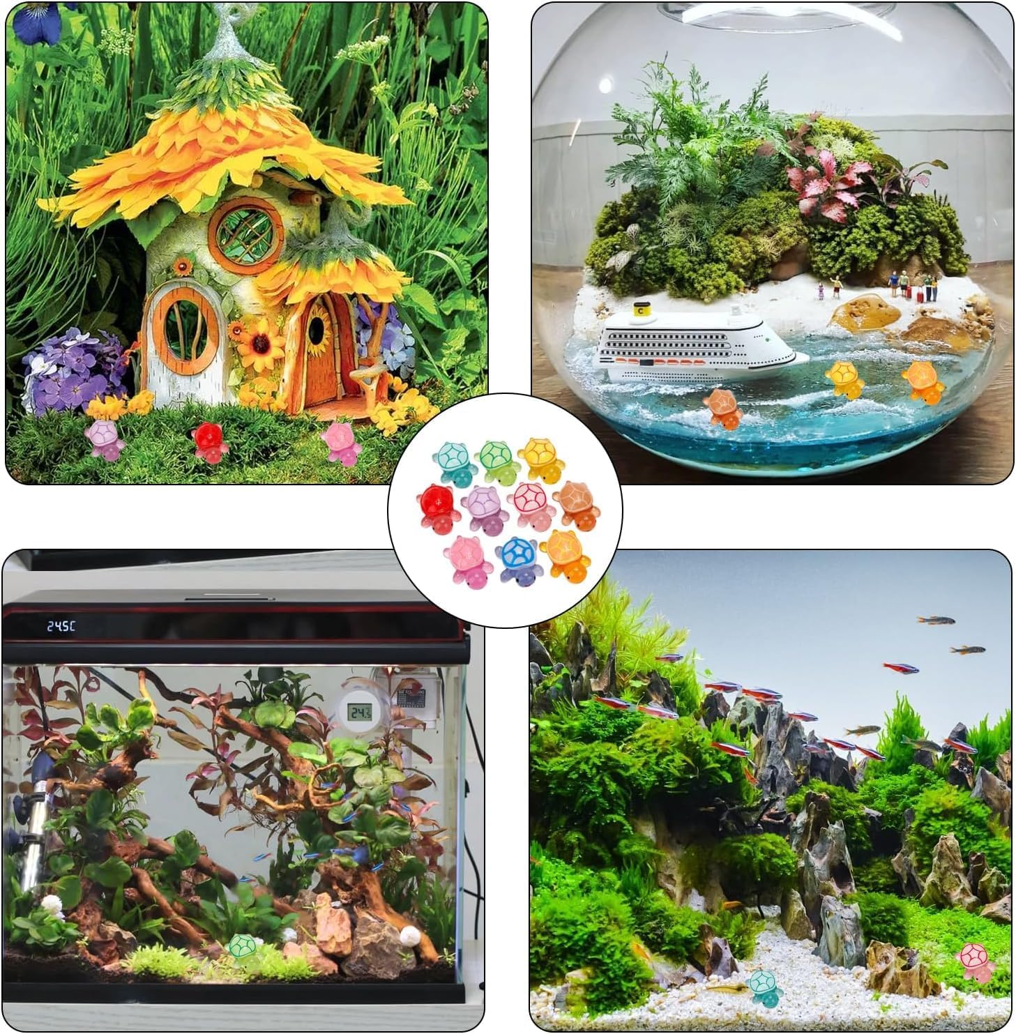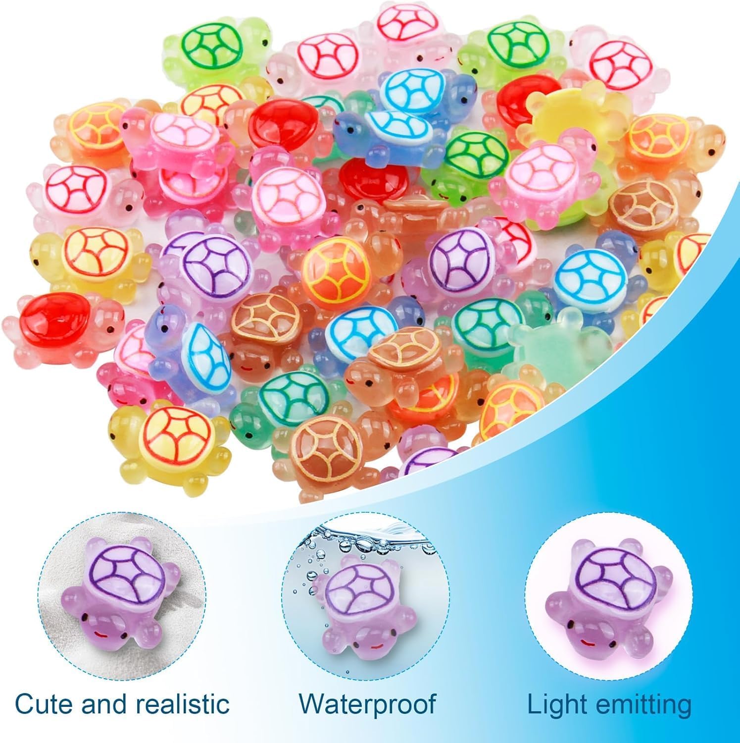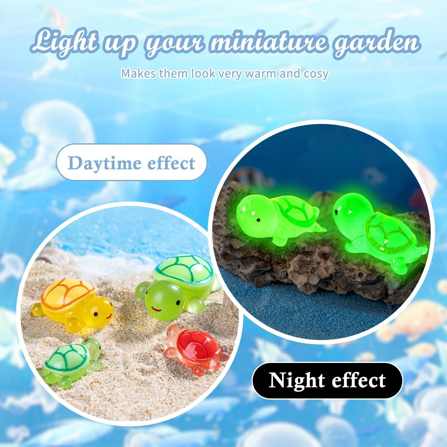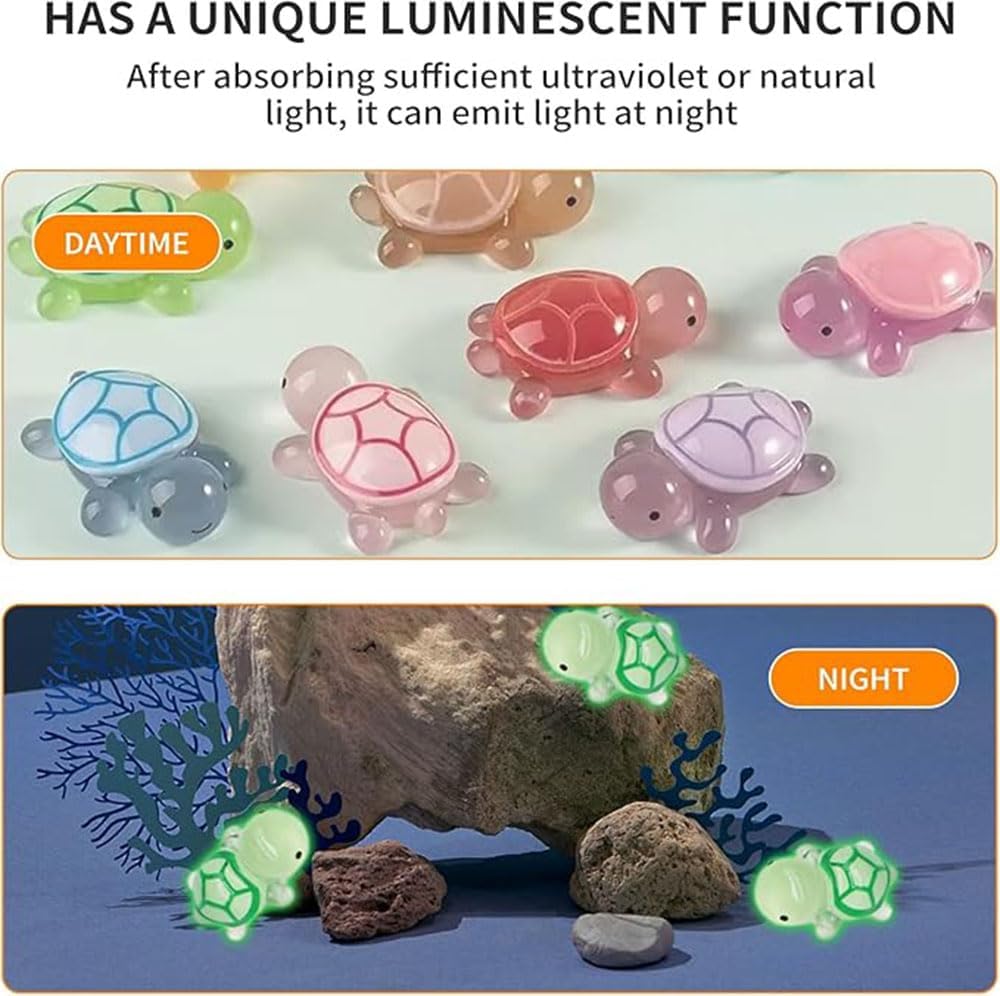 MATERIALE DI ALTA QUALITÀ: le nostre tartarughe in miniatura sono realizzate in resina di alta qualità, atossiche e inodori, sicure ed ecologiche, robuste e durevoli, non facili da sbiadire, lunga durata. BAGLIORE AL BUIO: con un design realistico e colori vivaci, queste minuscole tartarughe hanno un aspetto fantastico durante il giorno e si illuminano al buio per un effetto affascinante. Finché viene assorbita abbastanza luce durante il giorno, le nostre piccole tartarughe possono brillare al buio o di notte. Sono ottime decorazioni per case delle bambole, paesaggi in miniatura, piante in vaso, compleanni e altro ancora. VIVACE E REALISTICO: le nostre piccole tartarughe marine hanno un aspetto realistico e possono anche aiutare i tuoi bambini a conoscere i piccoli animali; Si illumina anche di notte, perfetto per decorare acquari, acquari e altro ancora. La dimensione della mini tartaruga è di circa 2,5x1,8 cm, molto piccola e carina, facile da trasportare e riporre, puoi usarla ovunque. AMPIA APPLICAZIONE: le nostre bambole tartaruga in miniatura non solo possono decorare case delle bambole, paesaggi di giardini fatati, acquari, case delle bambole, patii, davanzali, ecc., ma possono anche essere utilizzate come regalo per la tua famiglia e i tuoi amici e altre persone a cui piacciono le decorazioni fai-da-te. IL PACCHETTO INCLUDE: Riceverai 30 mini tartarughe in resina incandescenti, molta quantità e varietà, puoi decorare la tua casa e il tuo giardino con i tuoi amici e familiari. Il prodotto si illuminerà di notte dopo aver assorbito abbastanza luce solare durante il giorno, trasformando il tuo giardino in un mondo fantastico.