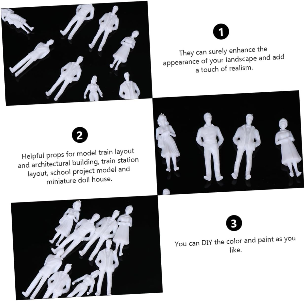 Modello: sono ancora prodotti semilavorati e puoi colorarli in base diverse esigenze, persone in miniatura In miniatura: per edifici architettonici, esposizione layout, modelli progetti, decorazioni per case in miniatura, ecc Miniatura non : puoi dipingerla con colori vivaci per renderla affascinante e attraente, miniatura Modello in miniatura: ottimo per layout gruppi treni modello, layout scene stazioni ferroviarie, case , edifici architettonici, ecc., in miniatura Non : questo è un set modelli tavolo da sabbia pratici, che possono accompagnarti a trascorrere felicemente libero, mini persone