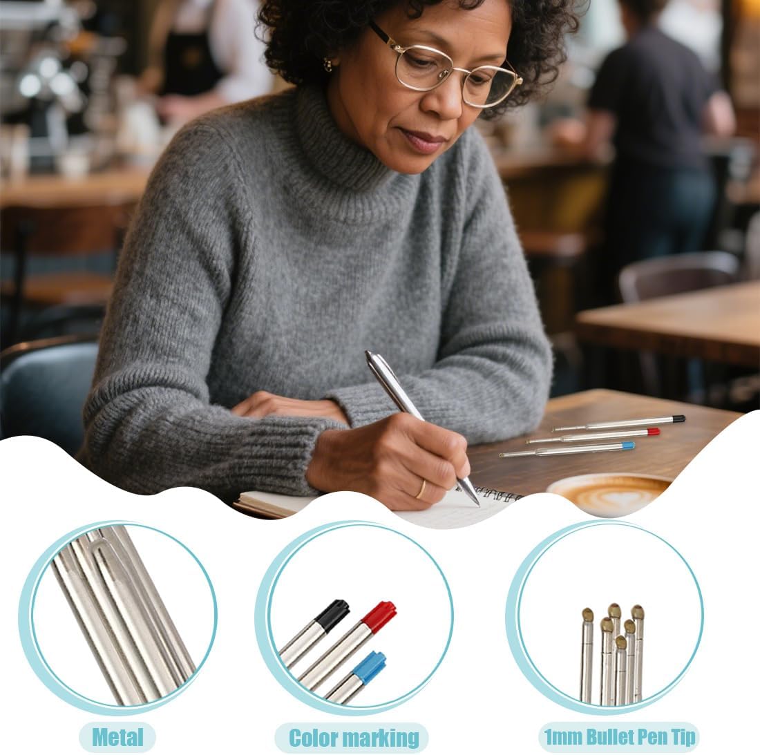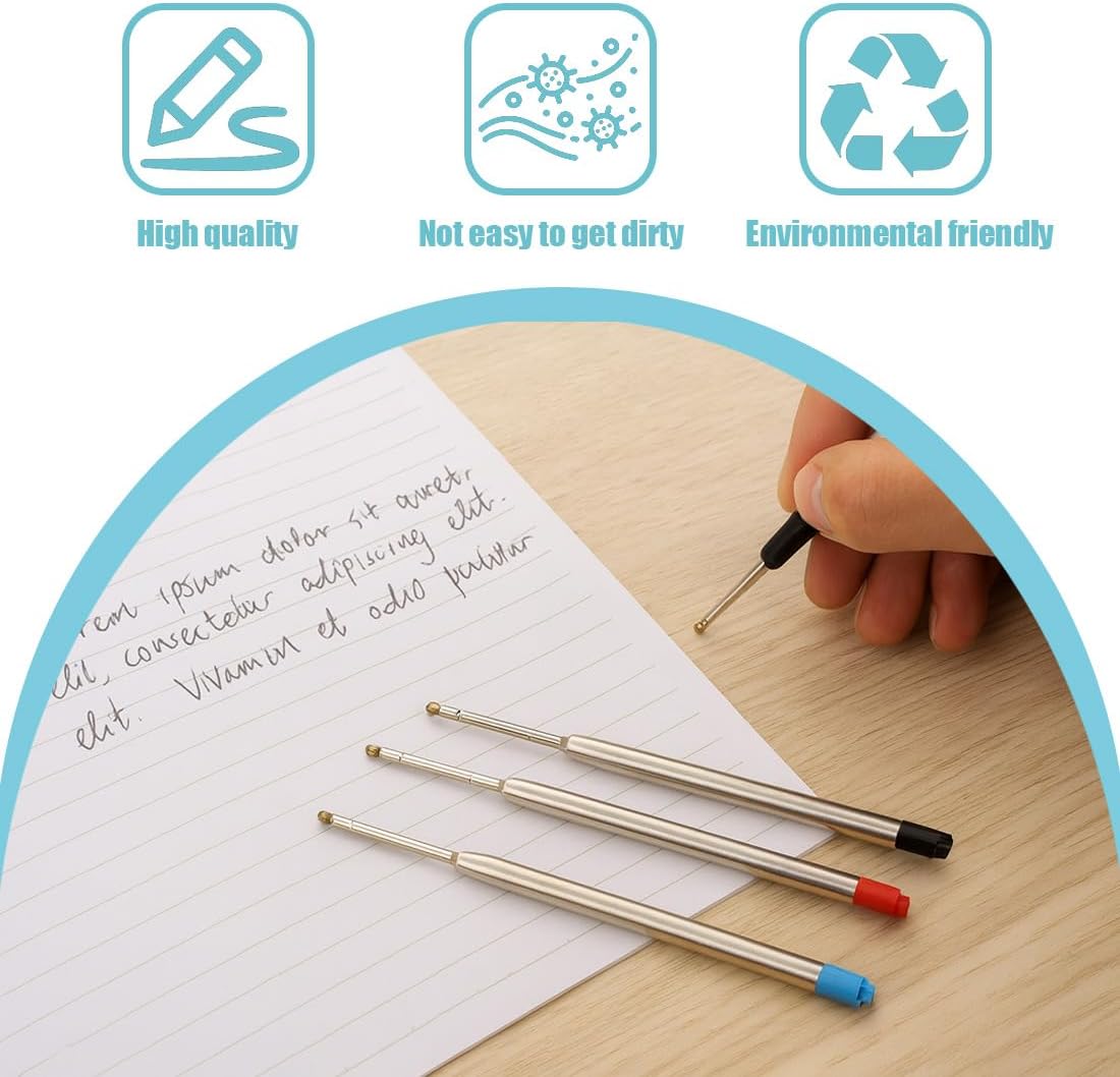 【Confezione pratica】: la confezione contiene 30 ricariche di inchiostro, sufficienti per l'uso quotidiano. Puoi conservarne alcune nel tuo studio o ufficio oppure condividerle con i tuoi compagni di classe o amici. 【Materiale metallico】: il rivestimento della mina di ricambio è realizzato in metallo di alta qualità, anche l'inchiostro all'interno è di alta qualità, con un'elevata resa cromatica e scorre in modo uniforme, rendendo l'intera mina molto resistente e consentendo di scrivere sulla carta senza intoppi. 【Scrittura fluida】: le nostre ricariche per penne a sfera sono realizzate con materiali di alta qualità, con una superficie lucida e una buona consistenza. Grande capacità, puoi scrivere a lungo. 【Asciugatura rapida】: l'inchiostro di alta qualità da 1,0 mm garantisce un flusso regolare e un'esperienza di scrittura eccellente. L'inchiostro scorrevole scrive in modo uniforme sulla carta senza sbavature o perdite e aiuta a mantenere pulite le mani e i polsini. 【Ampia applicazione】: le ricariche per penne a sfera in metallo sono adatte per la scuola, l'ufficio e la casa. Ideali per scrivere, registrare, prendere appunti, documentare, disegnare e altro ancora.