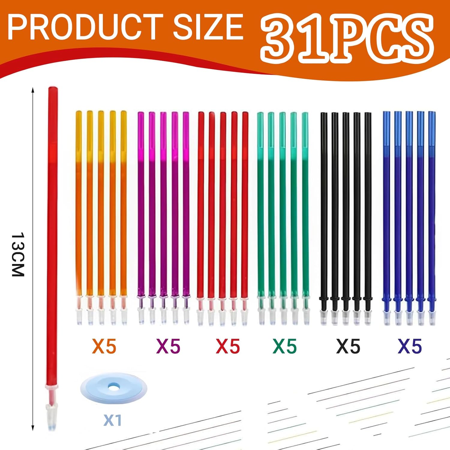 Palette di colori vivaci per scrivere con creatività: Il set di ricariche offre 6 colori brillanti: nero, blu, rosso, viola, verde e arancione.Queste tinte vivaci daranno vita alle tue note e disegni, perfette per studenti, insegnanti e creativi che vogliono esprimere il loro stile con colori distintivi.Inoltre, il set è dotato di 1 gomma per cancellare le scritte. Compatibilità e facilità d'uso: Le ricariche sono progettate per essere compatibili con Legamii, con una punta fine da 0,5 mm per una scrittura fluida e precisa. Materiali di alta qualità per una lunga durata: Realizzate con inchiostro termico e plastica resistente, le ricariche sono progettate per una scrittura liscia e rapida, con inchiostro che si asciuga rapidamente. La loro durata è estesa, così puoi scrivere senza preoccuparti di doverle sostituire frequentemente. Regalo perfetto per ogni occasione: Che si tratti di un compleanno, di un ritorno a scuola o di Natale, questo set di 30 ricariche cancellabili è un regalo ideale per bambini, studenti, insegnanti e amici. Un'idea originale e pratica che piacerà sicuramente a chi ama scrivere, disegnare o prendere appunti. Consigli per l'uso pratico: Si prega di notare che l'inchiostro è sensibile al calore, quindi è importante conservare le ricariche lontano da fonti di calore per garantire prestazioni ottimali. Con una lunghezza di 13 cm e un diametro di 4 mm, queste ricariche si adattano perfettamente compatibili con Legamii penne, offrendo un'esperienza di scrittura comoda e duratura.