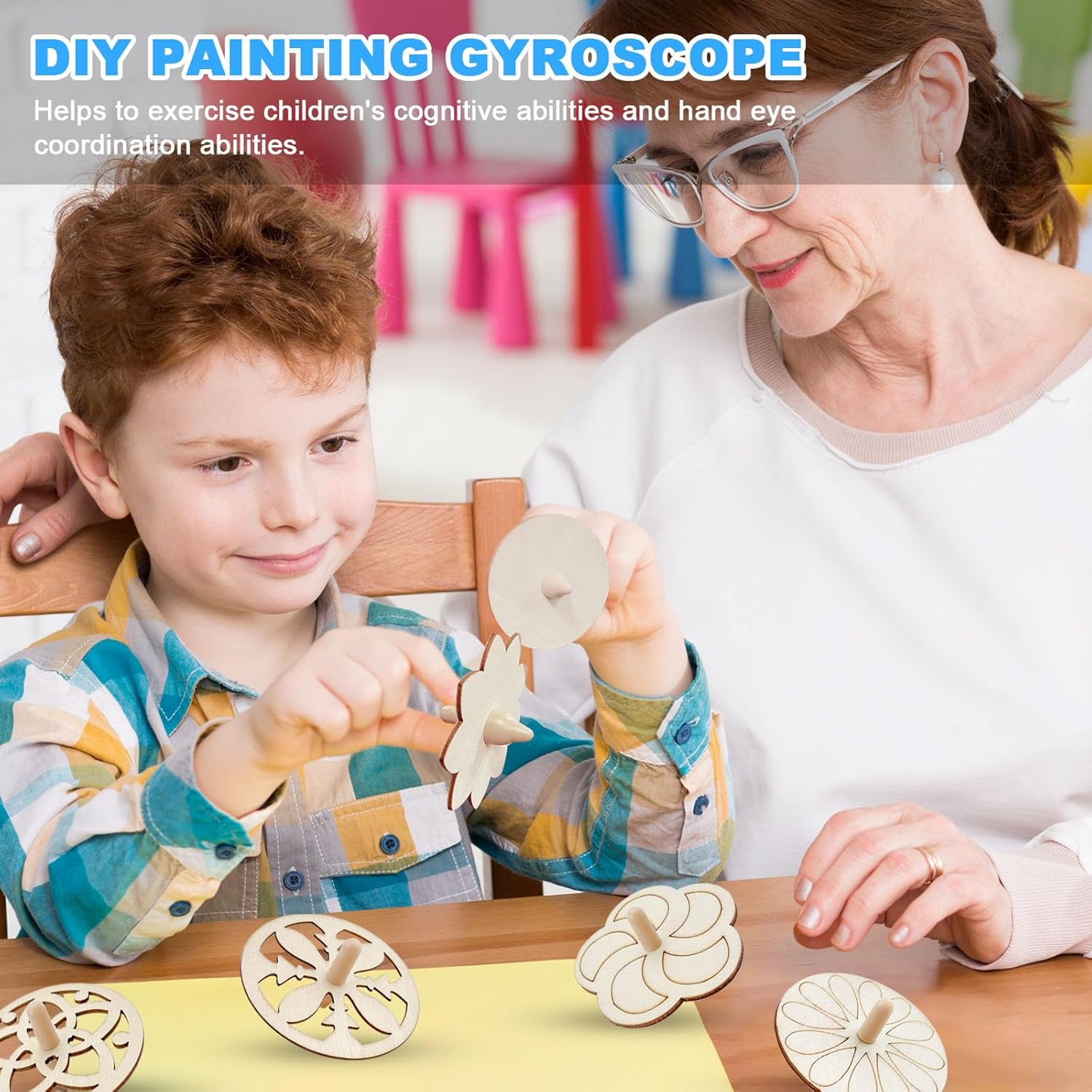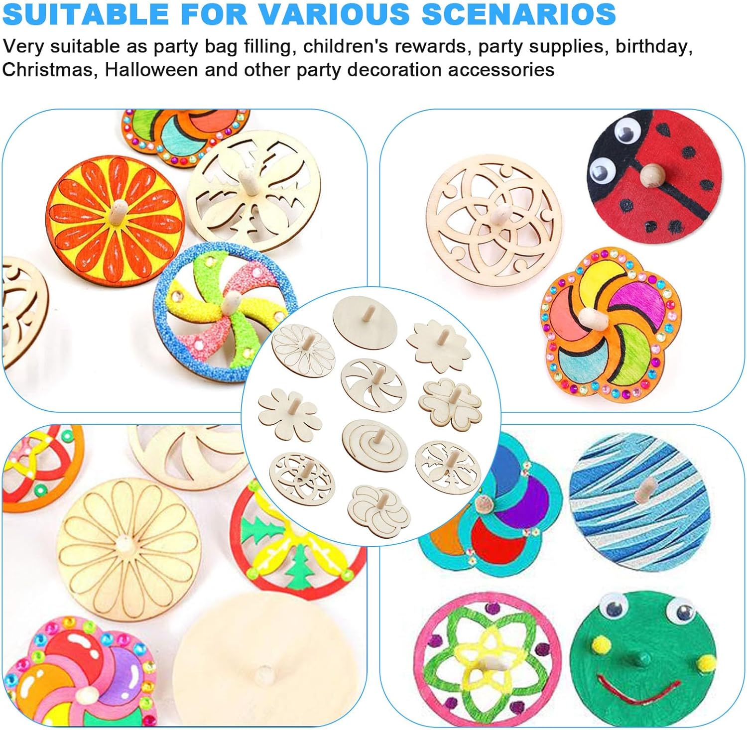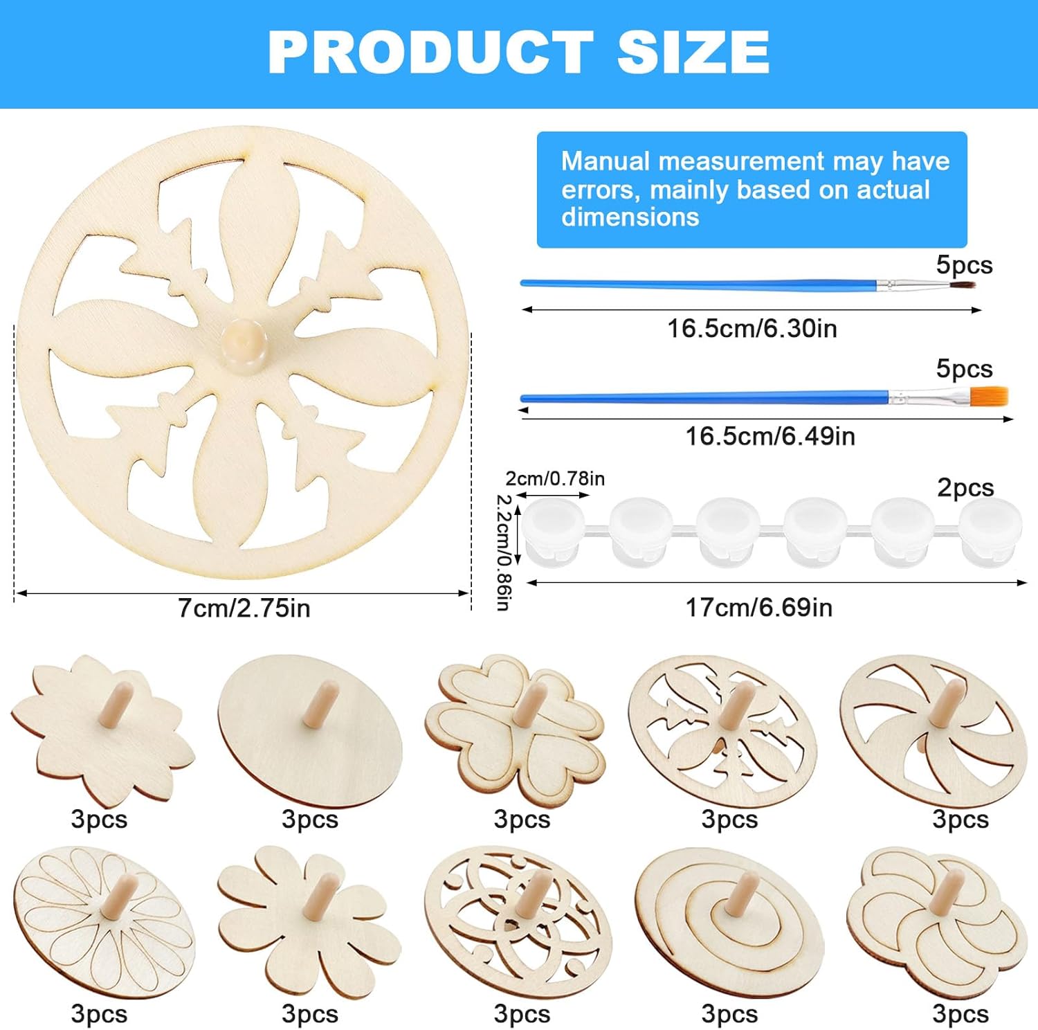 Materiale sicuro: questa trottola per bambini è realizzata in legno naturale e plastica di alta qualità, ecologica, atossica e insapore, può essere utilizzata a lungo. I corpi in legno sono levigati senza intoppi per facilitare la verniciatura o la decapaggio. Divertimento a lungo termine: il trottola è un giocattolo molto classico, utilizzare il pollice e il dito indice per afferrare il manico per una rotazione in una direzione. Consentono loro un momento felice nel tempo libero o quando ti senti stanco. Giochi per la famiglia: la nostra trottola in legno promuove l'interesse dei bambini, i genitori possono accompagnare i loro bambini a giocare insieme, per allenare i bambini per coordinare le mani e gli occhi. Contenuto della confezione: la confezione include 30 trottole in legno (dimensioni: 7 x 7 x 4,5 cm), 10 spazzole e 2 scatole di colori. È possibile creare il fai da te e goderti il divertimento del fai da te. Regalo ideale: le trottole in legno naturale per bambini sono ideali come premi, uova di Pasqua, piccoli regali per studenti, premi della tombola, scrigno del tesoro, compleanno per bambini, Natale, Halloween, ecc.