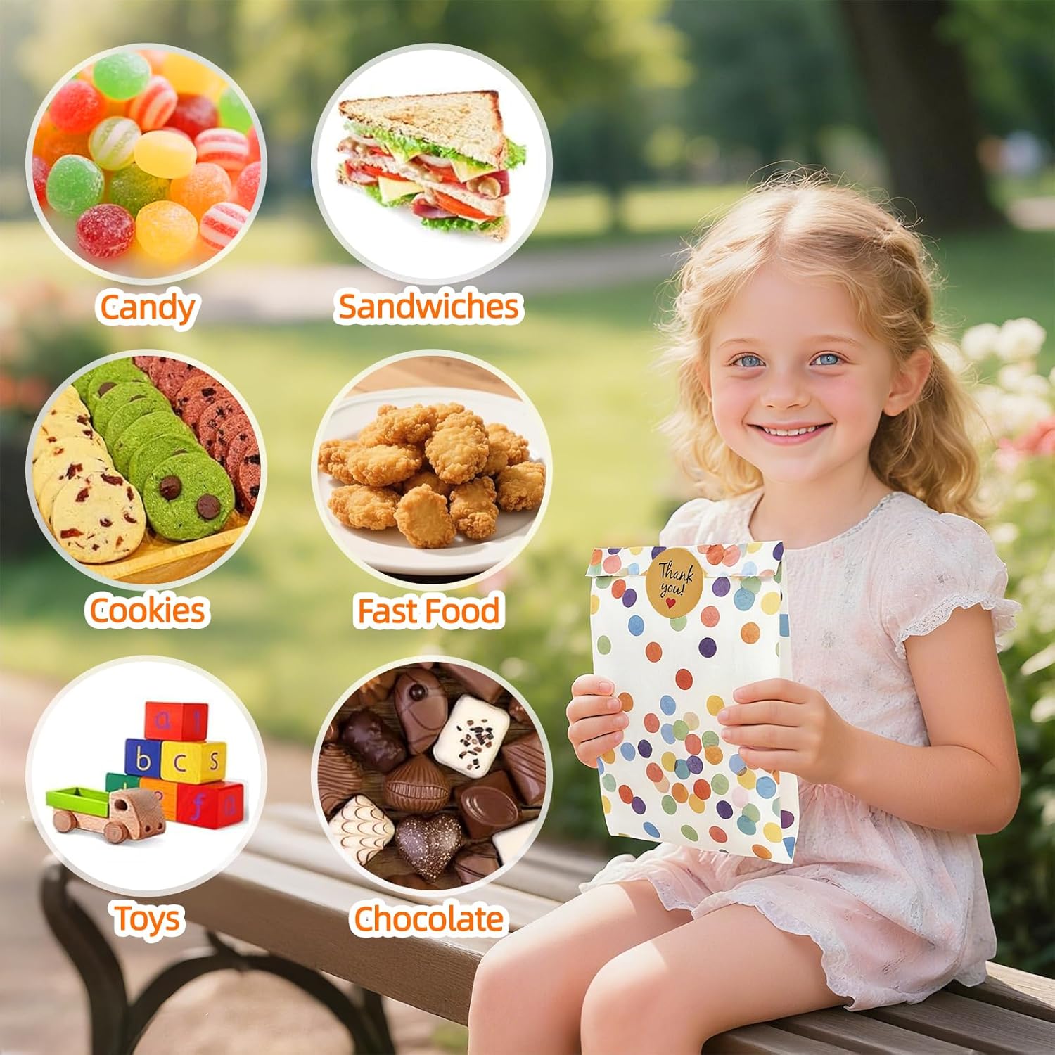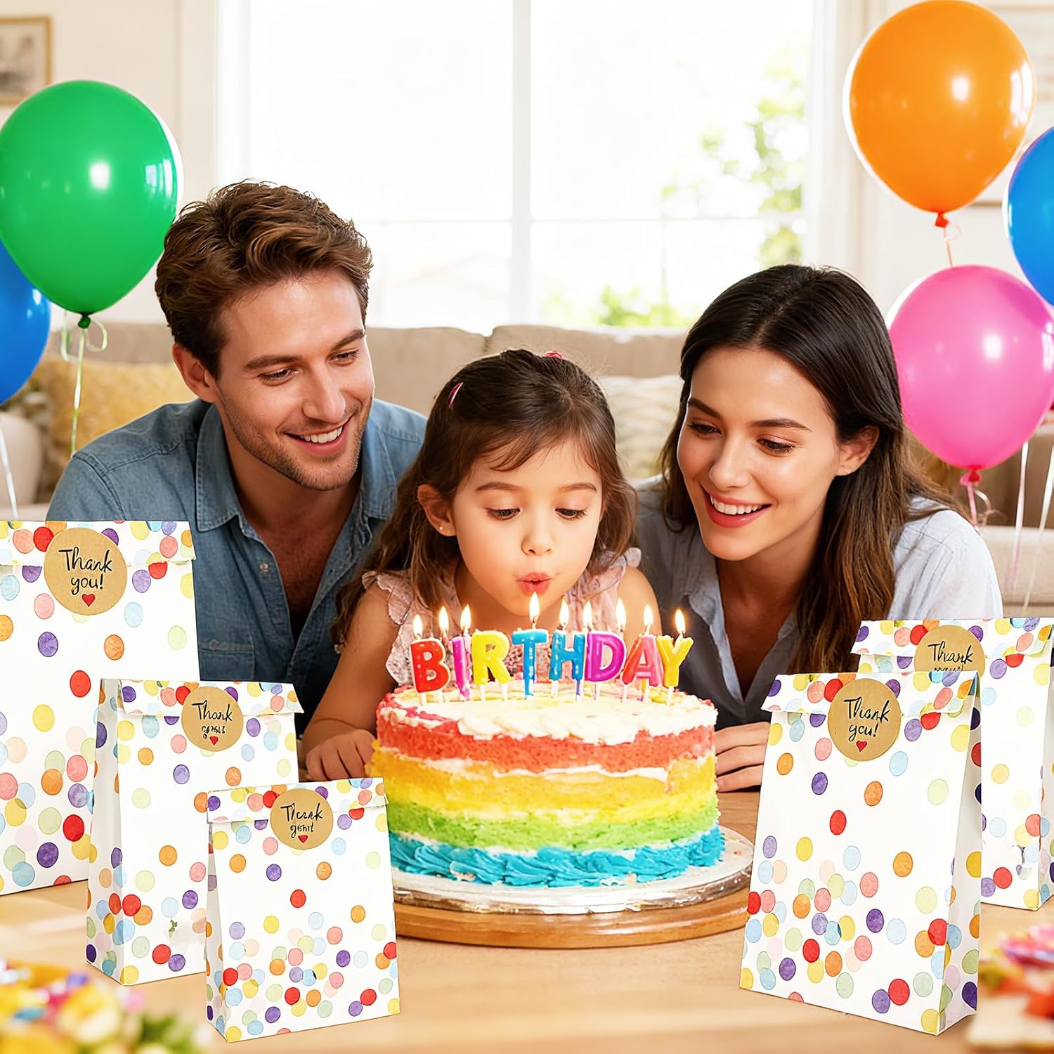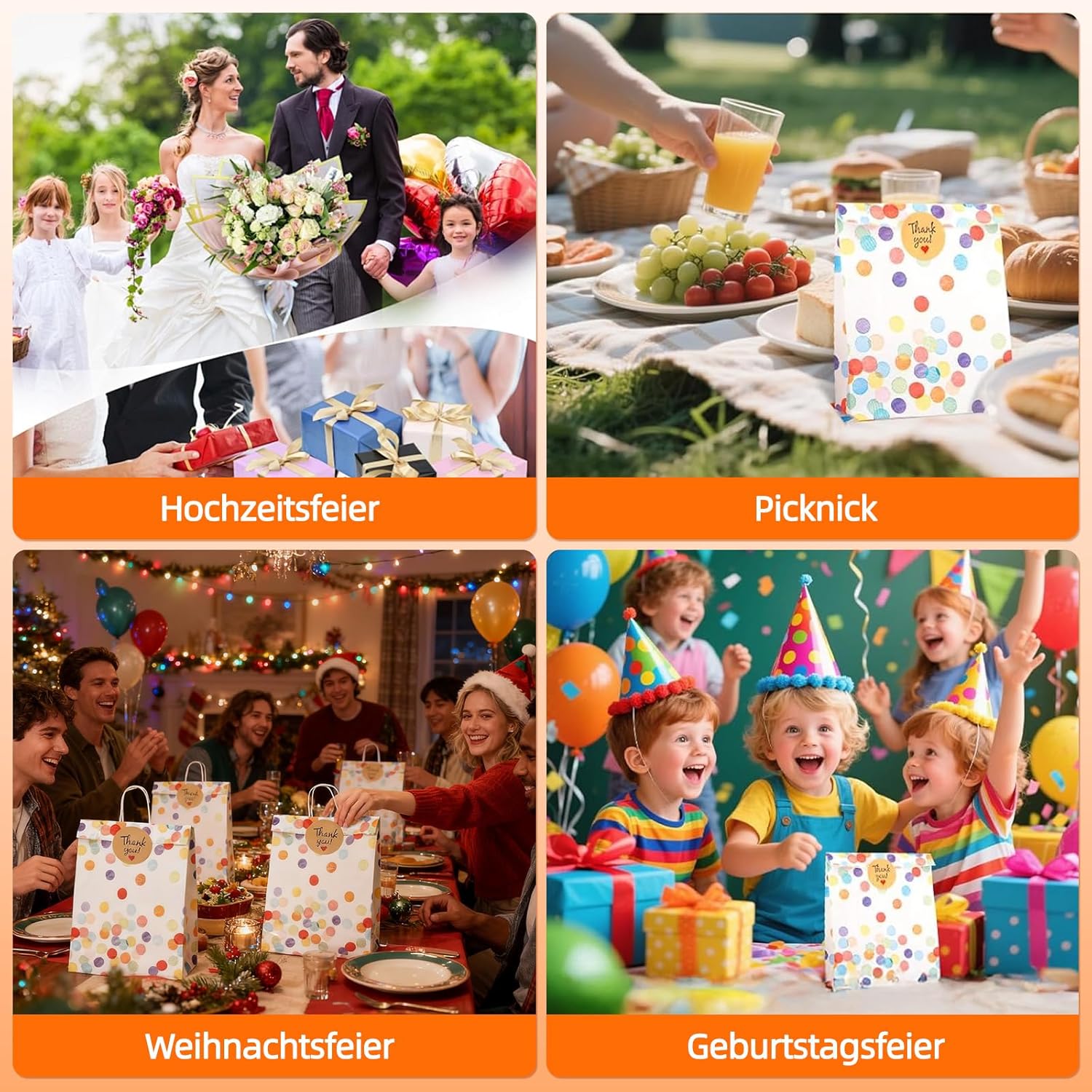 [Pratico set completo]: il set contiene 30 sacchetti regalo colorati in carta kraft e 36 adesivi decorativi "Grazie". Con dimensioni di 19 × 13 × 3 cm, i sacchetti per feste offrono spazio sufficiente per dolci, piccoli regali o snack - perfetti per compleanni, matrimoni, feste per bambini e altro ancora [Robusti e adatti agli alimenti]: realizzati in carta kraft spessa e di alta qualità, i sacchetti sono resistenti agli strappi, al grasso e all'acqua. Sono anche ecologici e sicuri per il contatto diretto con gli alimenti - ideali per biscotti, popcorn, cioccolata o piccoli snack. [Allegro design a pois]: il colorato motivo a pois in stile arcobaleno rende ogni borsa una vera attrazione. I colori forti creano immediatamente un'atmosfera di festa e rendono le vostre bomboniere particolarmente festive e uniche. [Versatile]: i sacchetti di carta si aprono facilmente, sono stabili e possono essere chiusi in modo sicuro con gli adesivi in dotazione. Che si tratti di sacchetti per snack, sacchetti per feste, sacchetti per regali o confezioni regalo, possono essere utilizzati in vari modi per tutti i tipi di feste [Con attenzione ai dettagli]: i bordi ben seghettati prevengono lesioni durante l'apertura, mentre gli adesivi di alta qualità non solo aderiscono in modo affidabile ma sono anche decorativi. Ciò conferisce ad ogni borsa un tocco individuale e rimarrà un bel ricordo per i tuoi ospiti