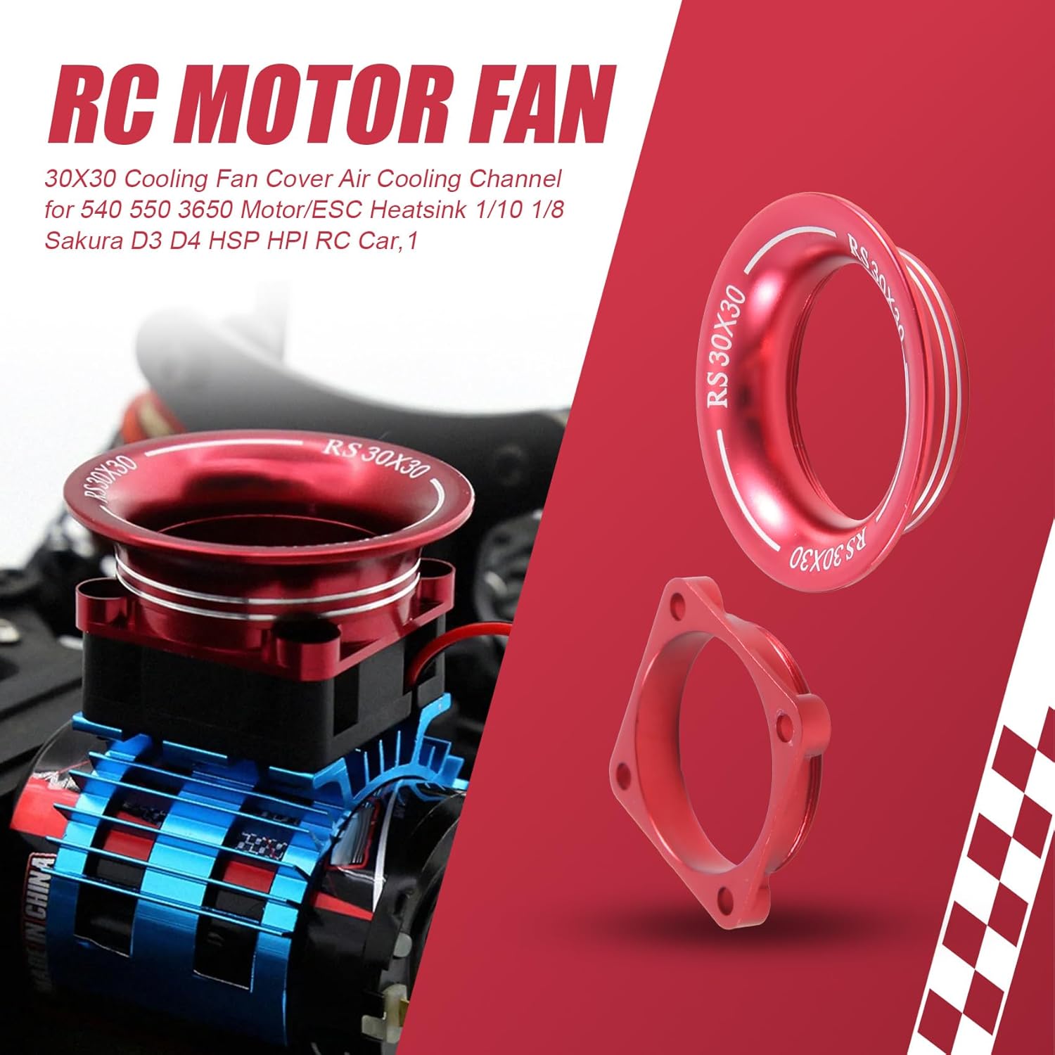 30 x 30 ventilatori copertura aria raffreddamento canale per 540 550 3650 motore/ESC 1/10 1/8 D3 D4 RC Auto,1