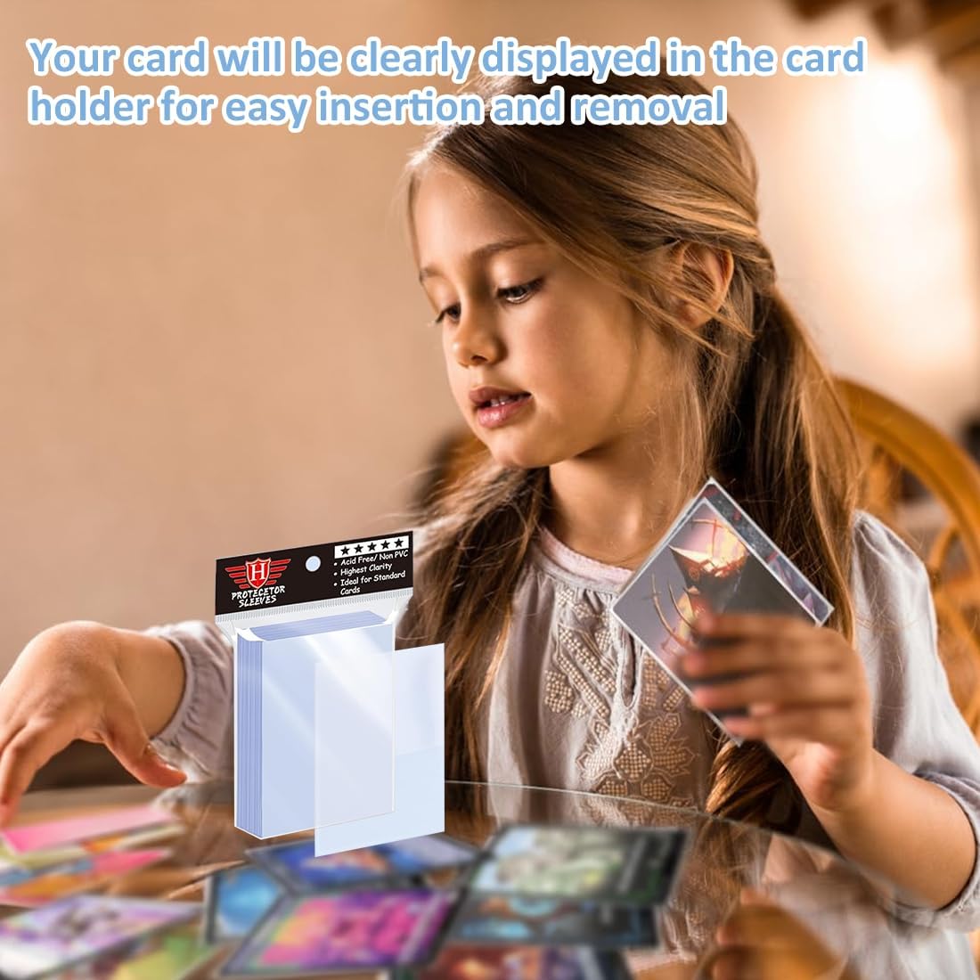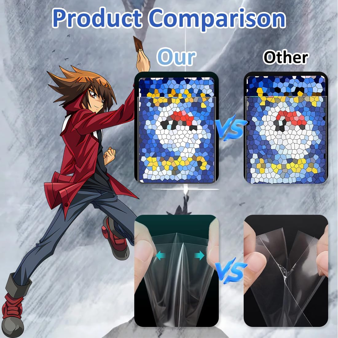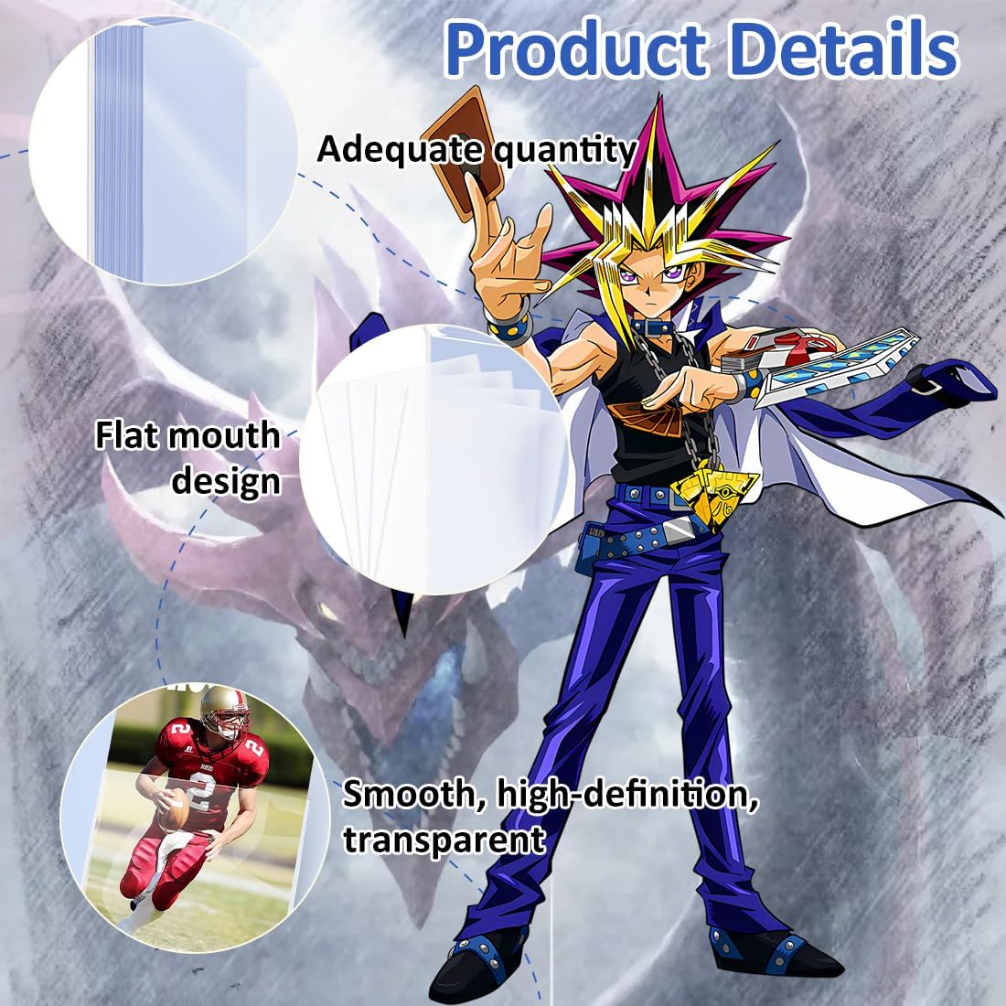 Materiale di alta qualità: la custodia per carte collezionabili è realizzata in polipropilene di alta qualità, privo di PVC e acidi, che protegge completamente le tue carte da invecchiamento, graffi e polvere. Ben sigillate, impermeabili e resistenti all'umidità, queste custodie di alta qualità sono resistenti e antistrappo. Usi multipli: le nostre custodie per carte collezionabili misurano 67 x 94 mm. Nota: non le custodie interne. Il portacarte spesso e di dimensioni standard è adatto a carte MTG, carte collezionabili e carte sportive. Sono estremamente versatili e ampliano le possibilità di utilizzo dell'intera collezione. Trasparente e portatile: il portacarte altamente trasparente e antiriflesso ti permette di apprezzare ogni dettaglio delle tue carte! Nessuna luce blu o altri flash interferirà con la tua esperienza di gioco. Allo stesso tempo, le custodie morbide non rendono le tue carte ingombranti. Puoi portare le tue carte preferite ovunque. Impermeabili e resistenti all'umidità: Ben sigillate, impermeabili e resistenti all'umidità. Proteggi le tue carte dai danni causati dall'acqua presente nell'aria e prolunga la durata delle tue carte. Sicurezza e chiarezza: le custodie per le carte da baseball sono realizzate con materiali trasparenti, privi di acidi, atossici e sicuri per l'archiviazione, per garantire dettagli nitidi e una protezione affidabile delle carte.