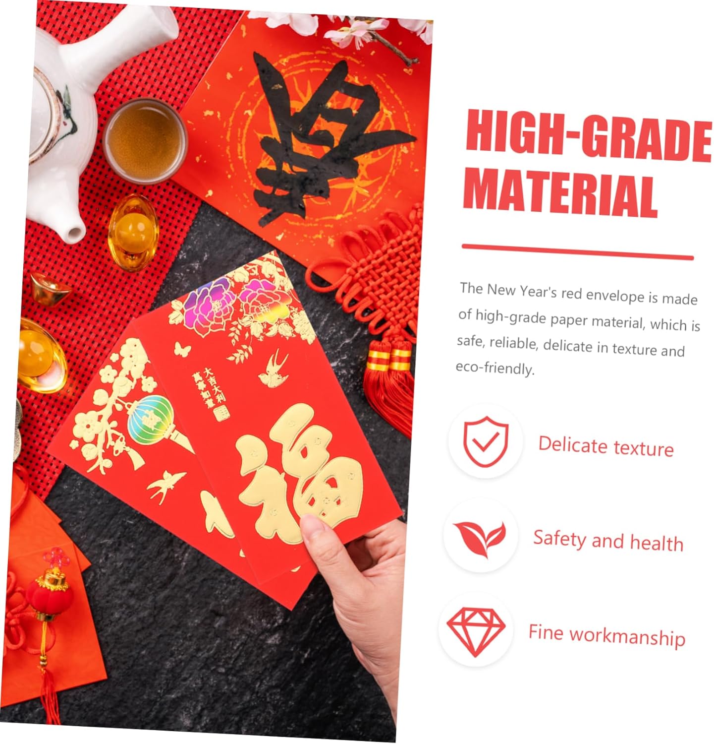 Busta portadenaro di capodanno: non solo può essere regalata, ma può anche essere utilizzata come opera d'arte per la tua collezione o decorazione, delicata busta rossa Tasca rossa : queste buste rosse hanno ereditato anche la cultura tradizionale cinese, con connotazioni culturali di lunga data e bellissime benedizioni, borsa rossa in stile cinese Busta : non solo puoi regalarla, ma puoi anche decorarla prima di regalarla, busta per soldi Busta rossa per il anno, realizzata in carta, leggera, ecologica e pratica, busta rossa Hong bao: con le caratteristiche della cultura tradizionale cinese, compresi i buoni auguri, è una buona scelta per di capodanno, tasca porta soldi in stile cinese
