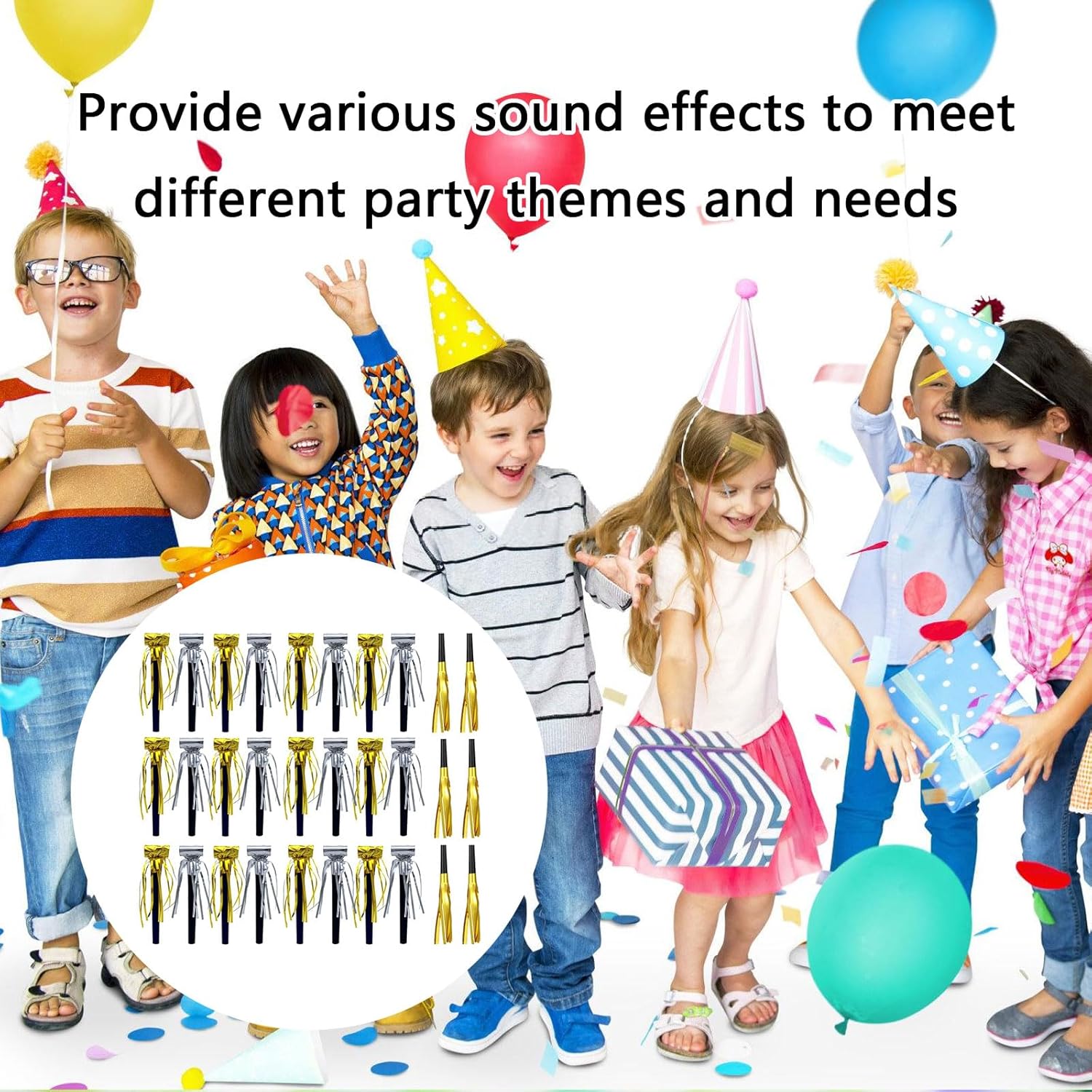 Ideale per organizzatori di feste, appassionati di riunioni a casa e aziende di pianificazione di eventi che desiderano aggiungere un tocco creativo al loro evento Migliora la tua celebrazione con il nostro set da 30 pezzi di produttori di rumore in oro e argento, per creare un'atmosfera dal vivo e da festival in qualsiasi evento Questi squawker per feste e corna da soffiaggio sono realizzati con frange robuste e dotate di frange, garantendo un uso stabile e un effetto sonoro forte per la celebrazione di Capodanno, feste di compleanno, matrimoni ed eventi scolastici, questi rumorosi portano eccitazione e piacere in ogni occasione Con design facili da usare e materiali facili da usare, questi produttori di rumore non sono solo divertenti ma anche rispettosi dell'ambiente, rendendo un accessorio indispensabile per le feste