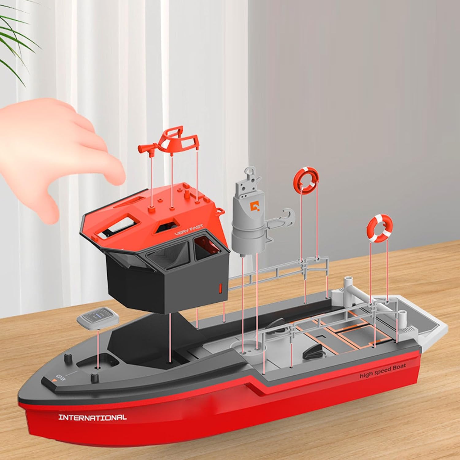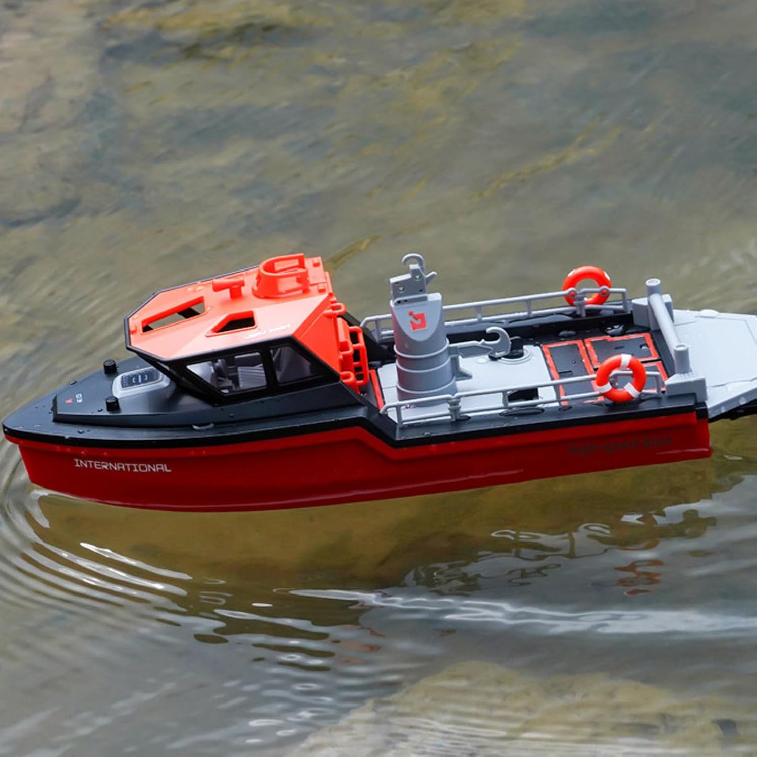 [Advanced Remote Control Technology] dotato di telecomando wireless da 2,4 g, che fornisce contemporaneamente fino a 50 metri di gamma di controllo anti-interferenza per più barche. [Design splashproof] Coperchio a spruzzo completamente sigillato con più meccanismi di bloccaggio per impedire la penetrazione dell'acqua. Il kit anti-collisione nella parte anteriore assorbe lo shock e previene i danni. [Funzionalità di allarme e convenienza] Batteria bassa automatica e allarme fuori portata. Cavo di ricarica USB per una facile ricarica. Il di raffreddamento ad acqua riduce l'usura del motore e estende la durata di servizio. [Potente propulsione] Eliche robusta per un forte potere di navigazione. Il design flessibile del timone consente una facile regolazione se la barca va fuori rotta. Impostazioni di velocità regolabili adatte a tutti i livelli di abilità. [Scelta ideale] per l'esplorazione dell'acqua all'aperto e l'intrattenimento per famiglie. Garantisce un'esperienza di RC memorabile e . Ottima scelta attuale per amici e familiari durante le vacanze.