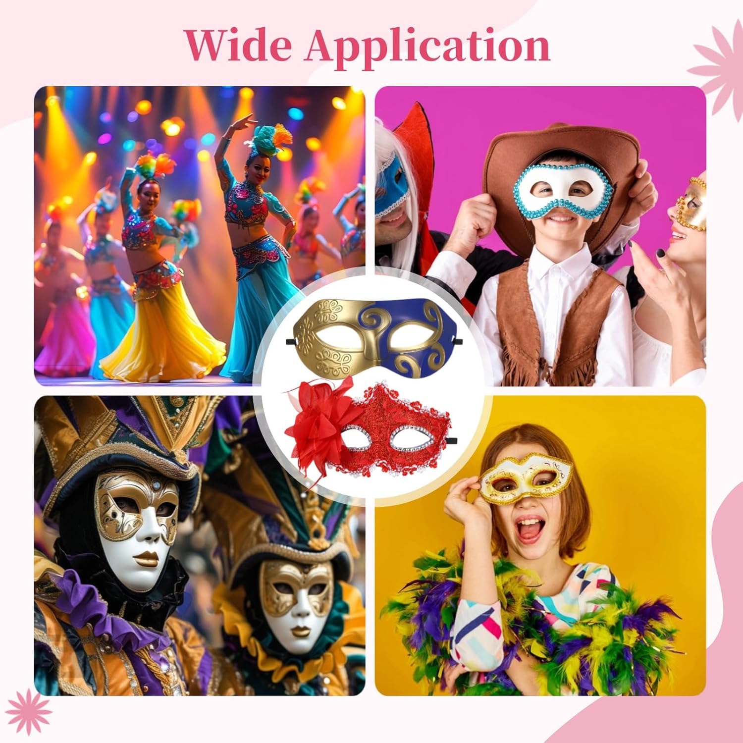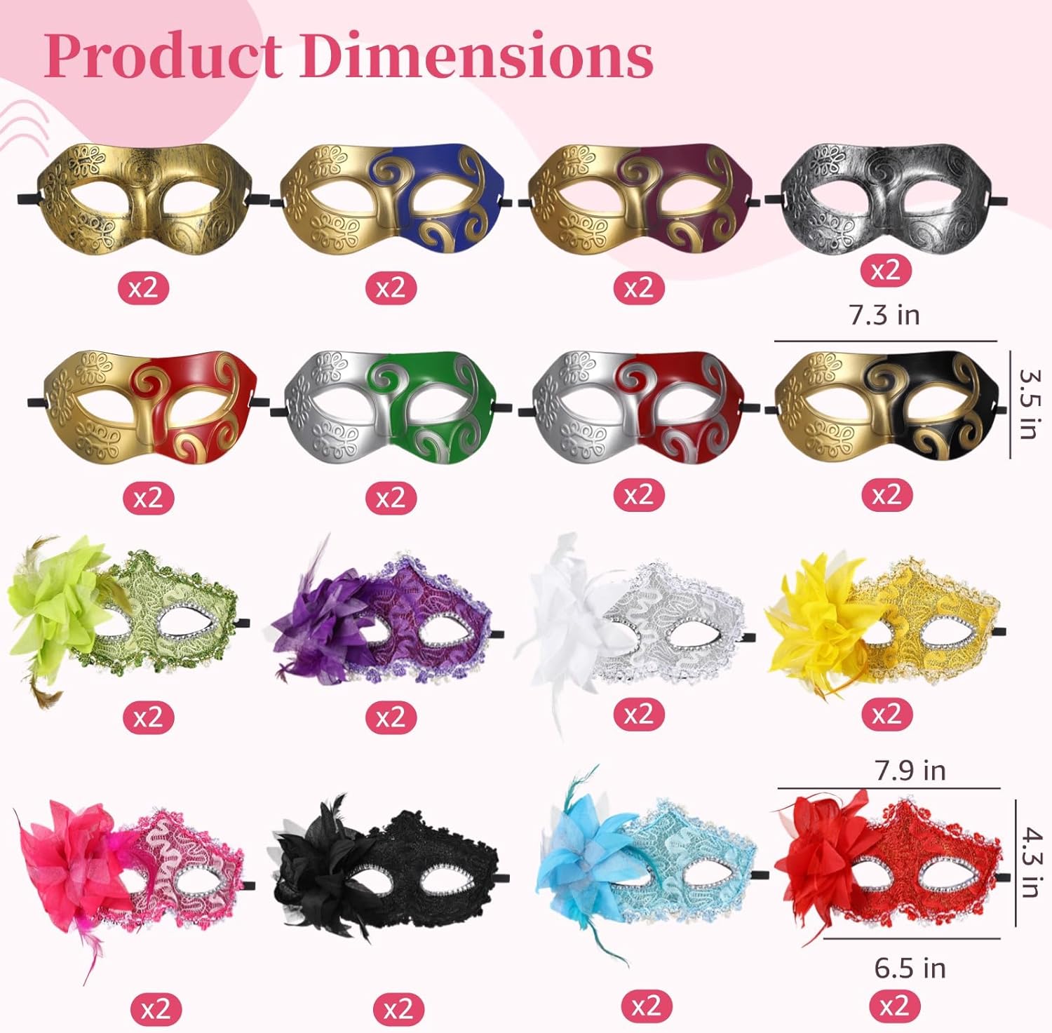Colore: multicolore. Materiale: plastica poliestere. Dimensioni del prodotto: 20,1 x 10,9 cm, 18,5 x 8,9 cm. La confezione include: 32 maschere. Nota: si prega di fare riferimento alle misure. Si prega di considerare un piccolo margine di errore nelle misure. - Potrebbe esserci una piccola differenza di colore a causa del monitor, della fotocamera o di altri fattori, si prega di fare riferimento all'articolo fisico.