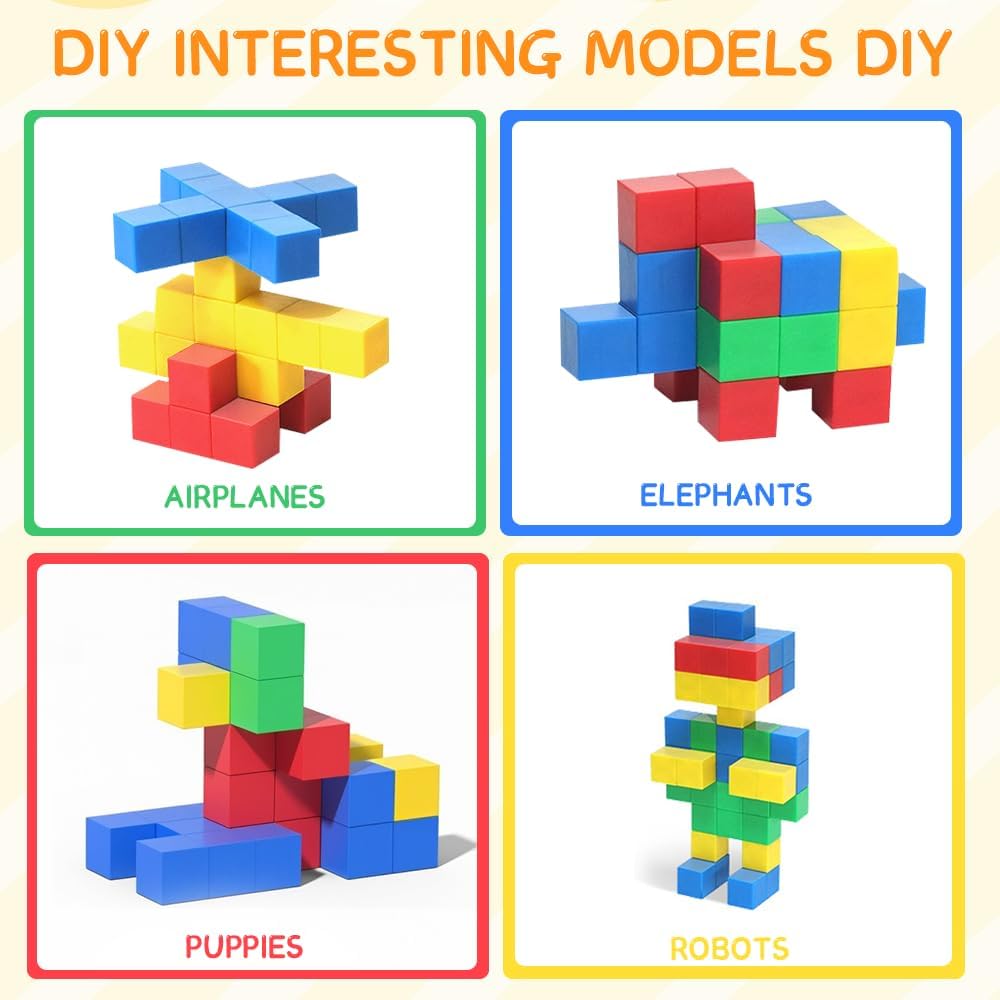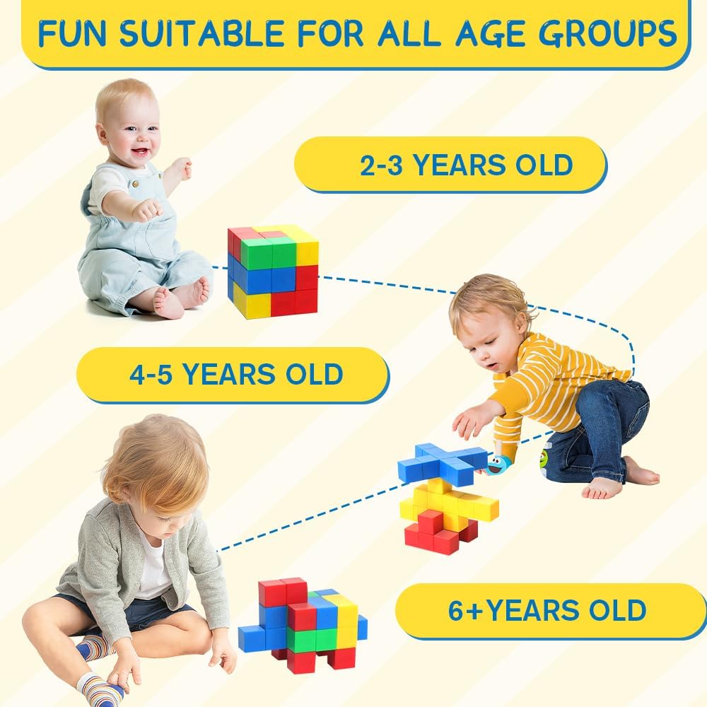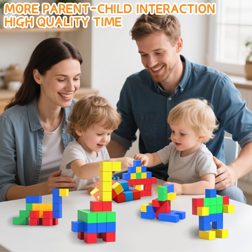 4 colori: 32 mattoncini magnetici in 4 colori: verde, giallo, rosso e blu. Ogni mattoncino magnetico per bambini è alto 2,3 cm, colorato e adatto a bambini dai 3 ai 5 anni. Mattoncini magnetici STEM: mattoncini magnetici in 4 colori diversi: verde, giallo, rosso e blu. Questi mattoncini magnetici promuovono la percezione dei colori. Questo permette ai bambini di imparare le forme geometriche di base, la classificazione dei colori, l'equilibrio e altre conoscenze mentre giocano, promuovendo il loro sviluppo cognitivo. Magneti potenti: ogni mattoncino magnetico è assemblato con magneti e tutti e 6 i lati sono magnetici, aiutando i bambini a costruire più forme e stimolare la loro creatività. Materiale: i nostri mattoncini magnetici sono realizzati in plastica ABS, lavabile, resistente e affidabile. Giocattolo interattivo: i mattoncini magnetici possono essere utilizzati in diversi contesti, come aule scolastiche, case, feste o come giocattoli da viaggio all'aperto. Accompagnate i vostri bambini nel tempo libero per godere dei momenti di calore che i mattoncini magnetici regalano, permettendo loro di sperimentare il calore della famiglia e l'amore della compagnia.