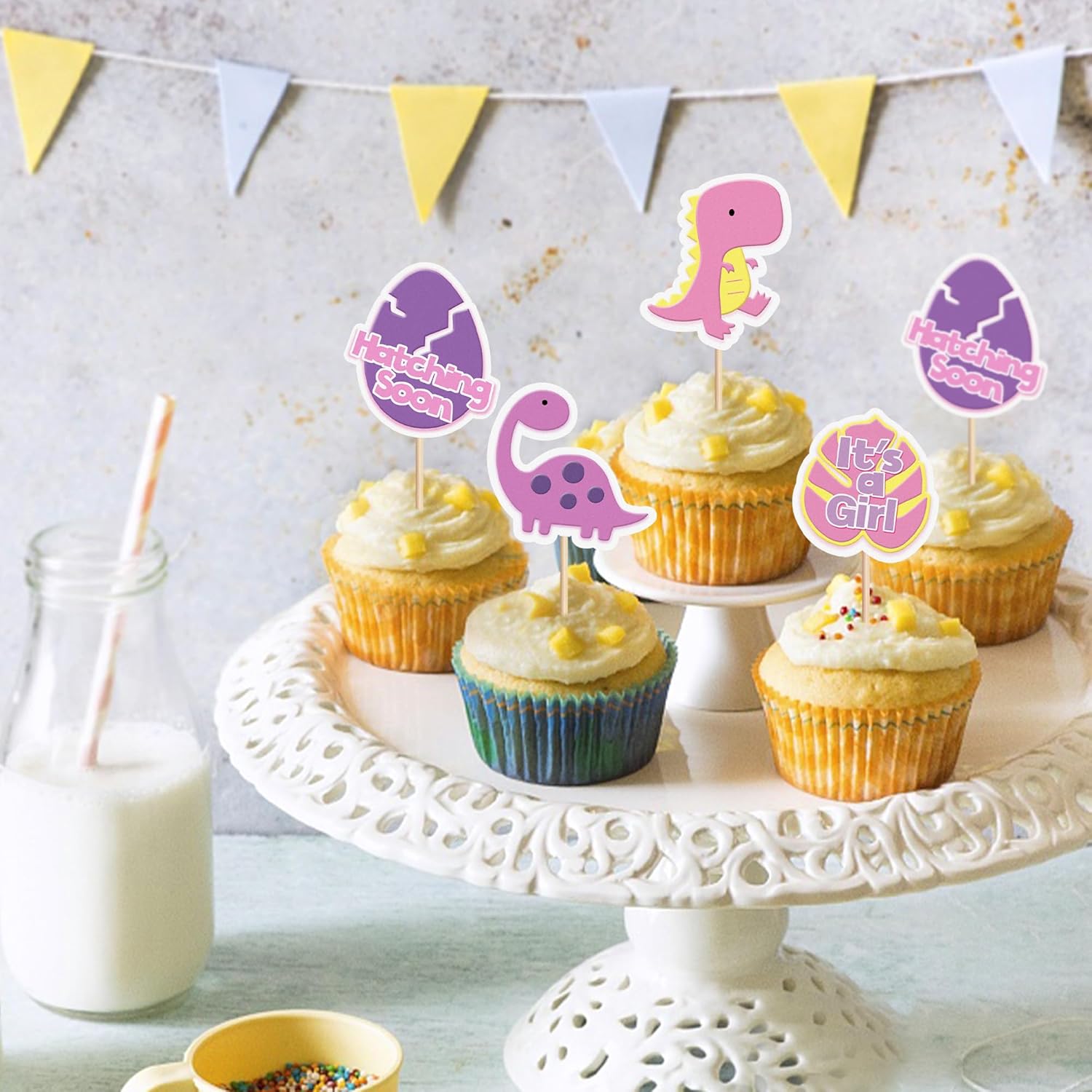 Contenuto della confezione: 32 decorazioni per cupcake a forma di dinosauro. Abbiamo 4 stili. Puoi liberare la tua creatività personalizzandola liberamente per rendere la tua torta più appetitosa Materiale: cartone da 300 g e bastoncino dentato. La nostra decorazione per torta di compleanno è realizzata in carta alimentare, atossica, sicura e durevole. Non si deforma o si danneggia facilmente. Riutilizzabile e particolarmente resistente. I topper divertenti e colorati per cupcake a tema dinosauro sono ottimi per decorare cupcake, dessert, biscotti, ciambelle, tavolo, formaggio e così via, rendono il tuo cibo delizioso, aggiungi un tocco meraviglioso al tuo tavolo, può anche essere applicato per creare piccoli granelli di frutta Occasioni applicabili: la decorazione per cupcake a forma di dinosauro è adatta per feste di compleanno, feste di genere, feste di divulgazione, decorazioni per torte per bambini, che aggiungono un'atmosfera allegra alla vostra festa. Suggerimenti: progettato per un lato, il retro è semplicemente bianco. Solo per scopi decorativi, questo non è commestibile e si prega di non utilizzarlo in forno o nel microonde.