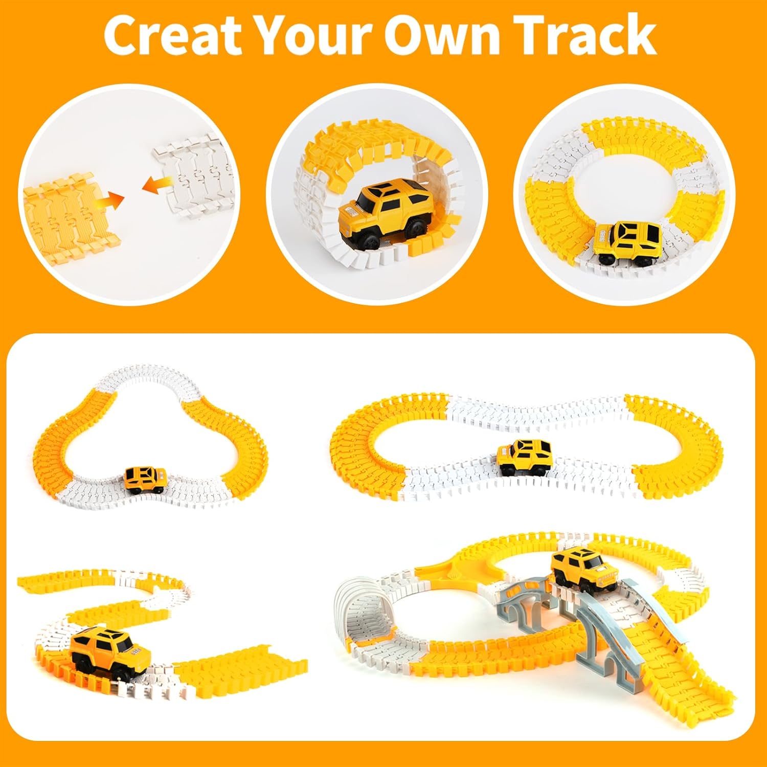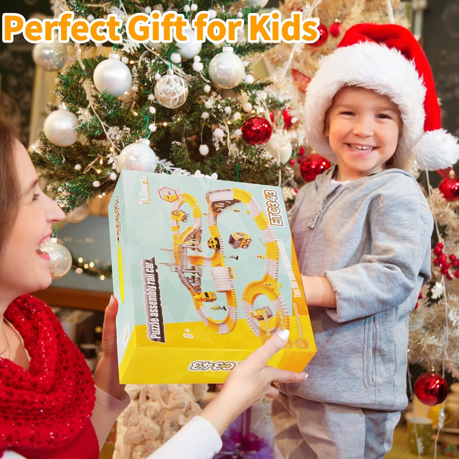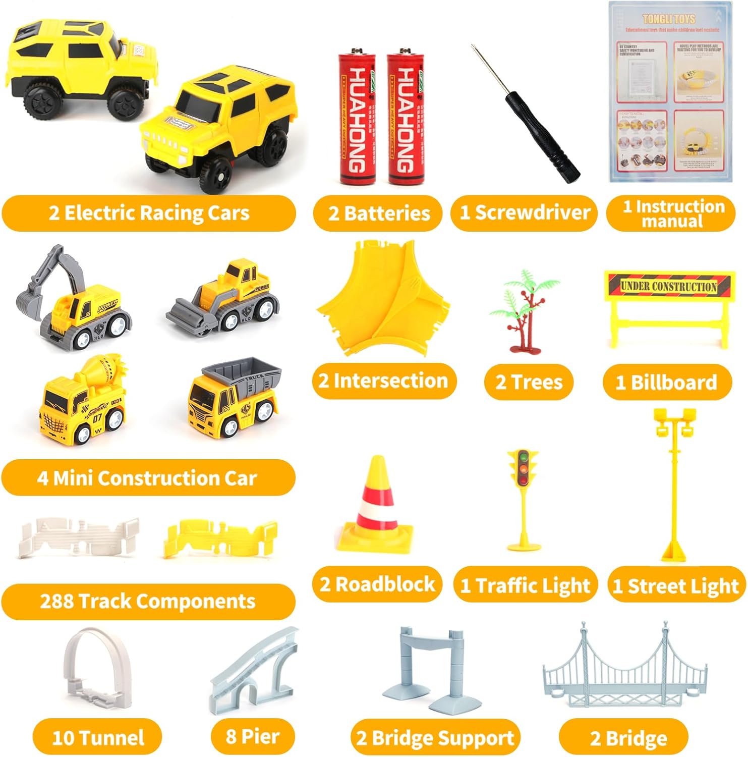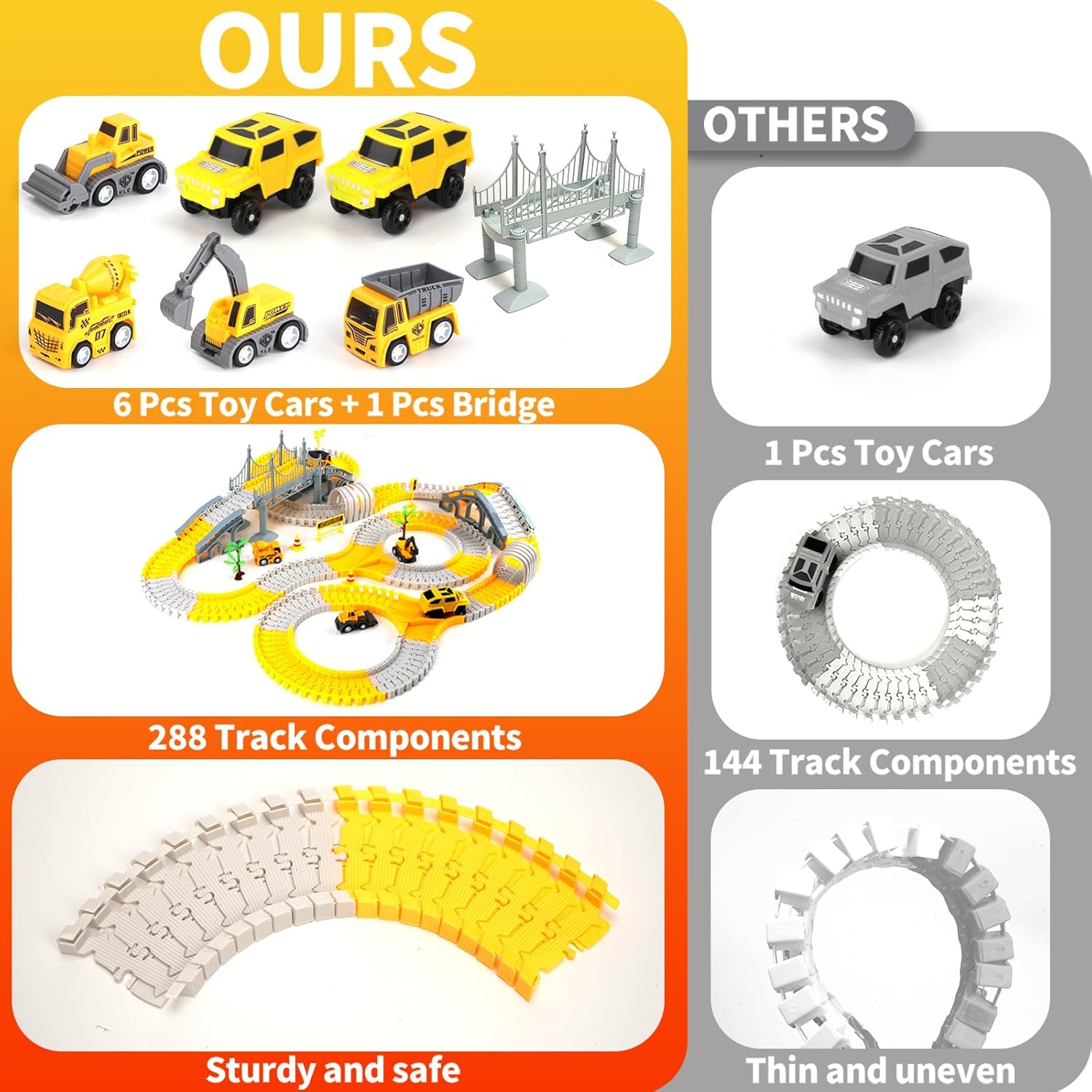 Set di piste da costruzione appena aggiornato: 288*Componenti della pista, 2*Auto elettriche da corsa, 4*Mini auto da costruzione, 8*Perno, 2*Alberi, 1*Semaforo, 2*Blocco stradale, 1*Cartellone, 1*Luce stradale, 2*Ponte, 2*Supporto ponte, 10*Tunnel, 2*Intersezione, 1*Cacciavite, 2*Batterie, 1*Manuale di istruzioni. Diversi modi di giocare, venite ad assemblare una pista unica per voi e i vostri bambini! 6 Trolleys: The track play comes with 6 different types of construction trucks, including 2* Racing cars, 1* Excavator, 1* Transport truck, 1* Cement Truck and 1* Road Roller. These construction vehicles can not only be played in combination with the tracks, but can also be used as separate toys for children to play with. Facile da assemblare e da giuntare: I binari sono morbidi e facili da giuntare, e possono essere notevolmente attorcigliati, girati e regolati per formare diverse forme di binari, aprire strade in modi diversi e adattarsi a scenari diversi. I bambini possono usare la loro immaginazione per creare il proprio vagone ferroviario ed esercitare la loro fantasia e creatività. Materiali di qualità: La sicurezza è la nostra priorità quando progettiamo giocattoli per bambini. Il set di giocattoli per auto è realizzato con materiali di alta qualità, atossici e inodori, con bordi lisci per evitare graffi. La parte della batteria è fissata con viti per evitare che i bambini la tocchino e che la batteria cada. Grande regalo per i bambini: Nessun bambino può dire di no a un set di binari giocattolo! Permette ai bambini di stare lontani dalla TV e dai videogiochi, di costruire da soli o con più bambini, di imparare a collaborare, di promuovere lo sviluppo sociale dei bambini, di migliorare le abilità manuali e di esercitare la coordinazione occhio-mano e la percezione dei colori.
