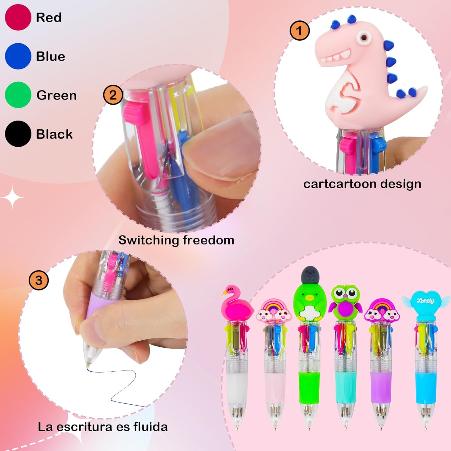 Divertente Penna a sfera Multicolore: 33 Pezzi simpatiche penne a sfera per cartoni animati, essere cambiata liberamente in 4 colori diversi in base alle tue esigenze, nero, rosso, blu, verde, per studenti o bambini. Materiale di Alta Qualità: Penne animali bambini realizzato con inchiostro di alta qualità, forma innovativa e peso leggero, per un uso a lungo termine. Design Adorabile: Ogni divertente Penna a sfera multicolore è decorata con un adorabile cappuccio a tema che renderà ogni scrittura un'avventura, La lunghezza e il diametro della penna a sfera sono particolarmente adatti alle piccole mani dei bambini, che i bambini possono cambiare a loro piacimento. Scrittura Fluida: 4 Ricariche di colori racchiuse in un fusto di penna tondo, con inchiostro di qualità resistente allo sbiadimento, fornendo un segno di scrittura chiaro e nitido, Design della pressa a molla per passare facilmente tra 4 colori. Ampia Gamma di Utilizzo: Questa penna a sfera è adatta per feste per bambini, omaggi per feste di laurea, natale, sono ideali come regalini fine festa compleanno per i piccoli ospiti, questi personaggi dei cartoni animati porteranno infinite risate e creatività ai bambini!