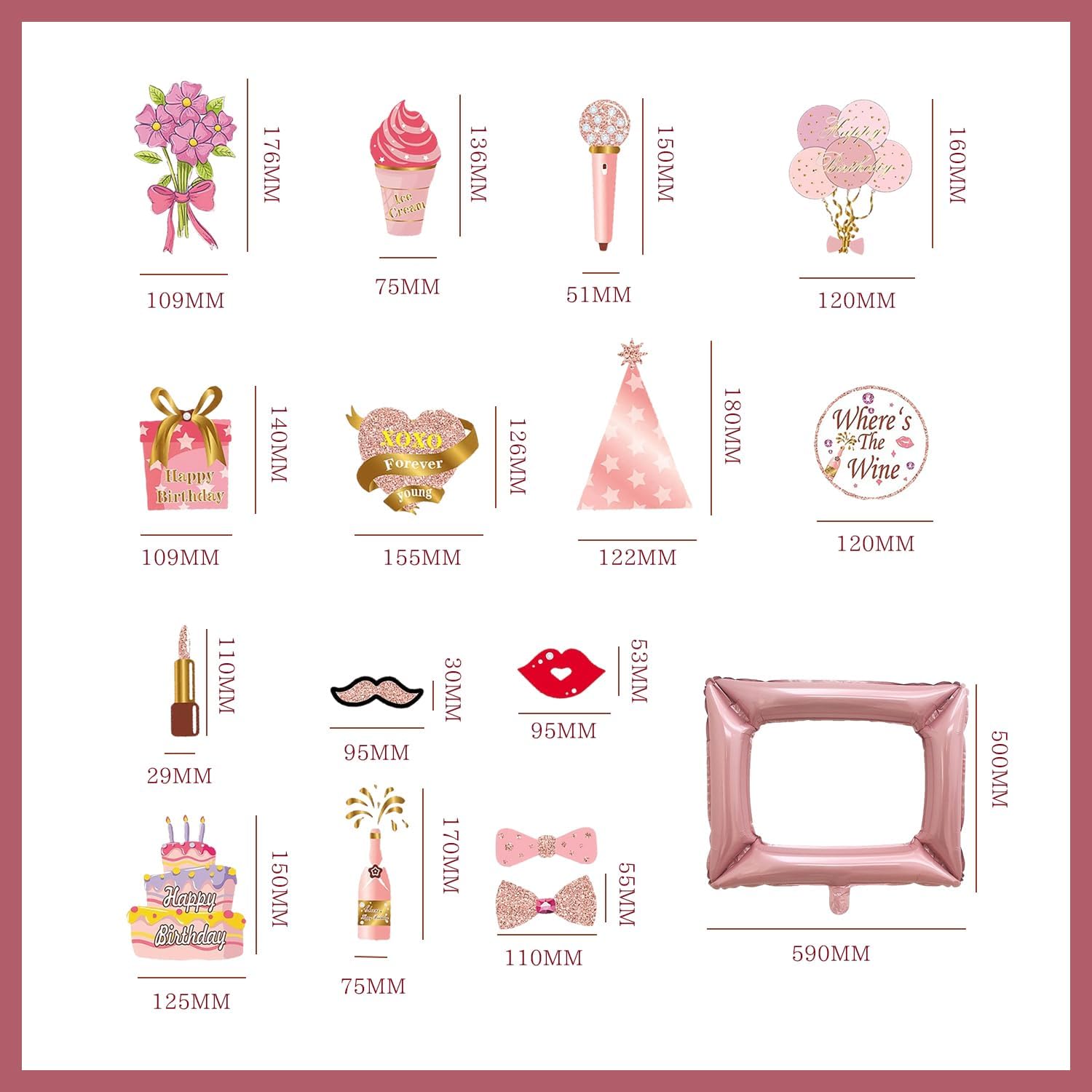 [Contenuto Del Prodotto] Riceverai 33 Oggetti Di Scena Di Compleanno Generale E 1 Palloncino Photo Frame.Gli Oggetti Di Scena Sono Rosa Puntelli Foto, Adatto Per Feste E Decorazioni Del Partito.La Dimensione Della Cornice Per Foto A Palloncino È 50*59 Cm E Il Colore È Rosa, Adatto Per La Fotografia Di Matrimonio E La Decorazione Dell'Atmosfera Festiva. [Materiale Del Prodotto] Gli Oggetti Di Scena Sono Fatti Di Carta E Bastoni Di Bambù, E Il Palloncino Photo Frame È Fatto Di Pellicola Di Alluminio E Foglio Di Alluminio. Il Materiale È Leggero E Resistente, Non Facile Da Danneggiare E Adatto A Molteplici Usi Per Aggiungere Divertimento E Bellezza Alla Tua Festa. [Design Creativo] Il Design È Unico, Rosa Puntelli E Cornici Per Foto Aggiungere Un'Atmosfera Romantica E Calda, Particolarmente Adatto Per Feste Di Compleanno, Matrimoni E Varie Celebrazioni Di Festa Per Rendere Il Vostro Evento Più Memorabile. [Facile Da Usare] Questi Oggetti Di Scena Sono Facili Da Usare, Possono Essere Utilizzati Con Un Semplice Assemblaggio, Sono Leggeri E Facili Da Trasportare E Sono Adatti Per Il Layout E Lo Smontaggio Rapidi In Varie Occasioni, Rendendo Più Facile La Preparazione Della Festa. [Ampiamente Usato] Questo Prodotto Non È Adatto Solo Per Feste Di Compleanno, Ma Anche Per Matrimoni, Feste Di Festa E Vari Eventi A Tema. Aggiunge Divertimento E Bellezza Al Tuo Evento Ed È La Scelta Ideale Per La Decorazione Del Partito.