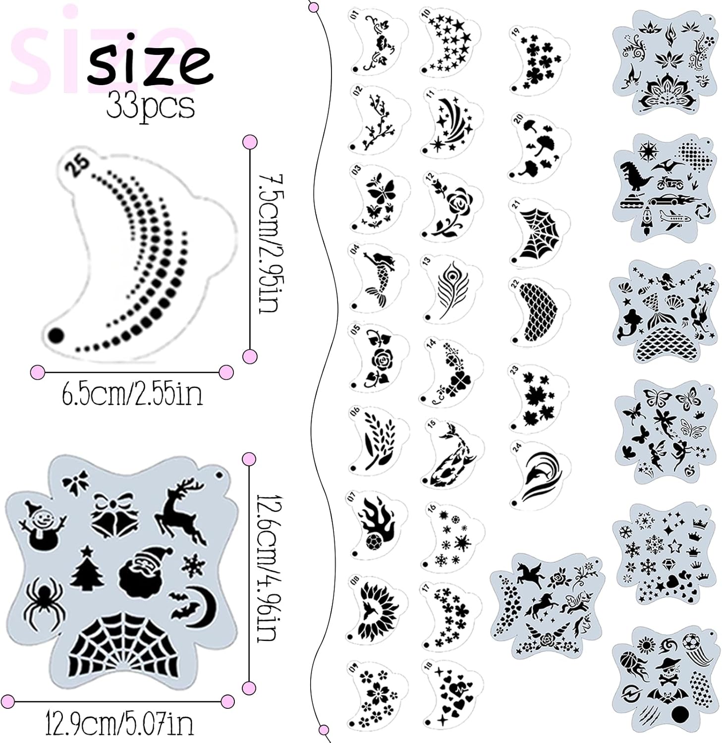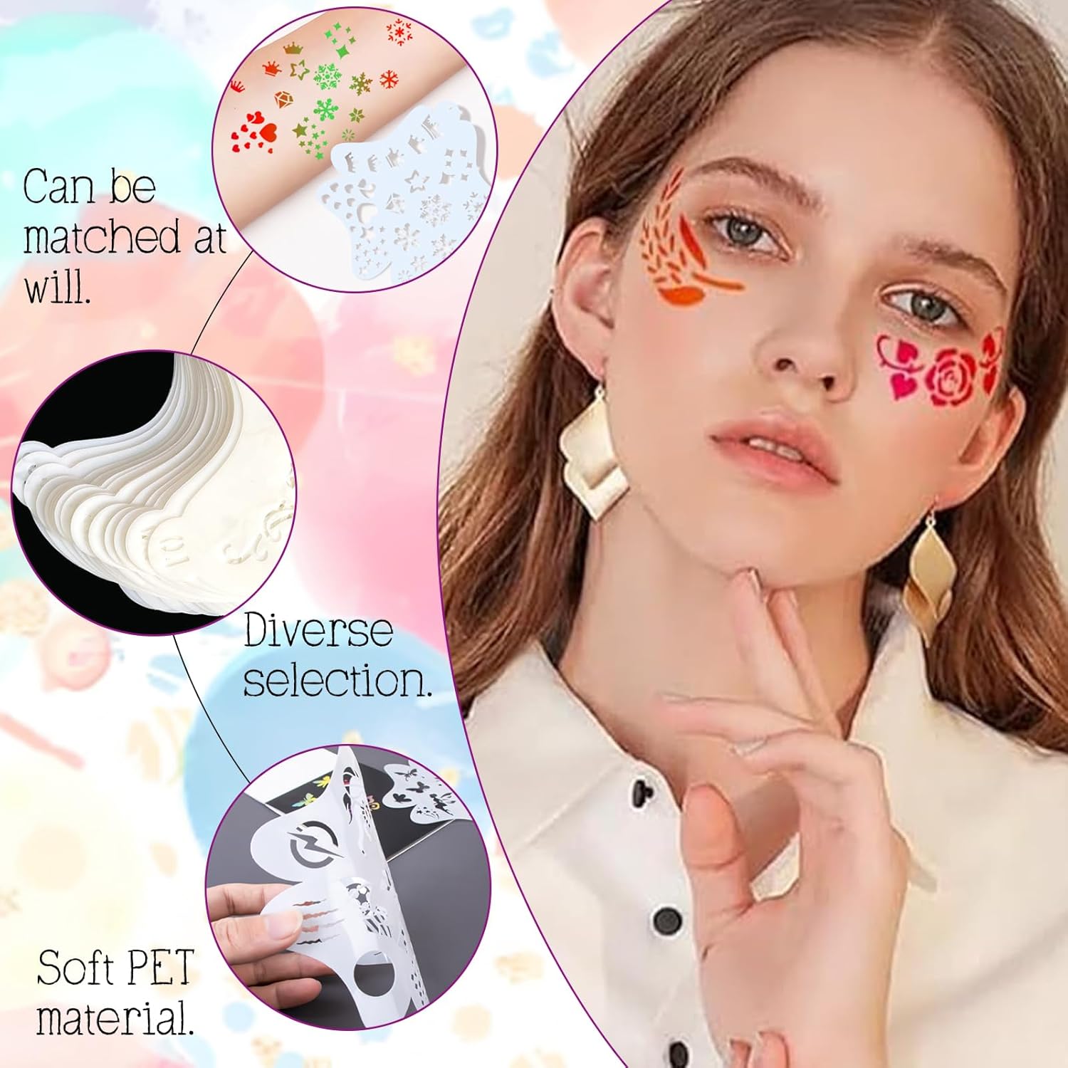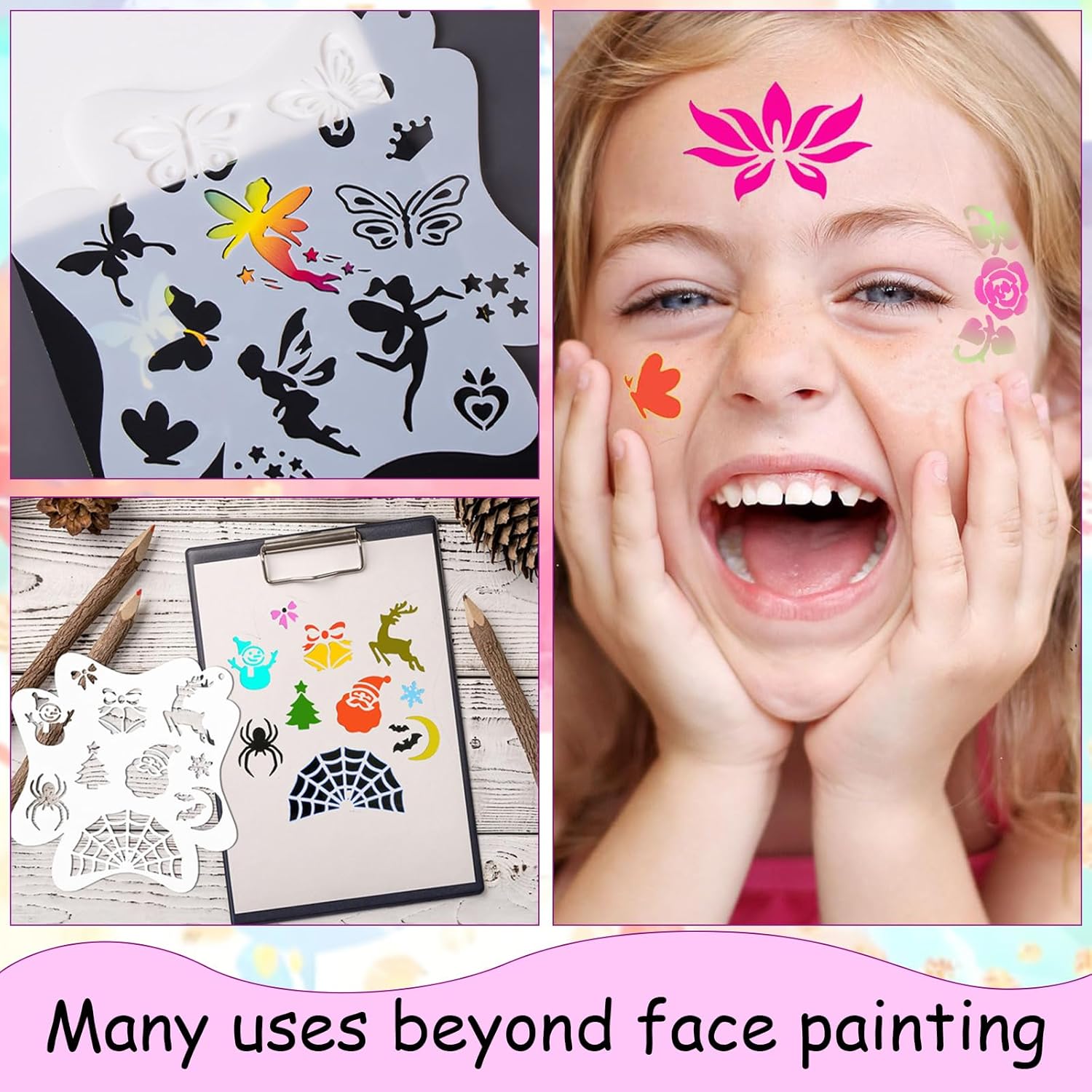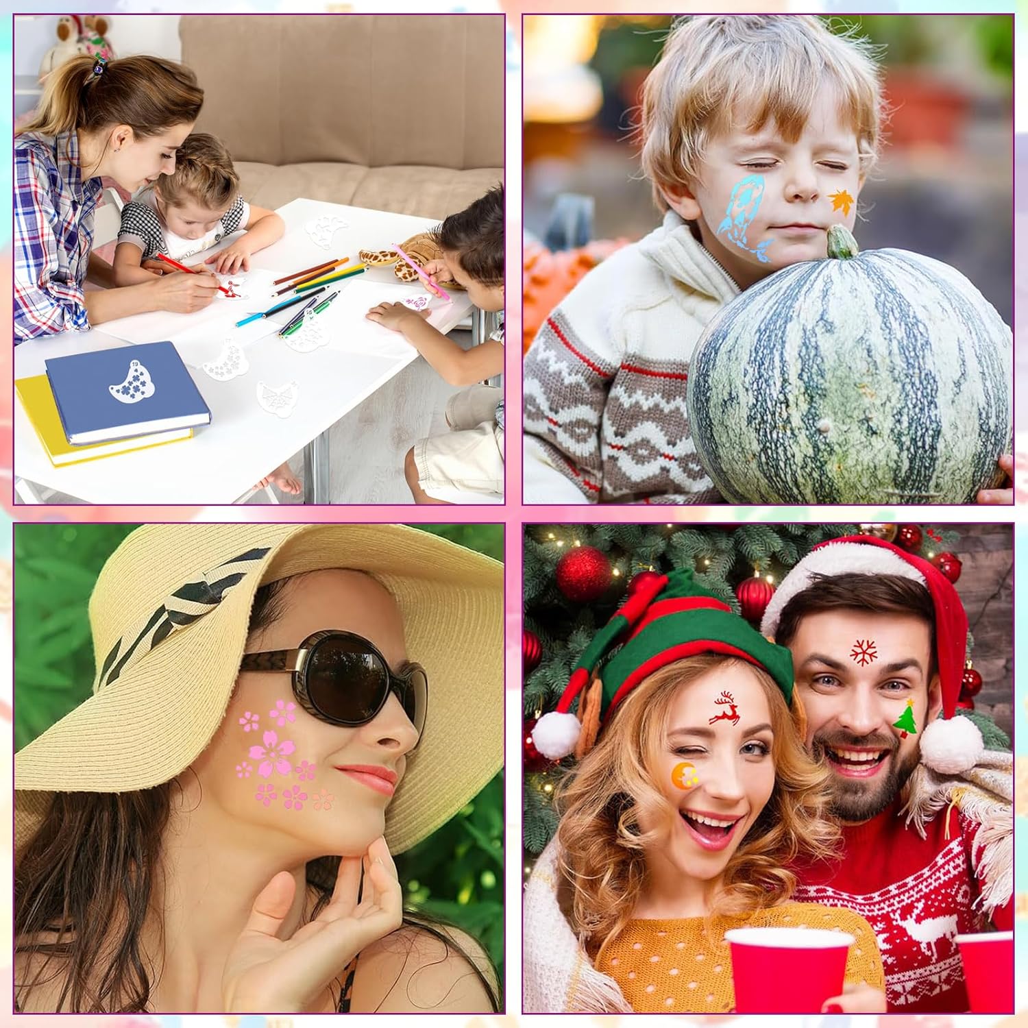 Materiali di Alta Qualità: Questo stencil tattoo facciale è realizzato in materiale PET, adatto al contatto diretto con la pelle. Che si tratti di bambini o adulti, può essere utilizzato con sicurezza. Il truccabimbi kit facciale ha una superficie liscia e bordi arrotondati per evitare irritazioni alla pelle. Il materiale PET ha una buona flessibilità e può adattarsi alla curva del viso per garantire l'integrità del motivo dipinto Stili Multipli: I nostri stencil per pittura facciale sono progettati in vari stili e sono adatti a varie occasioni e temi. Che si tratti di una festa per bambini, di una festa o di uno spettacolo teatrale, questo stencil per trucco viso bambini può facilmente soddisfare le tue esigenze. Il materiale PET non è solo durevole, ma garantisce anche motivi chiari e bordi nitidi, in modo che ogni pittura possa ottenere risultati professionali Facile da Usare: Questo face make up stencils è semplice e facile da usare e anche le persone senza esperienza possono padroneggiarlo rapidamente. Basta adattare il modello di pittura facciale sulla pelle e applicarlo delicatamente con una penna o una spugna per ottenere un motivo perfetto. I bordi di questo modello tatuaggi halloween viso sono finemente lavorati per garantire che la pelle non venga graffiata durante l'uso Riutilizzabile: Il nostro modello tattoo halloween può essere riutilizzato più volte ed è facile da pulire. Basta sciacquarlo con acqua pulita per riportarlo alla pulizia. Questo design non è solo economico, ma riduce anche gli sprechi. Che sia per uso domestico o commerciale, il nostro modello tatoo halloween può farti risparmiare sui costi mantenendo effetti di pittura di alta qualità Ampiamente Utilizzato: Questo modello trucchi carnevale viso bambini è adatto a una varietà di occasioni, tra cui feste per bambini, Halloween, carnevali, spettacoli teatrali, ecc. Che si tratti di creare una simpatica forma di animale per bambini o di progettare un trucco natalizio unico per adulti, questo modellostencil per tatuaggi può soddisfare le tue esigenze. Il suo design leggero è anche facile da trasportare, adatto per attività all'aperto o viaggi