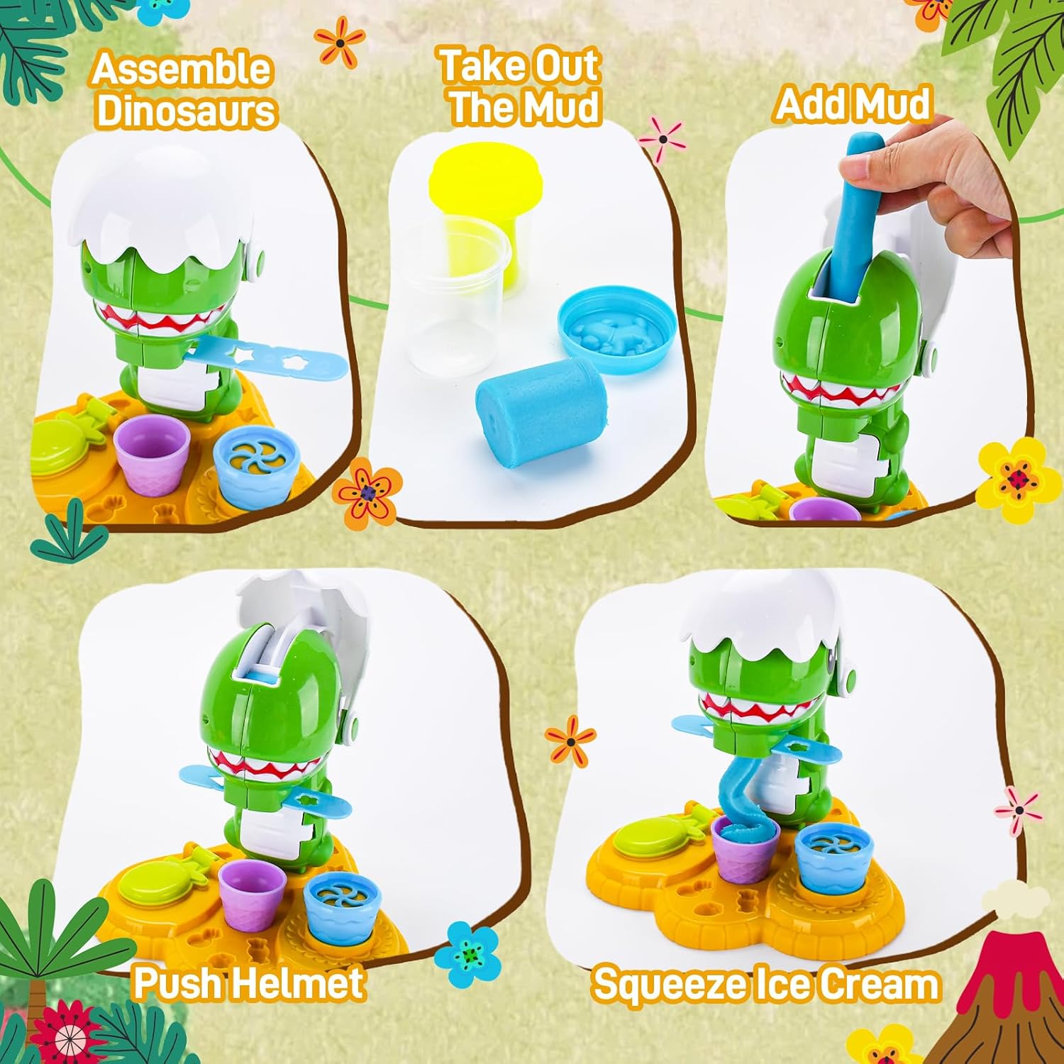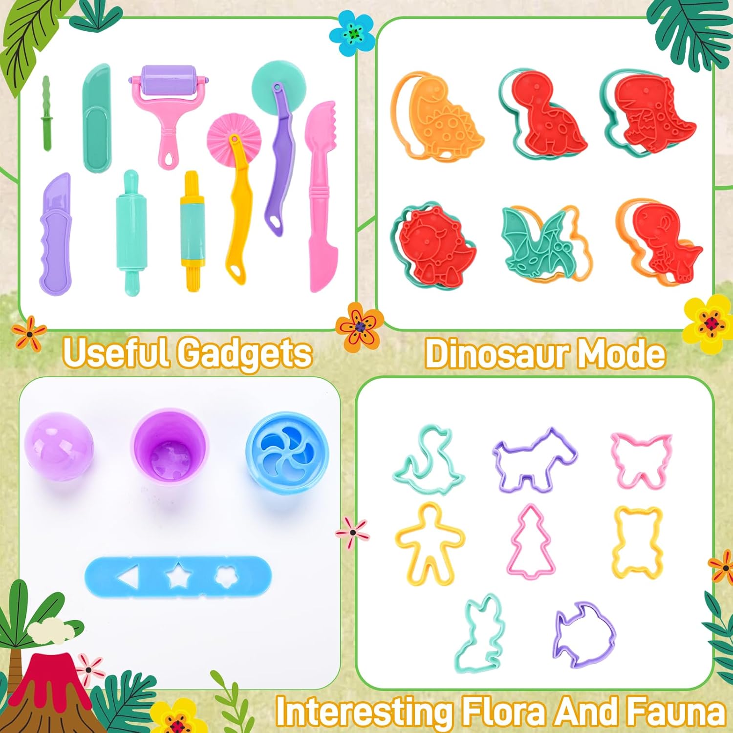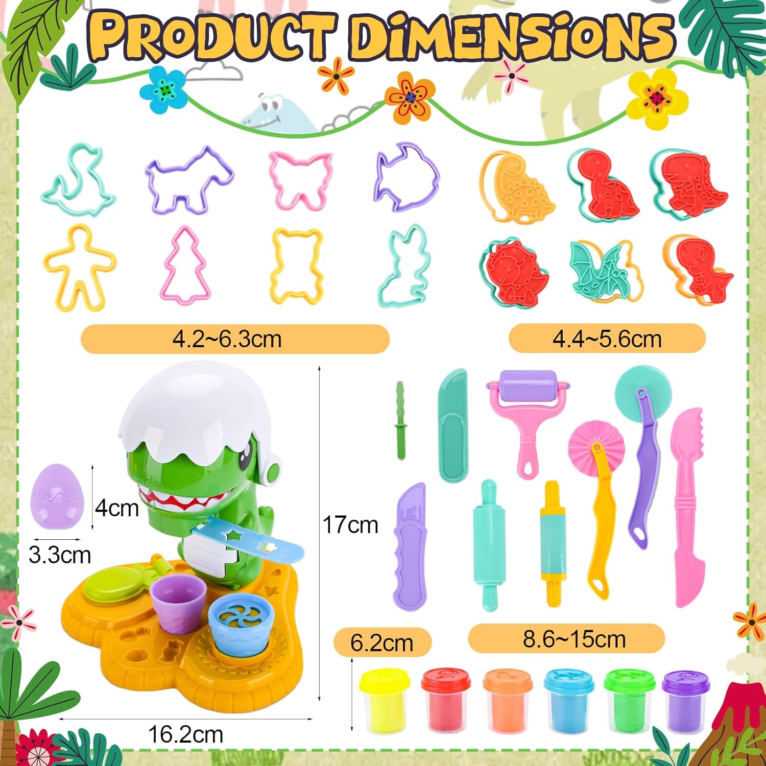 【Set di pasta modellabile dinosauri】 Questo set di pasta modellabile da 34 pezzi contiene 6 colori di pasta modellabile,13 accessori,14 stampini e 1 estrusore per pasta modellabile con motivi dinosauri.Il design versatile soddisfa le diverse esigenze creative dei bambini e stimola la loro creatività senza limiti 【Materiali di alta qualità】 Questo set di plastilina è realizzato con materiali di alta qualità, atossici,leggeri e resistenti.Gli strumenti hanno bordi lisci e senza sbavature per garantire sicurezza e affidabilità, aiutando allo stesso tempo i bambini a sviluppare la loro manualità e le loro abilità pratiche attraverso il gioco 【Design accattivante a tema】 Questo set di strumenti per modellare la plastilina contiene diversi elementi,come i dinosauri,che stimolano il divertimento. È ideale per feste,aule scolastiche o intrattenimento familiare e garantisce che i bambini siano completamente occupati 【Giocattolo educativo】 Il set di accessori per modellare i dinosauri è caratterizzato da colori vivaci,motivi e componenti versatili che stimolano l'immaginazione e la creatività dei bambini,migliorando al contempo la coordinazione occhio-mano e le capacità motorie fini 【Idea regalo ideale】 Questo set di strumenti per modellare la plastilina è il regalo perfetto per compleanni,Natale,Halloween o come regalo per eventi scolastici e intrattenimento durante le vacanze: un giocattolo pratico che i bambini adorano