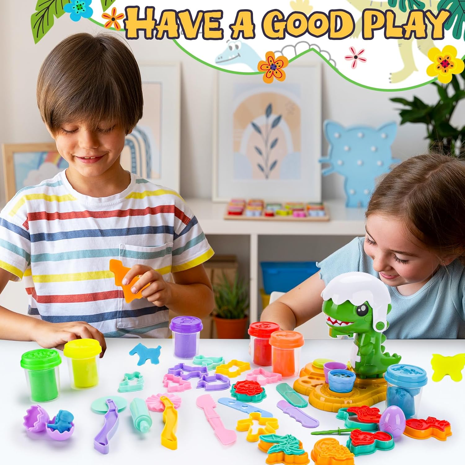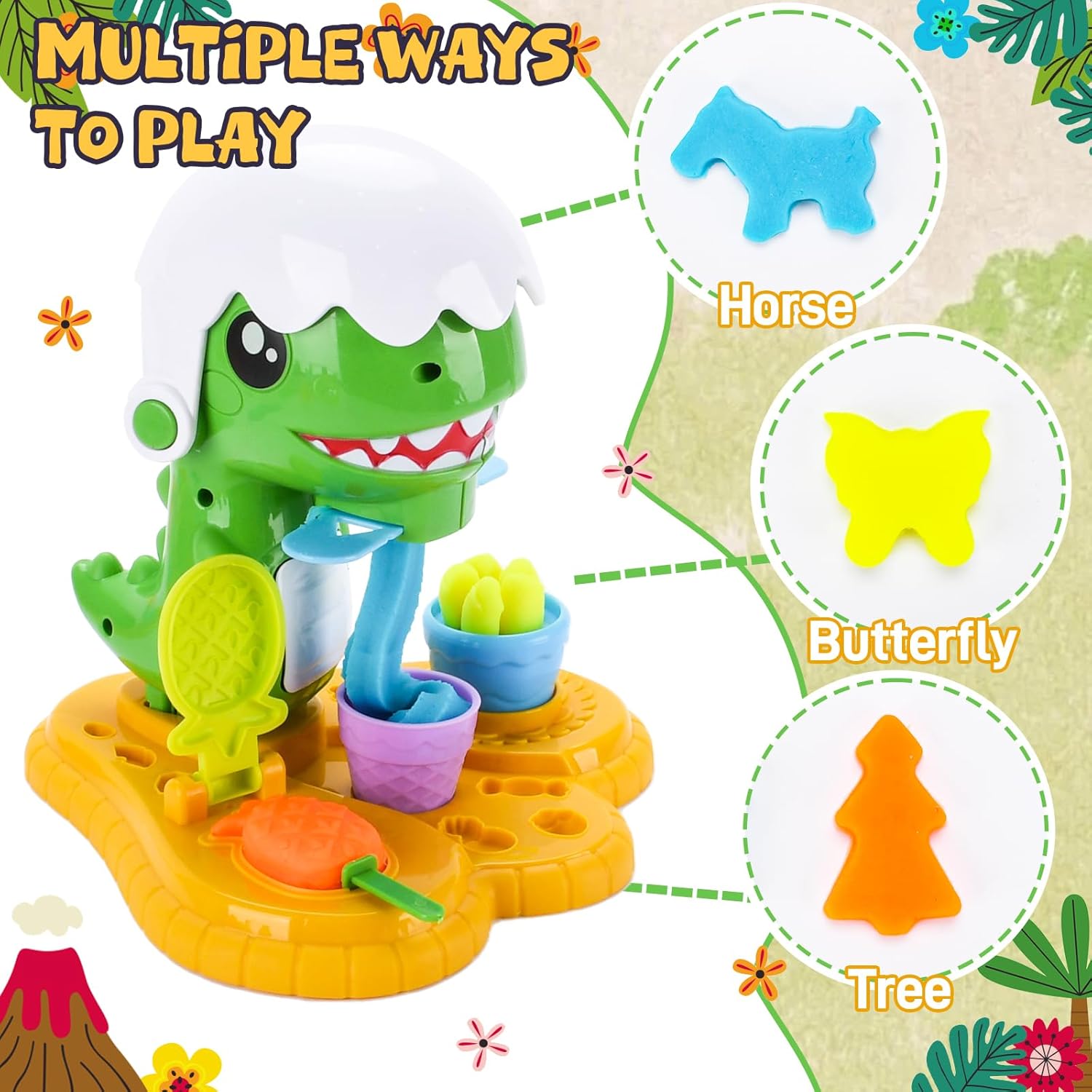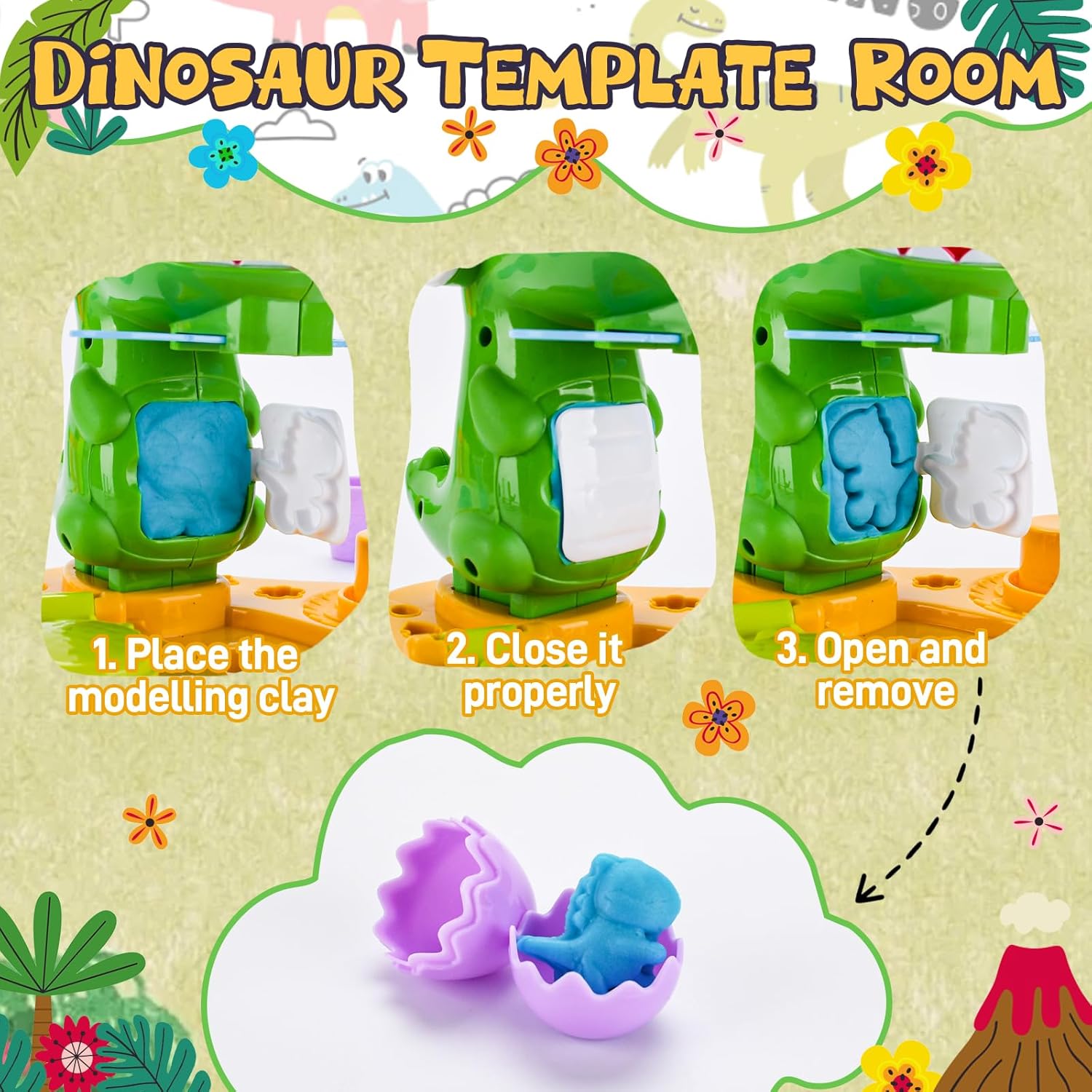 【Set di pasta modellabile dinosauri】 Questo set di pasta modellabile da 34 pezzi contiene 6 colori di pasta modellabile,13 accessori,14 stampini e 1 estrusore per pasta modellabile con motivi dinosauri.Il design versatile soddisfa le diverse esigenze creative dei bambini e stimola la loro creatività senza limiti 【Materiali di alta qualità】 Questo set di plastilina è realizzato con materiali di alta qualità, atossici,leggeri e resistenti.Gli strumenti hanno bordi lisci e senza sbavature per garantire sicurezza e affidabilità, aiutando allo stesso tempo i bambini a sviluppare la loro manualità e le loro abilità pratiche attraverso il gioco 【Design accattivante a tema】 Questo set di strumenti per modellare la plastilina contiene diversi elementi,come i dinosauri,che stimolano il divertimento. È ideale per feste,aule scolastiche o intrattenimento familiare e garantisce che i bambini siano completamente occupati 【Giocattolo educativo】 Il set di accessori per modellare i dinosauri è caratterizzato da colori vivaci,motivi e componenti versatili che stimolano l'immaginazione e la creatività dei bambini,migliorando al contempo la coordinazione occhio-mano e le capacità motorie fini 【Idea regalo ideale】 Questo set di strumenti per modellare la plastilina è il regalo perfetto per compleanni,Natale,Halloween o come regalo per eventi scolastici e intrattenimento durante le vacanze: un giocattolo pratico che i bambini adorano