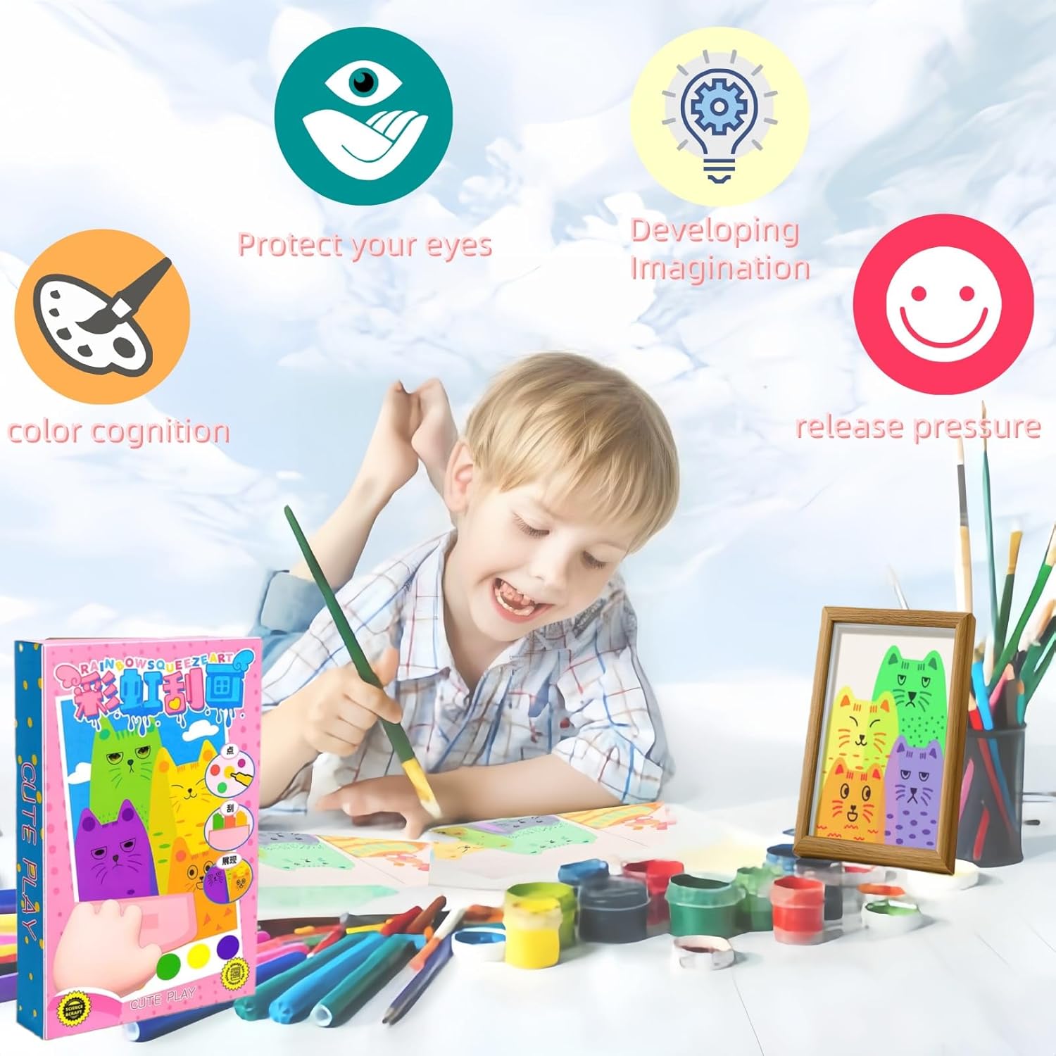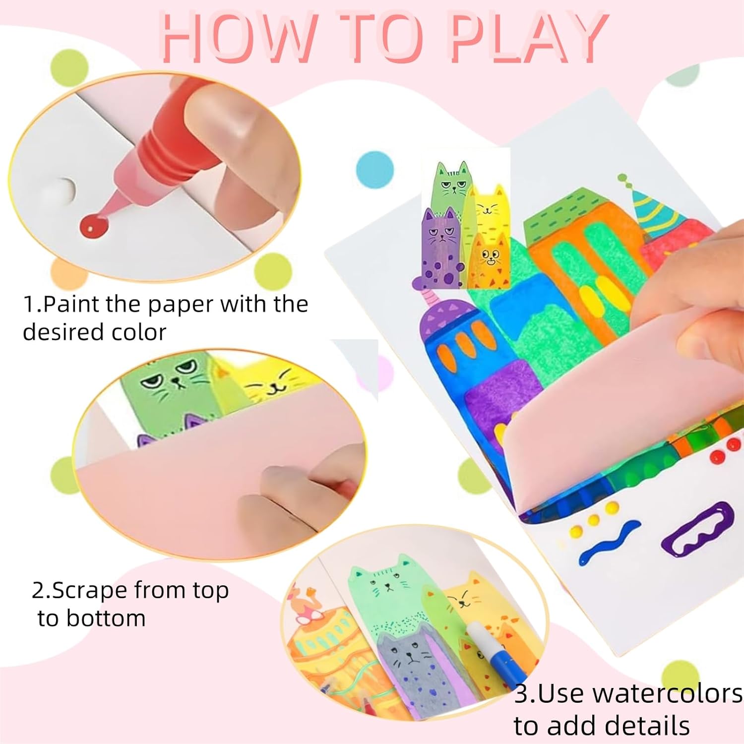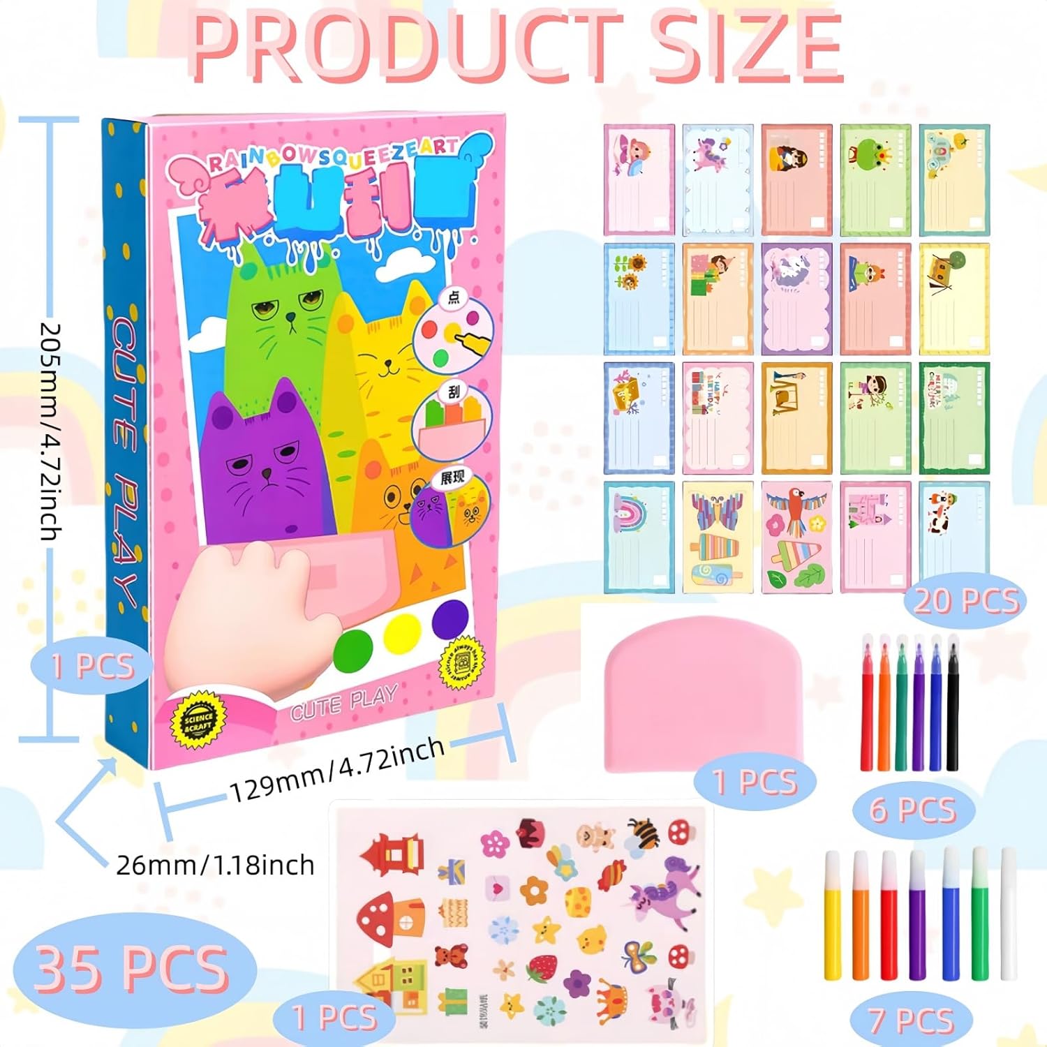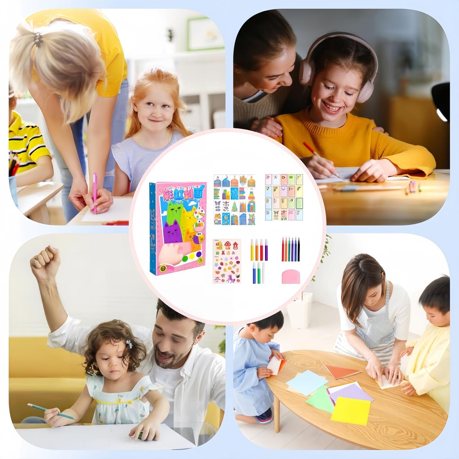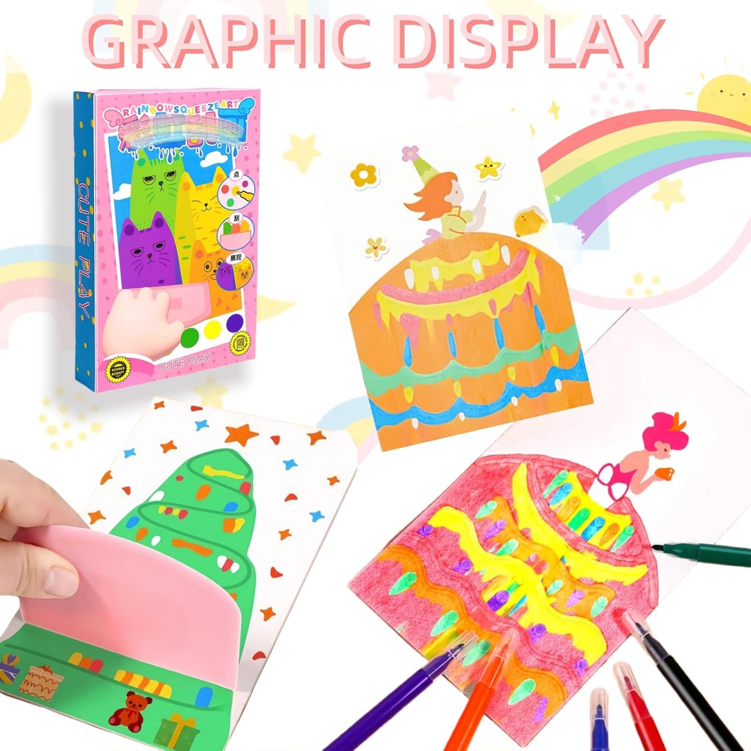 【Immagini da grattare dell'arcobaleno】 Rainbow Scratch Off Pictures for Kids include 20 disegni, 7 colori dell'arcobaleno, 6 matite acquerellabili, 1 spatola e un foglio di adesivi, 4,72 x 4,72 x 1,18 pollici Rainbow Scratch offre una vasta gamma di colori in modo che i bambini possano mescolare e abbinare le migliori combinazioni di colori. E creare opere d'arte uniche e versatili che esprimano la loro creatività e personalità. 【Disegno e utilizzo delle carte】 Colorare lungo le linee pre-disegnate sulla carta, attendere 10-30 secondi, quindi raschiare la carta con una spatola per lisciare il disegno. Il retro dell'immagine raschiata è costituito da cartoline con diversi bellissimi motivi, perfette per condividere le proprie opere d'arte e i propri desideri, come inviti a feste o biglietti d'auguri con gli amici. 【Illuminazione artistica】 Combinando liberamente punti, linee e quadrati, i bambini possono creare modelli unici e combinazioni di colori che stimolano le cellule artistiche dei bambini. I colori vivaci e audaci lasciano correre l'immaginazione dei bambini e sviluppano la loro mente e creatività. 【Sicurezza per i bambini】 I quadri da grattare arcobaleno sono realizzati con materiali di alta qualità e sicuri per i bambini. Questi quadri da grattare sono facili da usare e non richiedono abilità particolari, il che li rende perfetti per i bambini di tutte le età. 【Divertimento interattivo】 Sia per le feste di compleanno dei bambini, sia come attività divertente a casa, sia come festa di foto scrapbooking arcobaleno può essere versatile, e l'arcobaleno di foto scrapbooking per le occasioni speciali fornisce ore di intrattenimento creativo e divertimento pratico per ragazzi e ragazze.