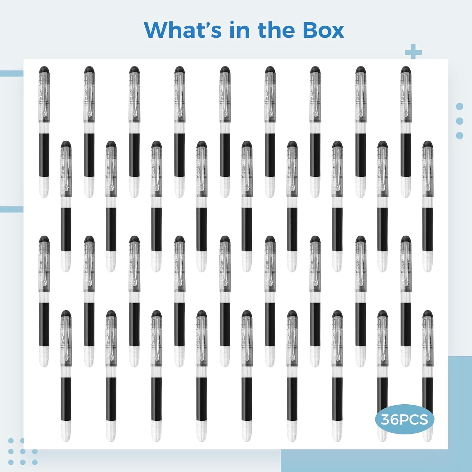 【Confezione sfusa】36 penne stilografiche nere, ideali per aule, uffici e uso domestico; ideale per esigenze di scrittura personali e professionali Scrittura precisa: la punta fine in acciaio inossidabile da 0,1 cm garantisce una scrittura fluida e continua; la tecnologia dell'inchiostro ad asciugatura rapida evita macchie per risultati puliti Inchiostro ad alto volume: l'ampia capacità di inchiostro garantisce un lungo tempo di scrittura senza ricariche; Distribuzione uniforme dell'inchiostro per attività di scrittura ininterrotte Comfort ergonomico: il corpo leggero in resina PP riduce l'affaticamento della mano durante sessioni di scrittura prolungate; il pennino robusto resiste all'usura Versatile: ideale per prendere appunti, schizzi, diari e calligrafia; sia per utenti destrimani che mancini in varie impostazioni