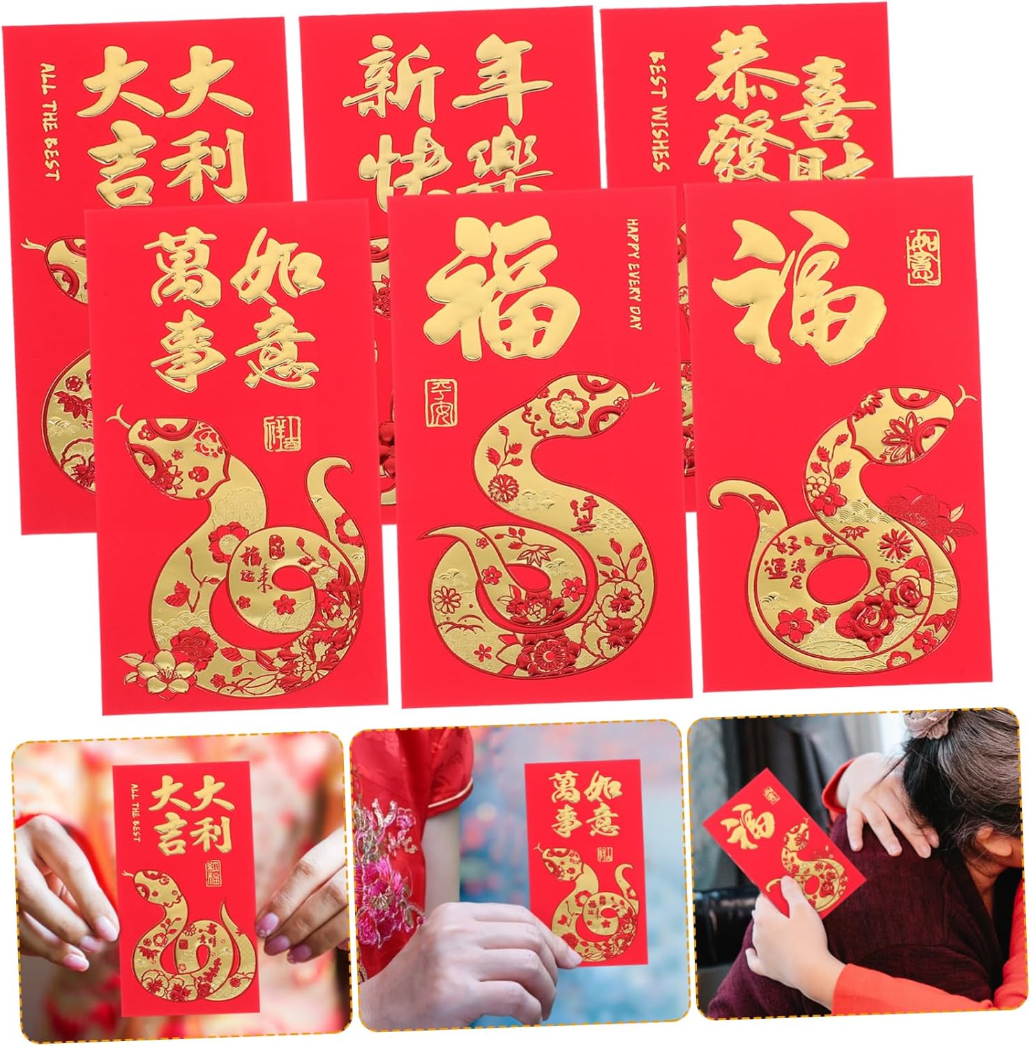 Fortuna e prosperità: design unico per il festival primaverile dell'anno del serpente 2025, che rappresenta buona fortuna e prosperità Colori vivaci: le buste rosse presentano colori vivaci e una buona stampa, aggiungendo un tocco festoso alle celebrazioni Scelta versatile: con dimensioni convenienti, queste buste possono contenere vari tagli di denaro, rendendole versatili e pratiche Grandi quantità: ogni set include ampie quantità di buste rosse e garantisce che ci siano abbastanza buste per più destinatari Costruito per durare: prodotto con materiale cartaceo buono e pratico, antiusura e spesso per un lungo periodo di utilizzo