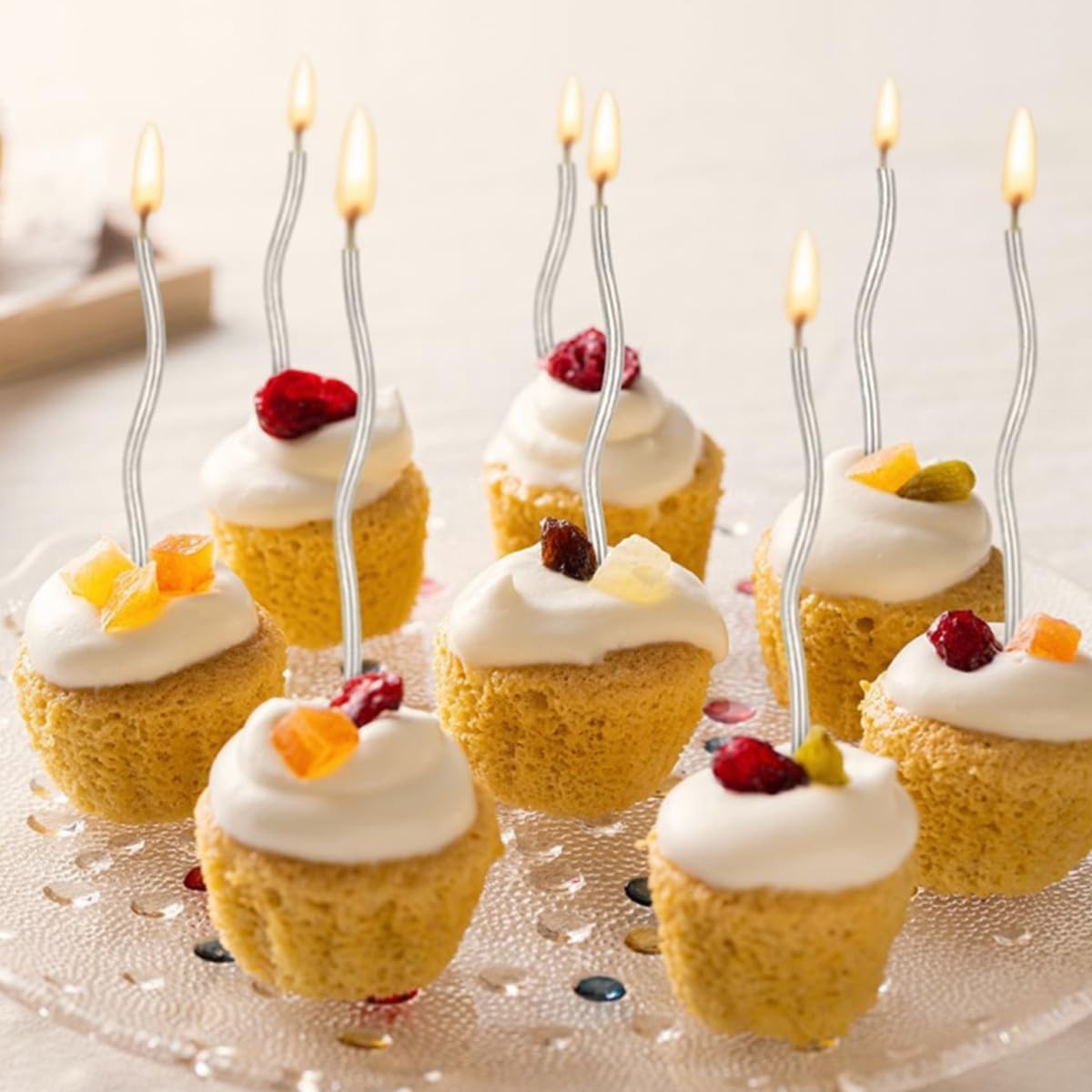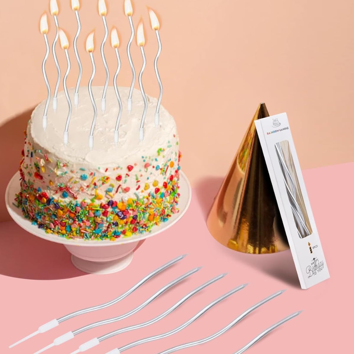 Prodotto incluso: Riceverai 36 candele tortiliate per torte. La lunghezza totale della candela è di 16,5 cm / 6,5 pollici. Puoi tagliare le candele alla lunghezza desiderata in base alle dimensioni della torta. Nuovo design a spirale: Queste candele per torte sono progettate a forma di spirale con una finitura metallizzata, che sembra molte fate che ballano sulla torta, creando facilmente un'atmosfera romantica; il supporto di plastica aiuta a evitare di danneggiare la bella superficie della torta. Elegante design a spirale: Le candele tortiliate color Argento metallizzato creano un effetto magico e fatato sulle torte. Uso versatile: Queste candele per torte sono perfette per compleanni, matrimoni, anniversari, Natale e celebrazioni festive. Base protettiva in plastica: Previene i danni alle superfici della torta garantendo al contempo stabilità.