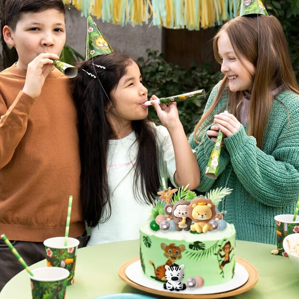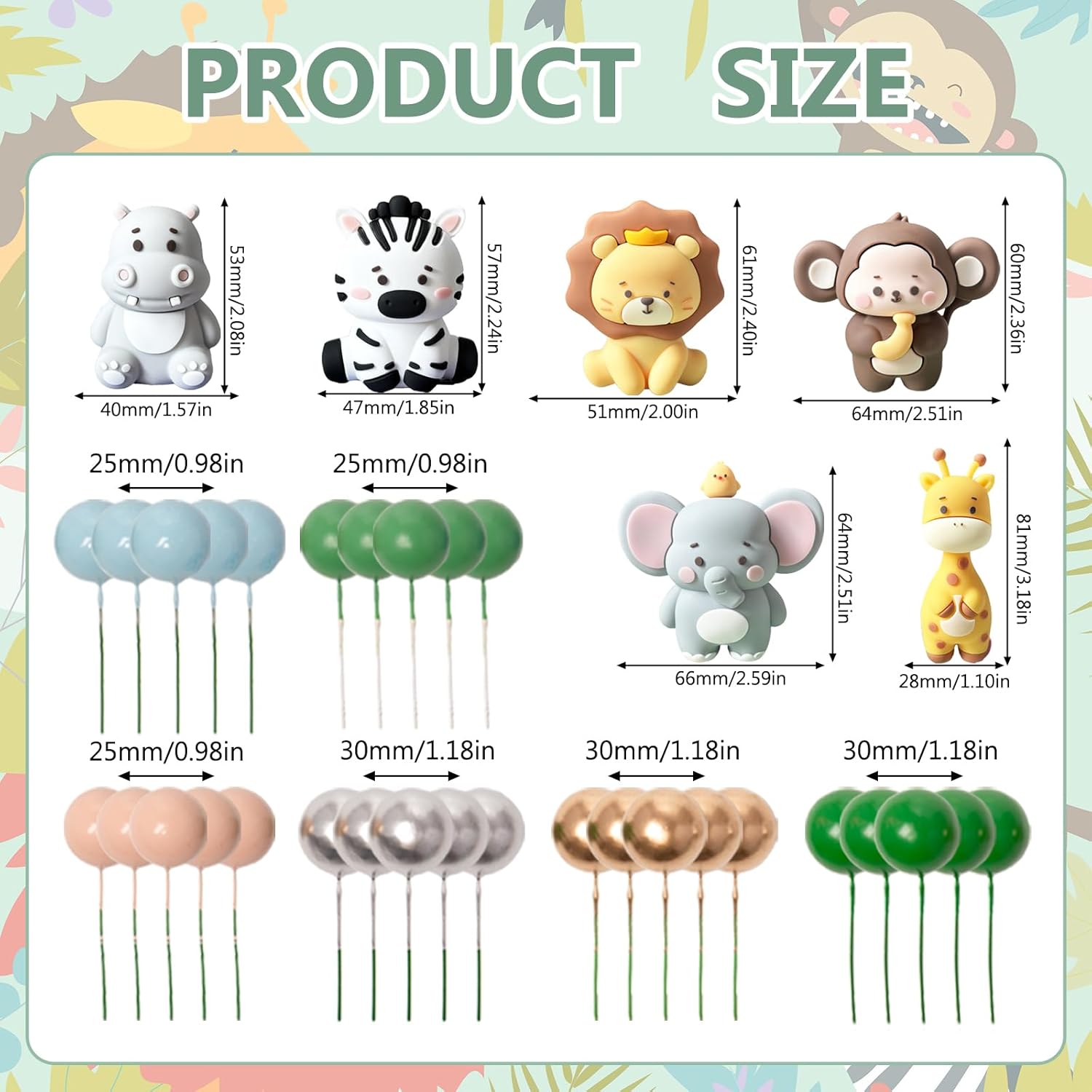 Decorazioni per torte con animali: il set comprende 6 graziose decorazioni di animali tridimensionali, zebra, elefante, ippopotamo, scimmia, giraffa, leone, 15 palline decorative di 3 cm (oro, argento, verde reale), 15 palline decorative di 2,5 cm (azzurro, rosa, verde chiaro) Materiali di alta qualità: la decorazione della torta con animali della giungla è realizzata in materiale di argilla di alta qualità, che non è facile da deformare, e le palline decorative sono fatte di schiuma, che è colorata, delicata e bella e riutilizzabile Tema animale: Foresta Topper per torta a tema animali, realistico, con palline decorative colorate, crea una scena zoo ricca e unica, regala ai bambini un'autentica esperienza di festa nella giungla Decorazione fai da te: il topper per torta di compleanno safari nella giungla non può essere utilizzato solo come topper per torta con animali per bambini, porta fantasia e divertimento alla tua festa, crea un'atmosfera allegra, simpatici animali possono anche essere conservati come souvenir Ampia applicazione: il cake topper a tema giungla è adatto per decorare torte con temi animali, foresta e giungla, che può essere utilizzato per feste di compleanno per bambini, feste a tema animali, feste a tema foresta, famiglia riunioni, feste in giardino e altre attività festive