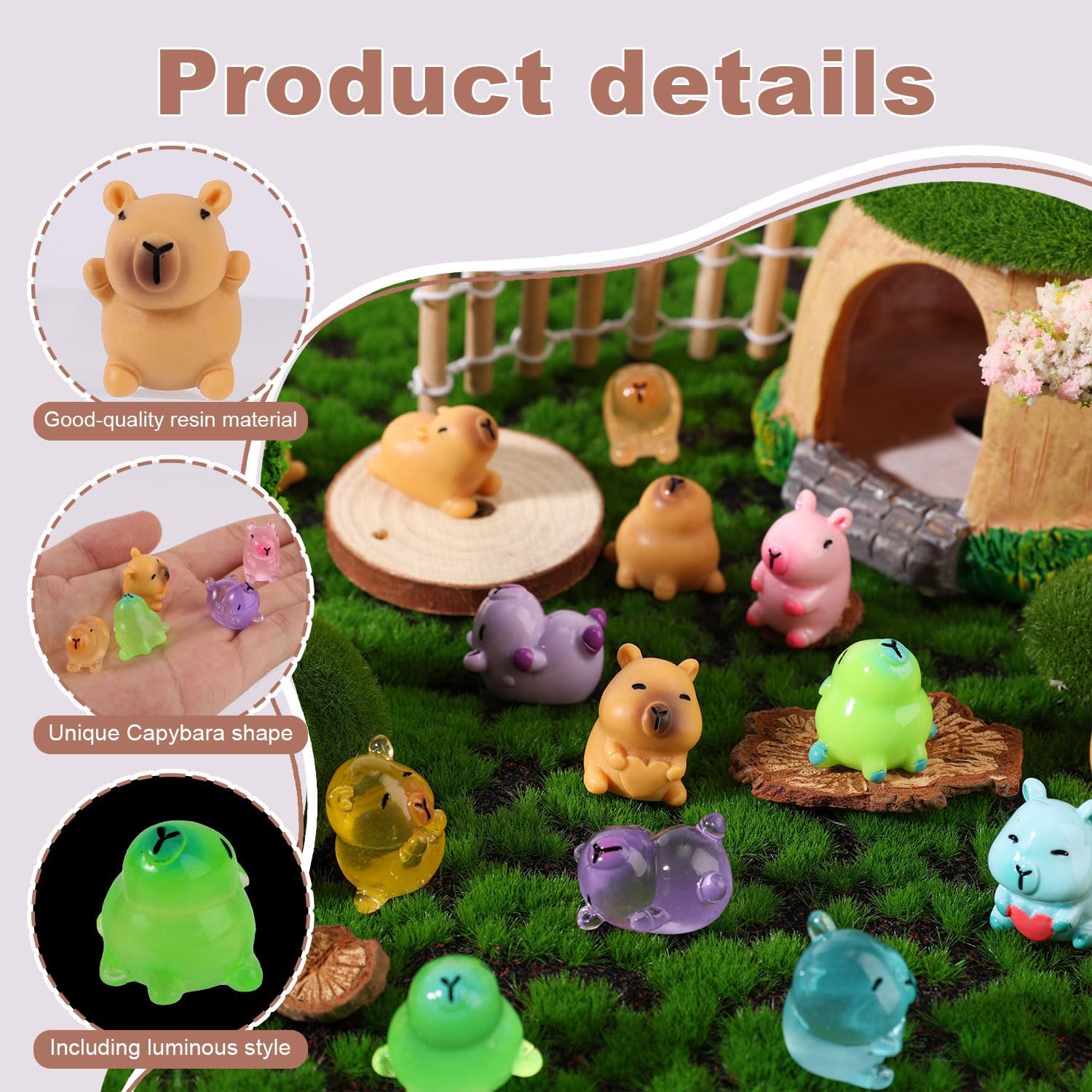 Contenuto del pacchetto: riceverai 36 mini figure Capybara, in stili classici e luminosi, sono disponibili in una varietà di colori e forme uniche, molto carine e giocose. Design luminoso: alcuni mini capybara sono progettati con design luminoso, possono brillare quando è buio, creando un'atmosfera magica e sognante.Perfetto per decorare camere da letto, comodini, percorsi da giardino, ecc. Materiale premium: questi mini animali in resina sono realizzati in resina di buona qualità e ogni figura di Capybara è molto realistica e vivida, con raffinata fattura per garantire una bellezza duratura. Decorazione versatile: la graziosa capybara in resina può essere utilizzata per decorare mini giardini, dashboard automobilistici, case giocattolo, paesaggi in miniatura e può anche essere usato come decorazioni per topper per torte. Regalo perfetto: questo è un regalo divertente e ponderato per gli amanti, i collezionisti e le persone a cui piacciono i modelli in miniatura.Perfetto anche per premi scolastici, giochi di scatole cieche e mestieri fai -da -te.