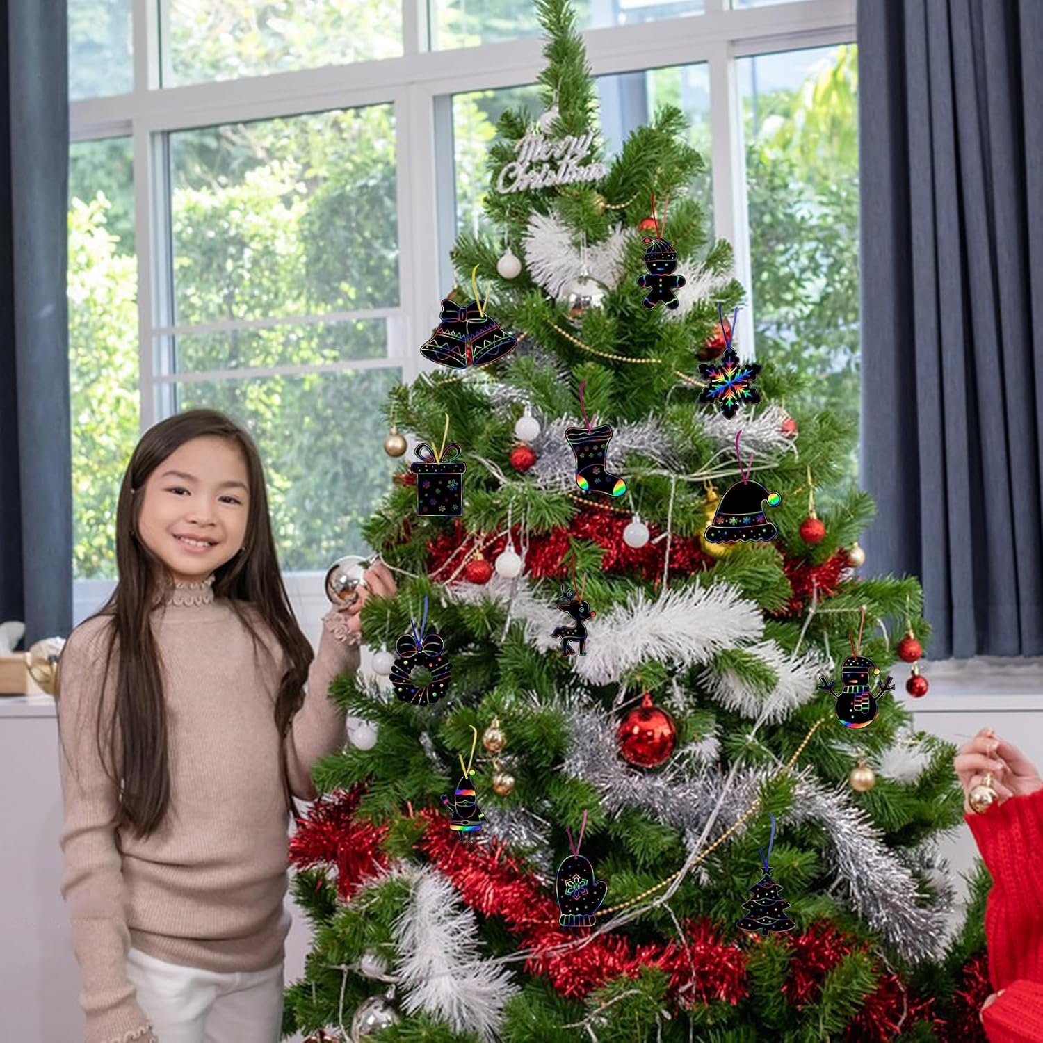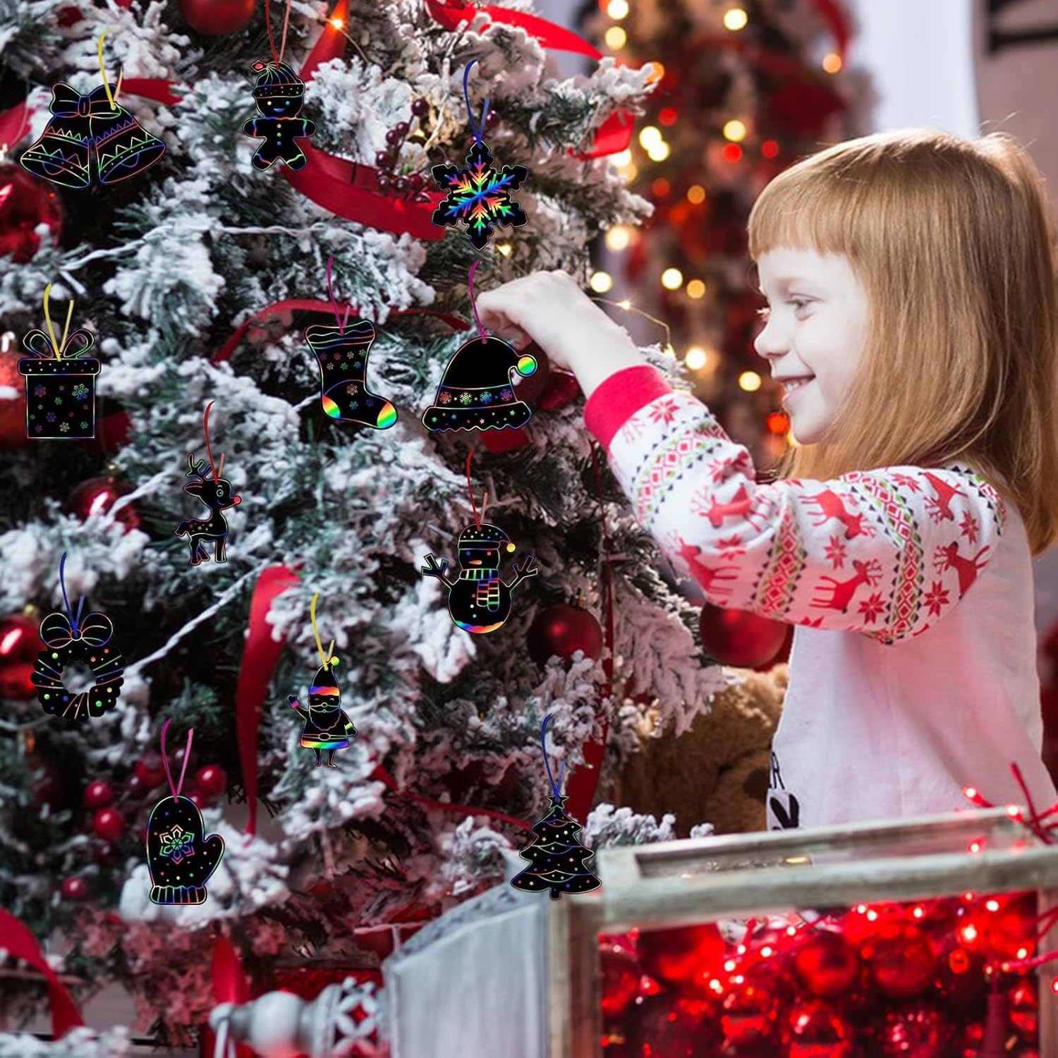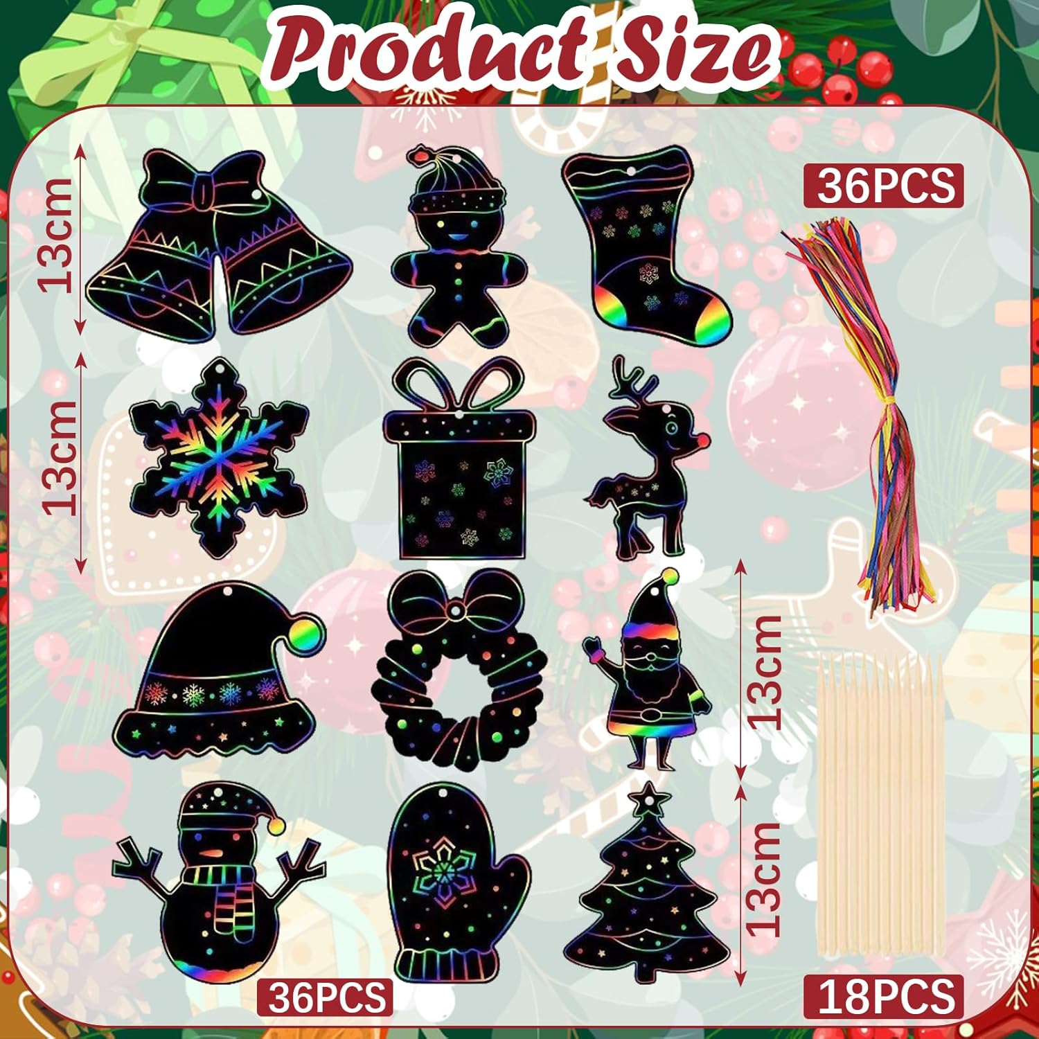 Immagini di graffi di Natale Set per bambini: questo set contiene 36 pezzi di immagini di scratch natalizie (la dimensione della confezione è di 14cm*14 cm *2,5 cm) in 12 diverse forme (ogni forma di 3 pezzi), 18 pezzi di spille in legno e 36 pezzi di nastri colorati, abbastanza da coprire la tua necessità di decorazione natalizia. Qualità sicura: i graffi di Natale sono costituiti da carta arcobaleno, sono facili da graffiare e non tossici, i bambini possono usarlo in modo sicuro. I nastri colorati sono resistenti e non facili da rompere. La penna di legno è ecologica e leggera. Tema di Natale: questo graffio di Natale ha 12 diverse forme di design di elementi di Natale, tra cui Babbo Natale, albero di Natale, calza di Natale, uomo di pan di zenzero, pupazzo di neve, campana, renne, ecc., Aumenta l'atmosfera festosa Facile da usare: usa semplicemente una penna per scrivere o disegnare su una superficie nera, appare il rivestimento arcobaleno nascosto; Quindi puoi legare le carte con i legamenti e uscire ovunque tu voglia decorarle. Il regalo di Natale perfetto: questo graffio arcobaleno è adatto come regalo di Natale per ragazzi e ragazze. Questo graffio può essere utilizzato in molte occasioni sensate come festa di Natale, progetto artigianale, attività del campo d'arte o giornata di divertimento in famiglia, realizza alcuni colori diversi come regalo per i tuoi amici, compagni di classe, insegnanti.