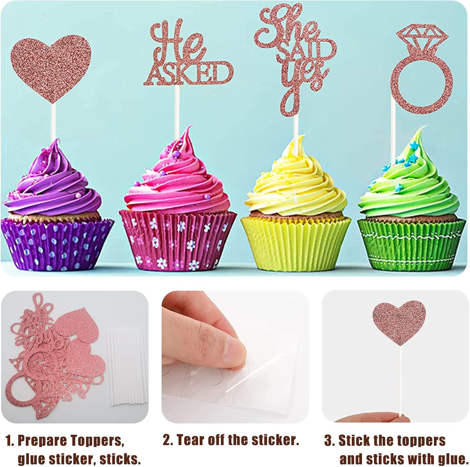 【Materiale】 Questo topper è realizzato in carta lucida di alta qualità ed è glitterato sul davanti e ha uno spazio vuoto sul retro. Può essere aggiunto ad altri alimenti come le torte. 【Design glitterato】 Questi scintillanti toppers per cupcake aggiungeranno un'aggiunta agli eventi speciali. Facile da usare: tutte le parti sono tagliate con precisione e si piegano facilmente. Puoi mettere le decorazioni sul bastoncino con gli adesivi solidi. 【Decorazione per torte】 Adatto per decorare torte, cupcake, muffin, gelatine, pane, frutta, aggiungendo più gioia alla tua festa e creando un'atmosfera molto romantica. 【Ampia applicazione】 Sono perfetti per addio al nubilato, proposte, matrimoni, fidanzamenti, decorazioni per addii al nubilato. Adatto per decorare torte o altri dolci per aggiungere più gioia alla tua festa di matrimonio.