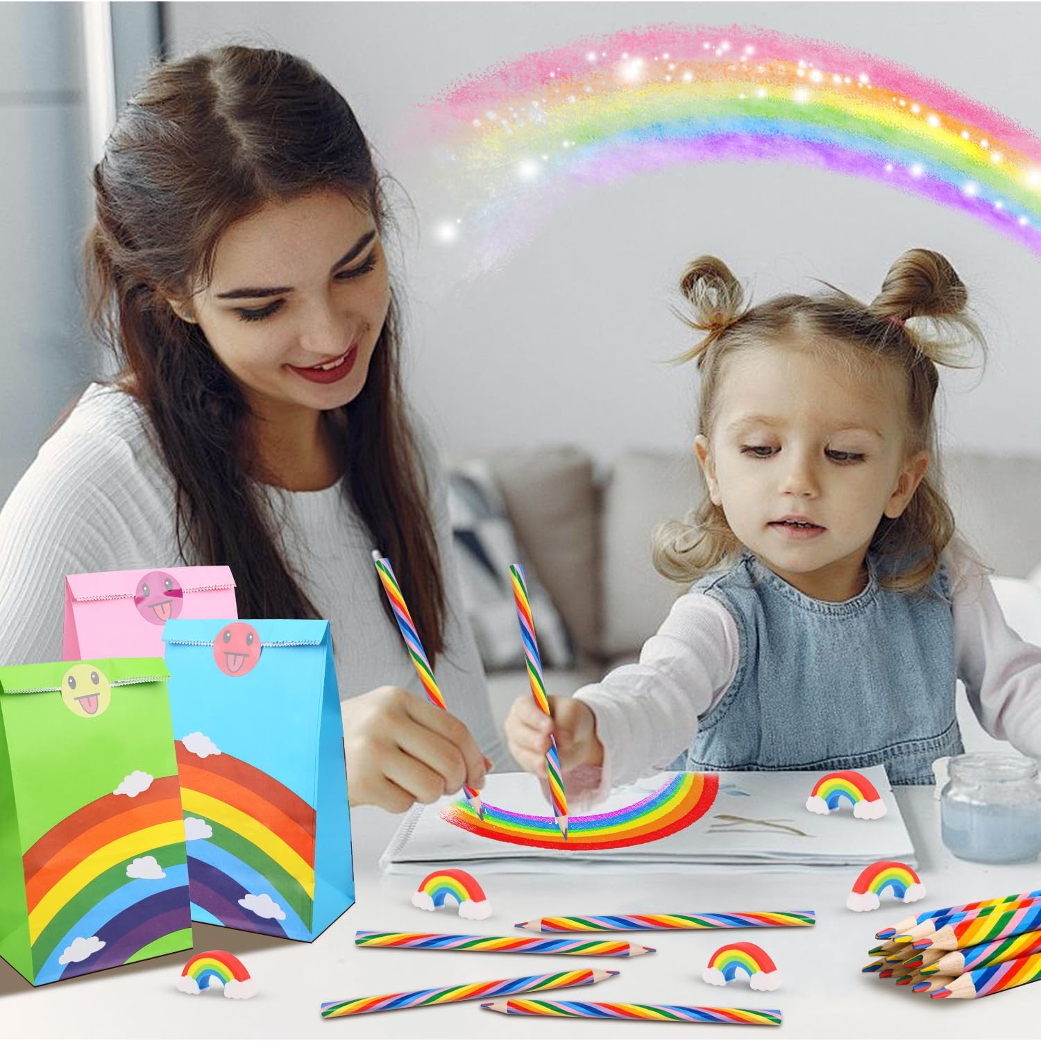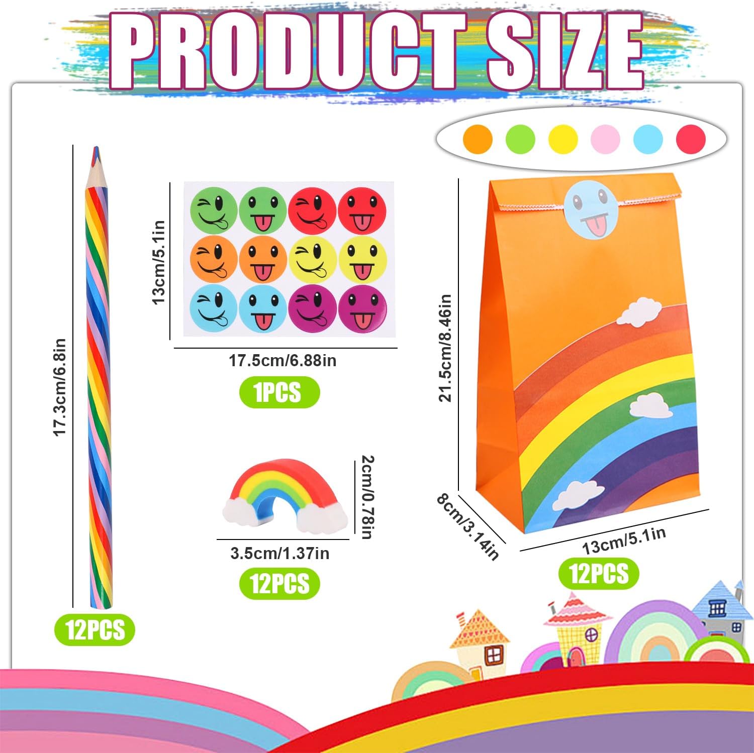🌈【Rainbow Coloured Pencils】Il nostro set di Rainbow Coloured Pencils contiene 12 matite arcobaleno, 12 sacchetti regalo arcobaleno e 12 gomme da cancellare arcobaleno. Perfetto come regalo di compleanno, regalo per feste, regalo di Natale, regalo di ritorno a scuola, regalo di laurea e ricompensa per gli studenti in classe ☁️【Sacchetti regalo di compleanno per bambini】 I nostri sacchetti regalo di carta arcobaleno sono realizzati in carta kraft di alta qualità, leggera e resistente. Misura 13 x 8 x 24 cm e offre molto spazio per confezionare i regali. I sacchetti di carta per il compleanno dei bambini arcobaleno hanno una base piatta in modo che stiano bene e possano sostenere facilmente un peso di almeno 5,5 libbre. I sacchetti regalo arcobaleno rendono i regali unici e interessanti e aggiungono un tocco curato che rende il regalo ancora più prezioso ✨【Matite Colorate Arcobaleno 4 in 1】Le matite arcobaleno bambini contengono 4 colori, vale a dire rosso, giallo, verde e blu, ideali per scarabocchiare, cosa che i bambini adorano. Scrivere da diverse angolazioni ti darà colori diversi per i risultati più belli. Non importa se stai disegnando, facendo schizzi, dipingendo o colorando, sei ben equipaggiato con queste matite colorate arcobaleno 💖【Gomme arcobaleno】Le nostre gomme sono realizzate in materiale TPR di alta qualità, morbido e non tossico, non si deteriora, ha una buona cancellabilità e presenta un design arcobaleno, creando un bellissimo effetto visivo 🎁【Regalo perfetto】Le matite colorate arcobaleno per bambini colpiscono per i loro colori vivaci, la consistenza piacevole e l'applicabilità versatile. Ideale per chiunque voglia esprimere la propria creatività. creano un'atmosfera felice e possono essere inviati come regalo per il rientro a scuola, come premio di classe, come regalo di classe, come regalo di laurea e come bomboniera