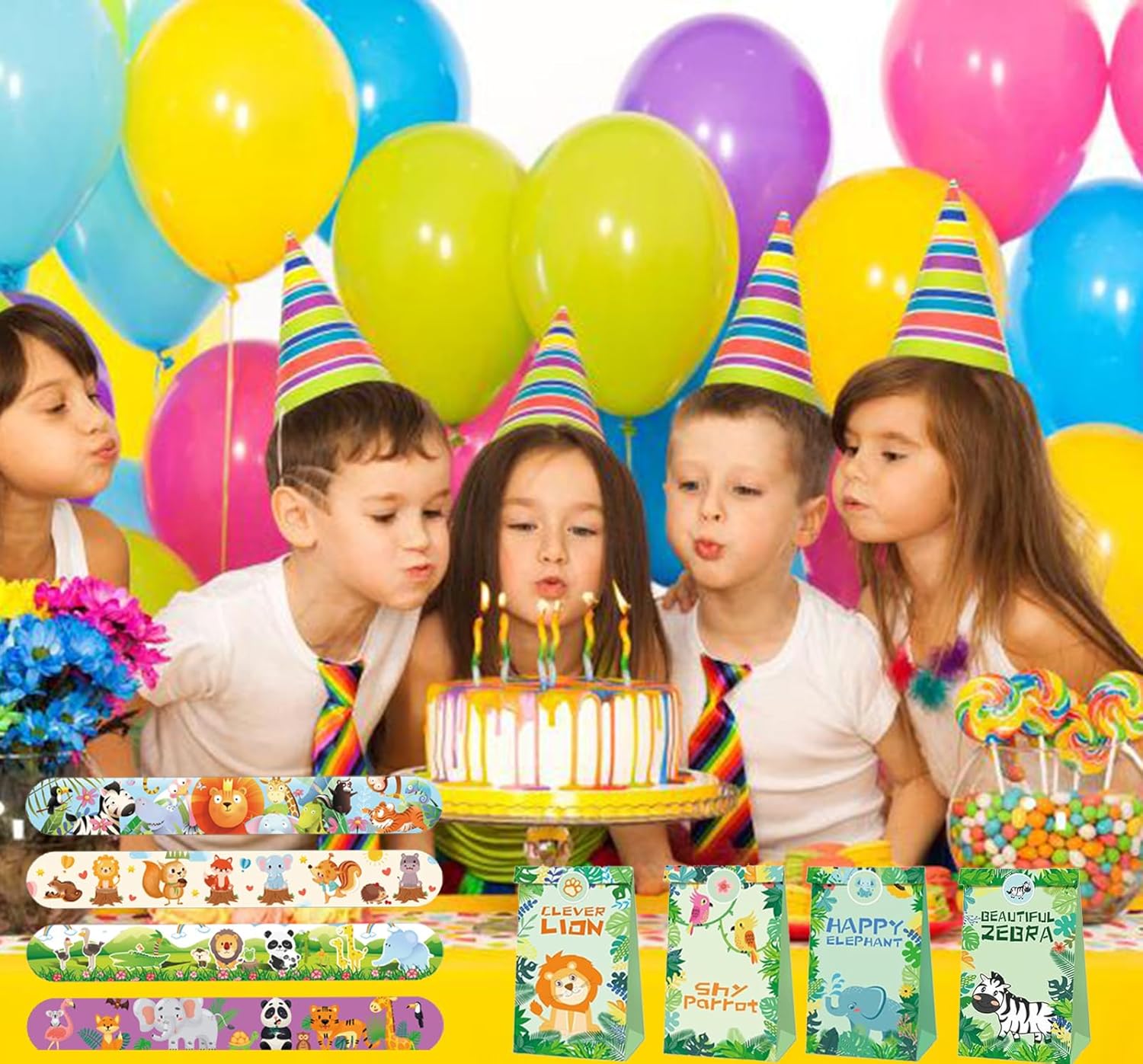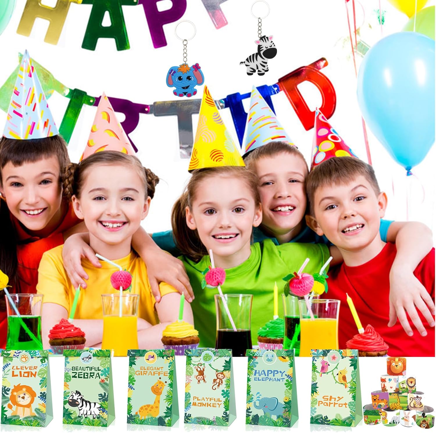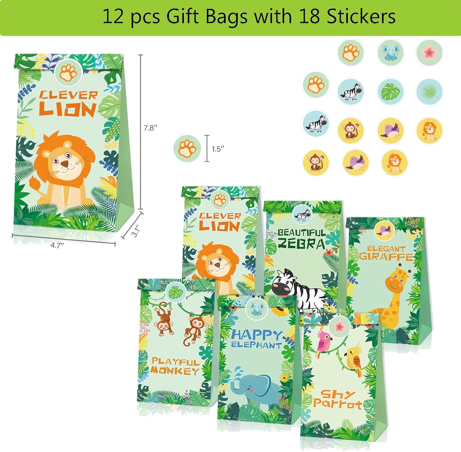 【Set per feste Safari nella giungla】 Bomboniere per feste di compleanno nella giungla da 36 pezzi Compleanno per bambini Contiene 12 braccialetti con chiusura a scatto Safari, 12 portachiavi nella giungla e 12 sacchetti di carta regalo. Perfetto per bambini, ragazzi, tema animali selvatici, borsa per festa di compleanno, riempitivi per pignatta. 【Design unico】 Le bomboniere con animali della giungla sono realizzate con elementi animali vivaci e carini. Design unico e carino, offre divertimento infinito per i bambini. Organizza un'indimenticabile festa di compleanno con animali per i tuoi bambini 【Ampia applicazione】 Il nostro set per feste safari nella giungla Adatto per feste a tema nella giungla, feste con animali selvatici, feste di compleanno, feste nella giungla, premi in classe, regali di Pasqua, riempitivi per calze di Natale, regali per feste di Halloween ecc. Puoi precompilare come bomboniere per ogni bambino, che sarà una sorpresa per loro e renderà la tua festa più memorabile 【Servizio soddisfacente】 La soddisfazione del cliente è il nostro comandamento principale. Se hai domande su questo safari con bomboniere per animali, contattaci immediatamente e ti daremo una risposta soddisfacente