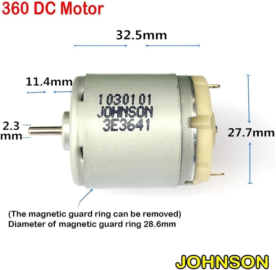 DSZUJTYROP Model: 360 electronic starter Size: 32.5mm*27.7mm Shaft Diameter: 2.3mm Shaft length: 11.4mm Weight: 60g Voltage Range: DC 3V-12V