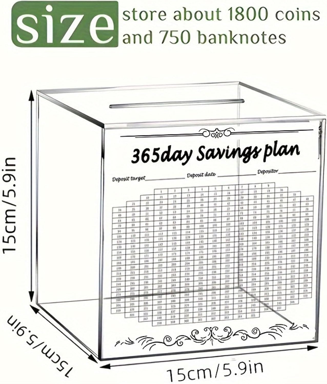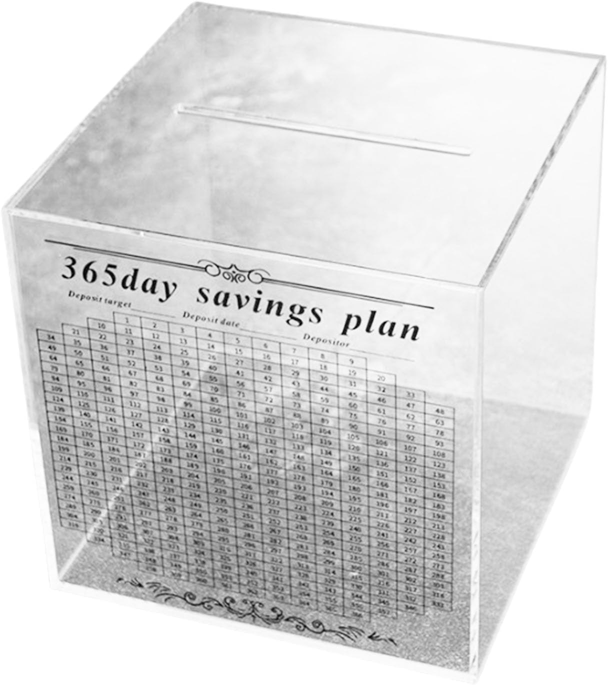 Un senso di realizzazione con questo risparmio di denaro; non solo un regalo, ma un trampolino di lancio verso un viaggio di fidanzata/famiglia verso idee finanziarie Abbraccia la sfida di 365 giorni con il nostro innovativo vetro risparmio di denaro, un potente strumento ideale per aumentare la tua disciplina finanziaria e raggiungere il tuo obiettivo di risparmio Hanno una funzione unica di conto alla rovescia, questo barattolo di risparmio blocca il tuo deposito quotidiano, nessun prelievo e consente di impostare sia gli importi target che le frequenze di deposito per tracce di progresso univoci Risparmio di denaro perfetto per il posizionamento in case, uffici o scuole Ideale per individui o famiglie che si sforzano di coltivare abitudini di salvataggio, in particolare spese impulsive come studenti e aspetto professionale, per gestire meglio le loro finanze