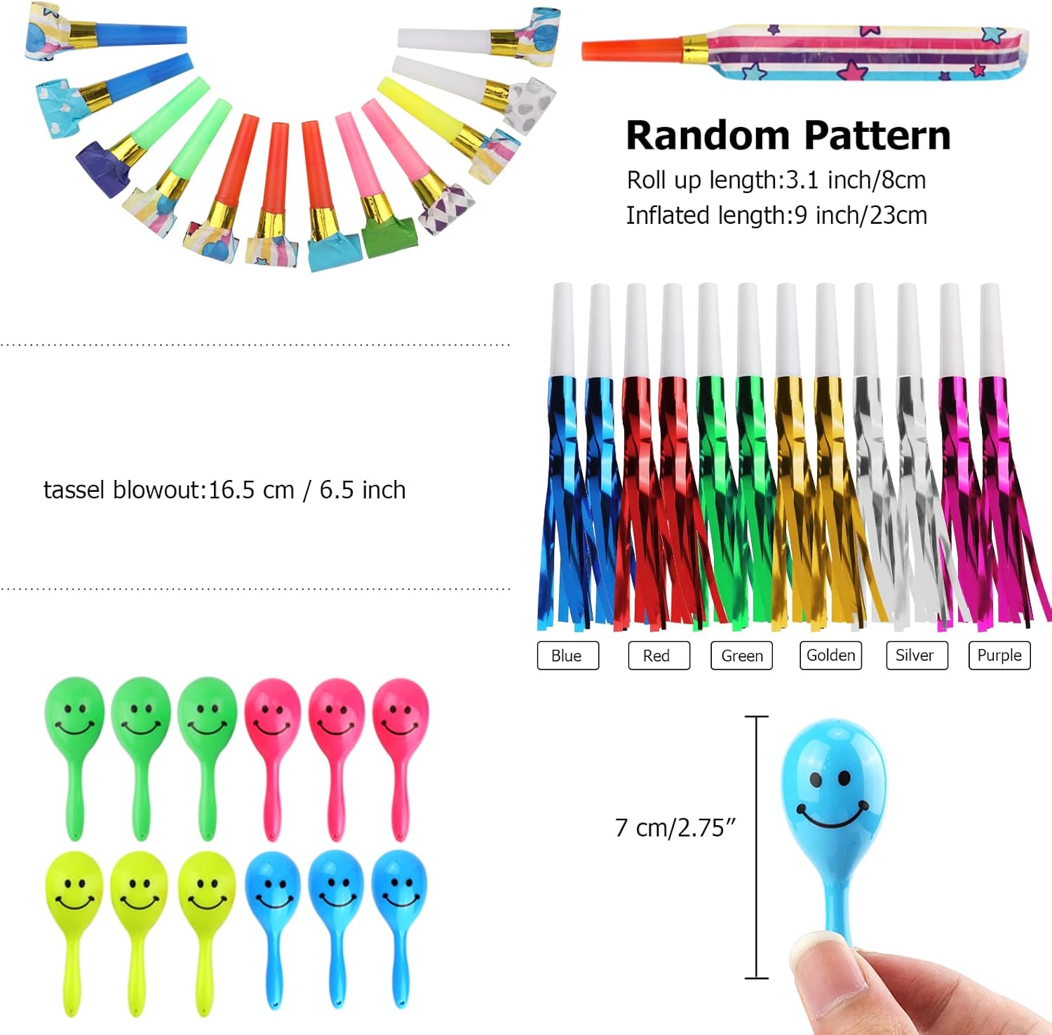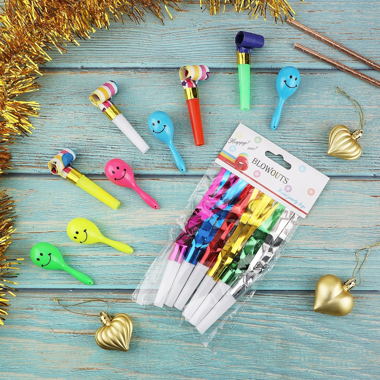 ❤ 【Funning Party Helper】Il cibo delizioso e le decorazioni colorate per le feste sono pronte, cosa ti manca ancora per una festa? I rumorosi! Il nostro set di rumori per feste contiene 3 tipi di rumori diversi, sarà di grande aiuto per aggiungere più divertimento e atmosfera alla tua festa. I colori vivaci e i motivi sulle parti in plastica rendono la festa più vivace e colorata per i tuoi bambini, ospiti e amici! ❤ 【Stili ricchi e quantità sufficiente】Totalmente 36 pezzi di giocattoli rumorosi per feste, inclusi 12 pezzi di soffiatori di carta divertenti, 12 pezzi di scoppi in metallo con frange glitterate e 12 pezzi di mini agitatori per mani con musica al neon. 3 tipi di suoni diversi di noisemaker, quantità sufficiente, soddisfano completamente tutto ciò di cui hai bisogno e desideri per una festa. I tuoi bambini e i tuoi ospiti devono amarli, serviamoli e scuotiamo le cose con un ritmo rauco. ❤ 【Sicuro da usare】I nostri creatori di rumore con frange metalliche glitterate sono progettati perfetti per le dimensioni dei bambini e realizzati in plastica e carta di qualità, sicuri e non tossici, leggeri da trasportare, non facili da rompere o strappare, affidabili da usare a lungo tempo, ideale per creare rumori divertenti e interessanti, utile per catturare l'attenzione delle persone alla festa. ❤ 【Accessori per feste perfetti】Questi fischietti musicali per feste per bambini possono vibrare furiosamente e rapidamente, utili per formare suoni interessanti ed effetti visivi gioiosi, porteranno un'atmosfera divertente a feste di strada, giochi sportivi, eventi di raccolta, attività scolastiche e altro ancora. Sia le ragazze che i ragazzi possono divertirsi a usarli. ❤ 【Applicazioni estese】I nostri coloratissimi generatori di suoni di corno di soffio possono produrre suoni divertenti e allegri e ravvivare l'atmosfera della festa, possono essere applicati per decorare feste per bambini, feste di compleanno, feste di Halloween, addio al nubilato, capodanno, feste di laurea e altre feste . Ottimo anche come materiale per le vacanze, piccoli premi per giochi e premi per la scatola del tesoro della chiesa.