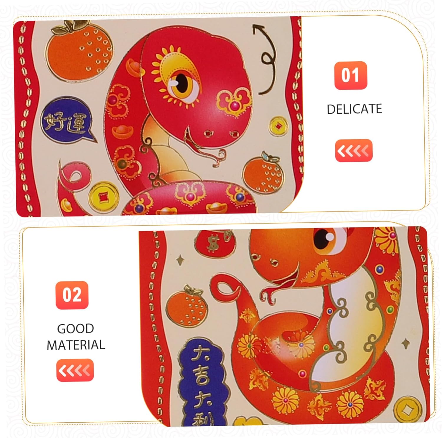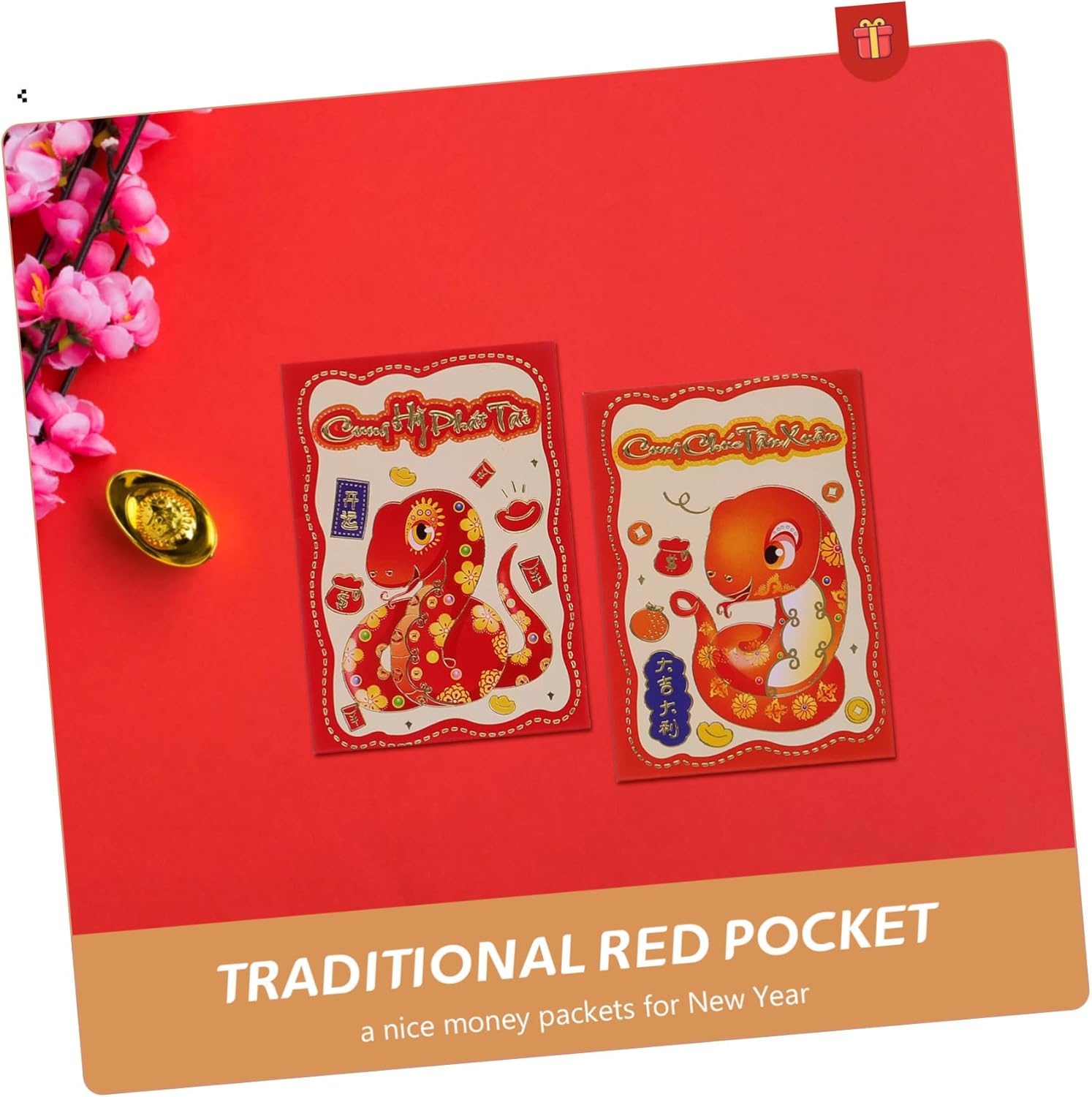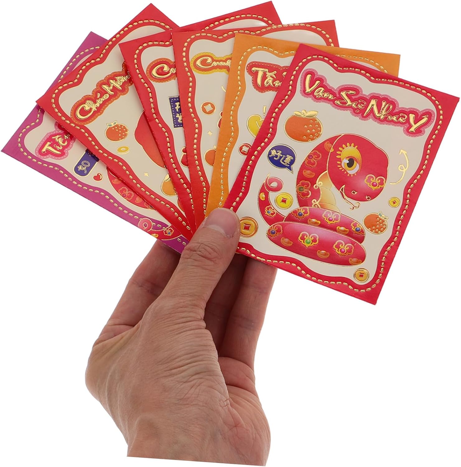 Festeggia l'anno del serpente nel 2025 con queste buste rosse dal design accattivante, che simboleggiano buona fortuna e prosperità. Queste buste hanno dimensioni comode, il che le rende ideali per trasportare e distribuire i soldi del anno ad amici e familiari. Caratterizzate da design tradizionali vietnamiti, queste buste aggiungono un tocco di stile culturale ed alle tue celebrazioni di Capodanno. Ogni set include 30 buste, fornendoti un'ampia per molteplici usi, assicurandoti di averne abbastanza per tutte le tue esigenze. Realizzate con costruzione, queste buste sono progettate per la longevità e la riutilizzabilità, consentendoti di utilizzarle anno dopo anno.