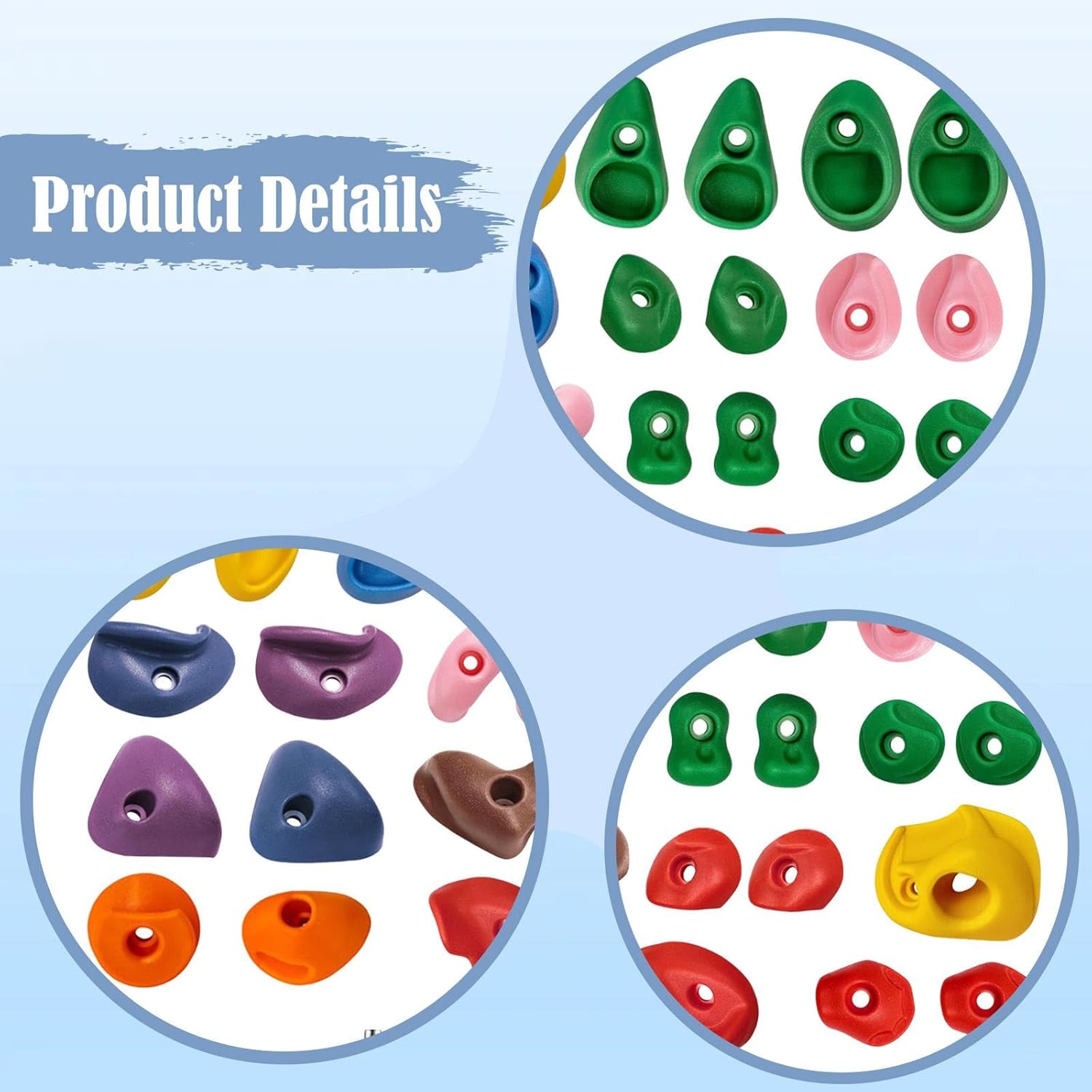 【Facile da installare】: il kit per arrampicata su parete rocciosa è facile da installare. per arrampicata in pietra possono essere utilizzate per costruire pareti rocciose nelle camerette dei bambini o nei parchi giochi all'aperto. 【Materiale】: Prese da arrampicata realizzate in PP. Queste prese da parete non si crepano né sbiadiscono. Le impugnature testurizzate per piedi e mani facilitano la presa e l'arrampicata dei bambini. 【Funzione】: le impugnature per pareti da arrampicata sono disponibili in una varietà di colori, dimensioni e forme vivaci. Aiutano a migliorare la , l'equilibrio, l'agilità, la flessibilità dei bambini e aumentano la loro sicurezza. 【Robusto】: i supporti per l'arrampicata sono abbastanza robusti da sostenere i bambini. Trascorri del tempo di qualità con i tuoi bambini con questa divertente attività. 【Multiforme】: i giocattoli con pietre da arrampicata hanno una varietà di forme carine che possono attirare i bambini a giocare e aiutare a migliorare la loro fisica