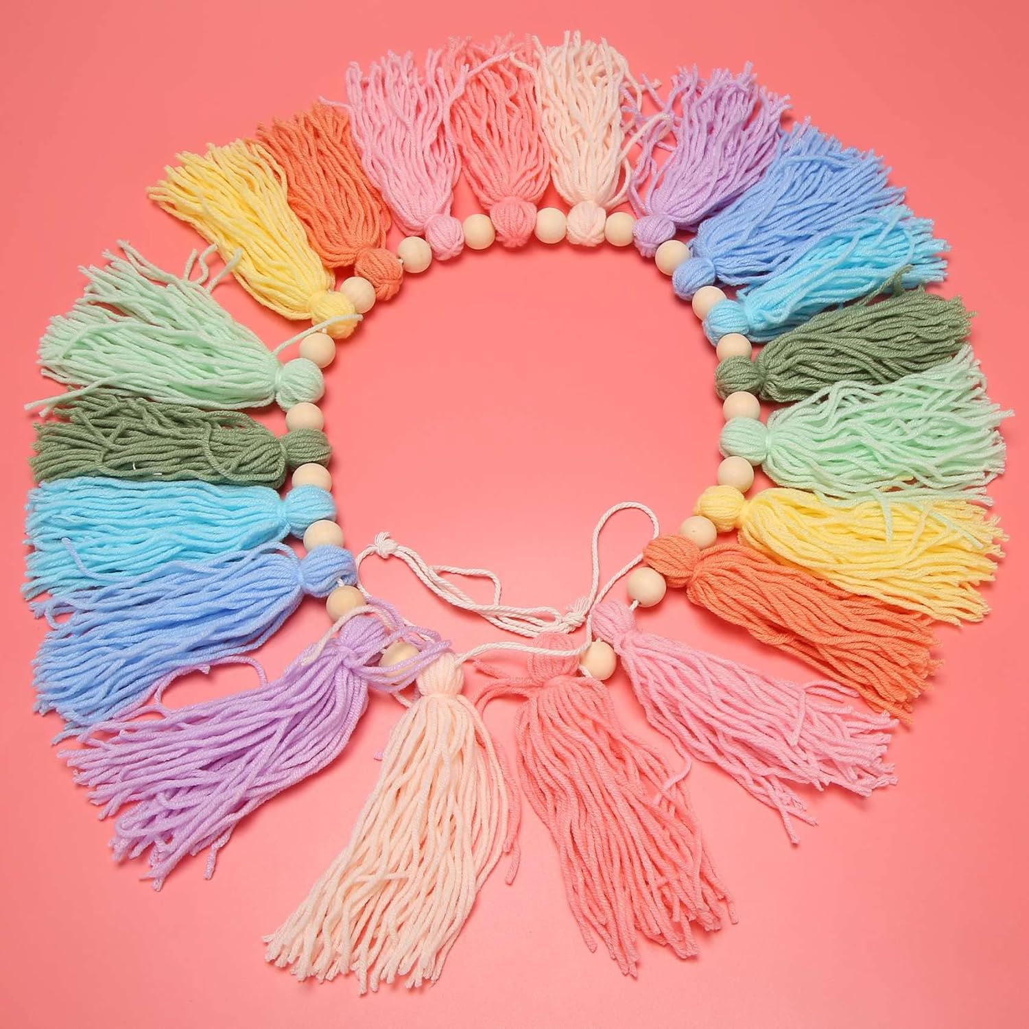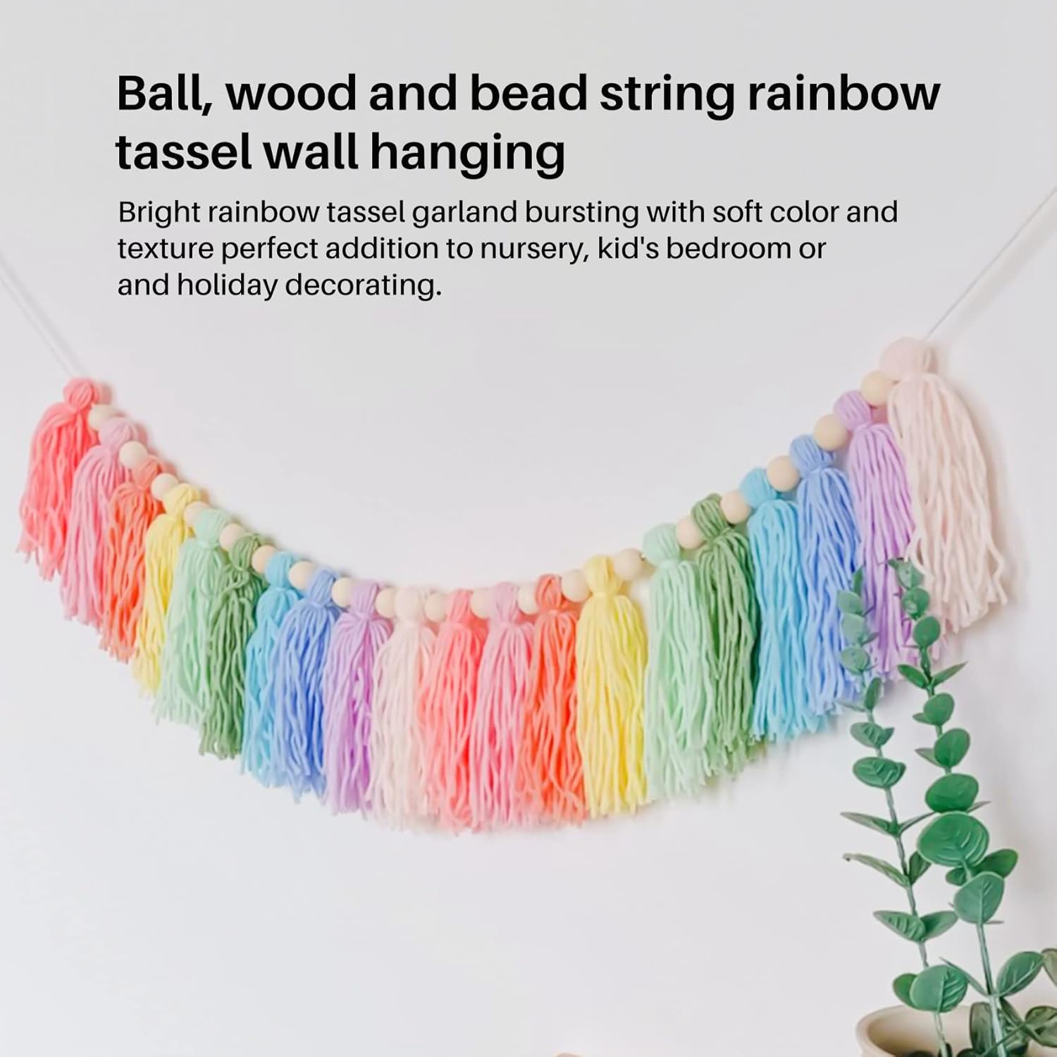 ghirlanda colorata: ghirlanda con nappe arcobaleno piena di colori tenui e consistenza, perfetta per la cameretta dei bambini, la cameretta dei bambini o la decorazione delle vacanze. MATERIALE: Con filato multicolore e perline di legno naturale. Texture morbida, sensazione confortevole, non macchierà il tuo muro. REGALO: come regalo premuroso per una festa di compleanno, baby shower o Natale. Colori vivaci illuminano la stanza dei bambini. Aggiungi una dolce sensazione alla stanza.