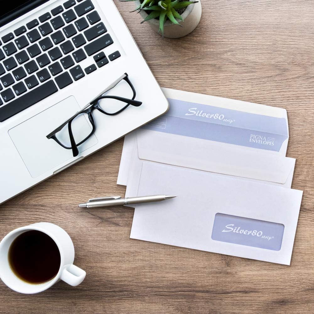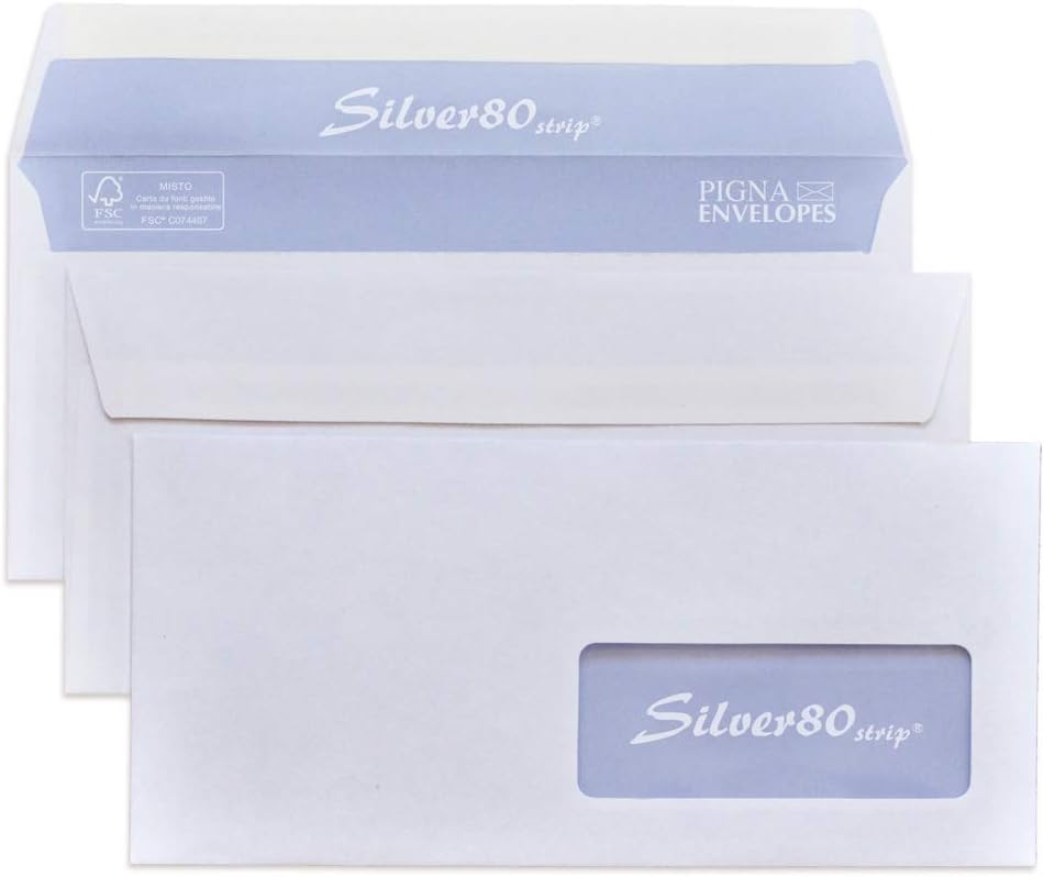Busta commerciale formato 110 x 230 strip Carta naturale uso mano bianca fsc da 80 grammi Chiusura patella strip Con finestra 40 x 100 Impacco da 500 buste