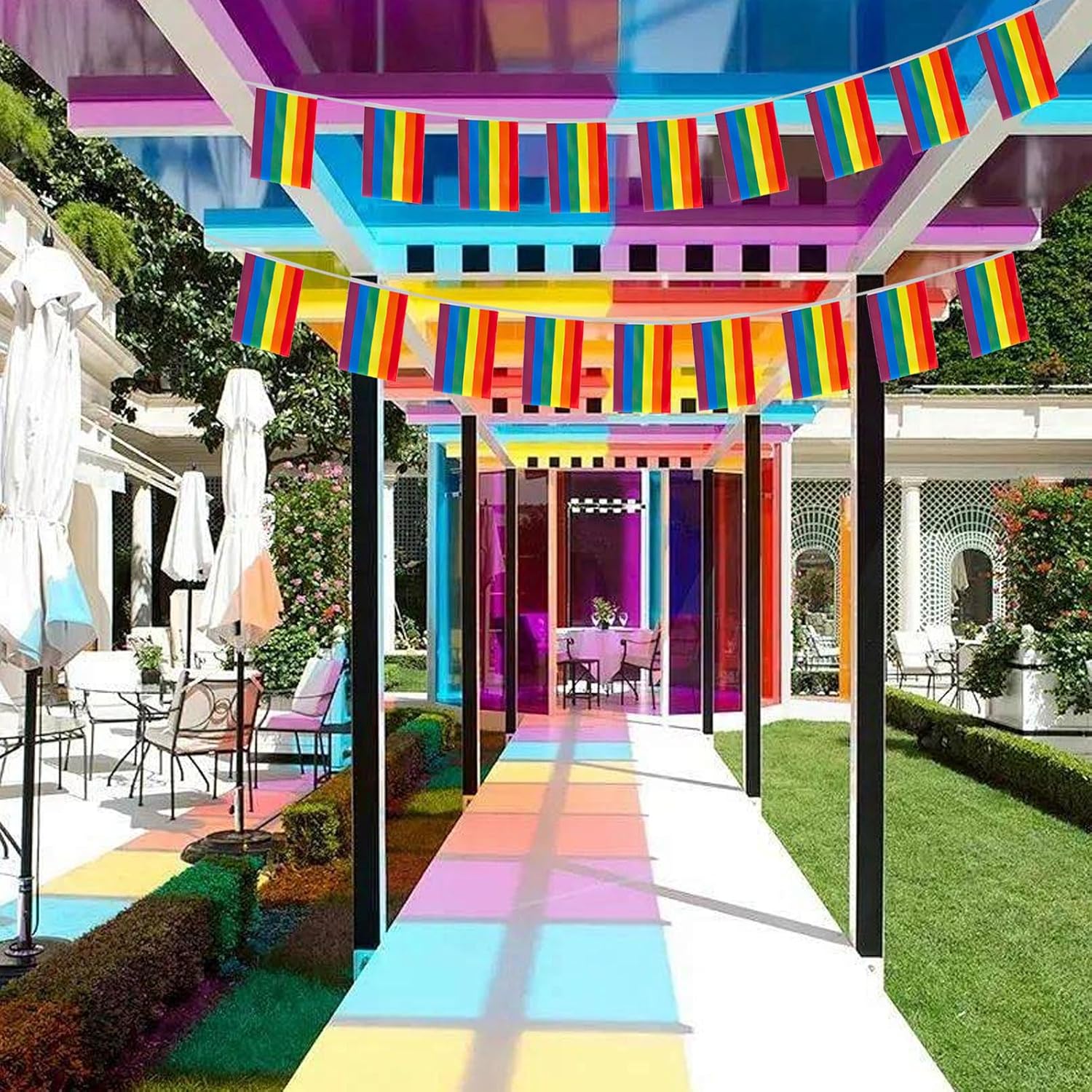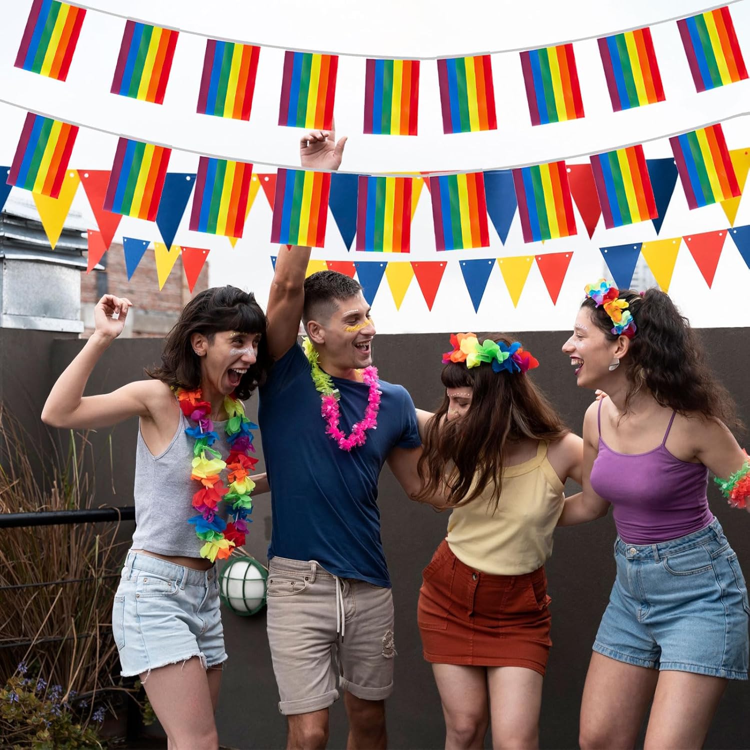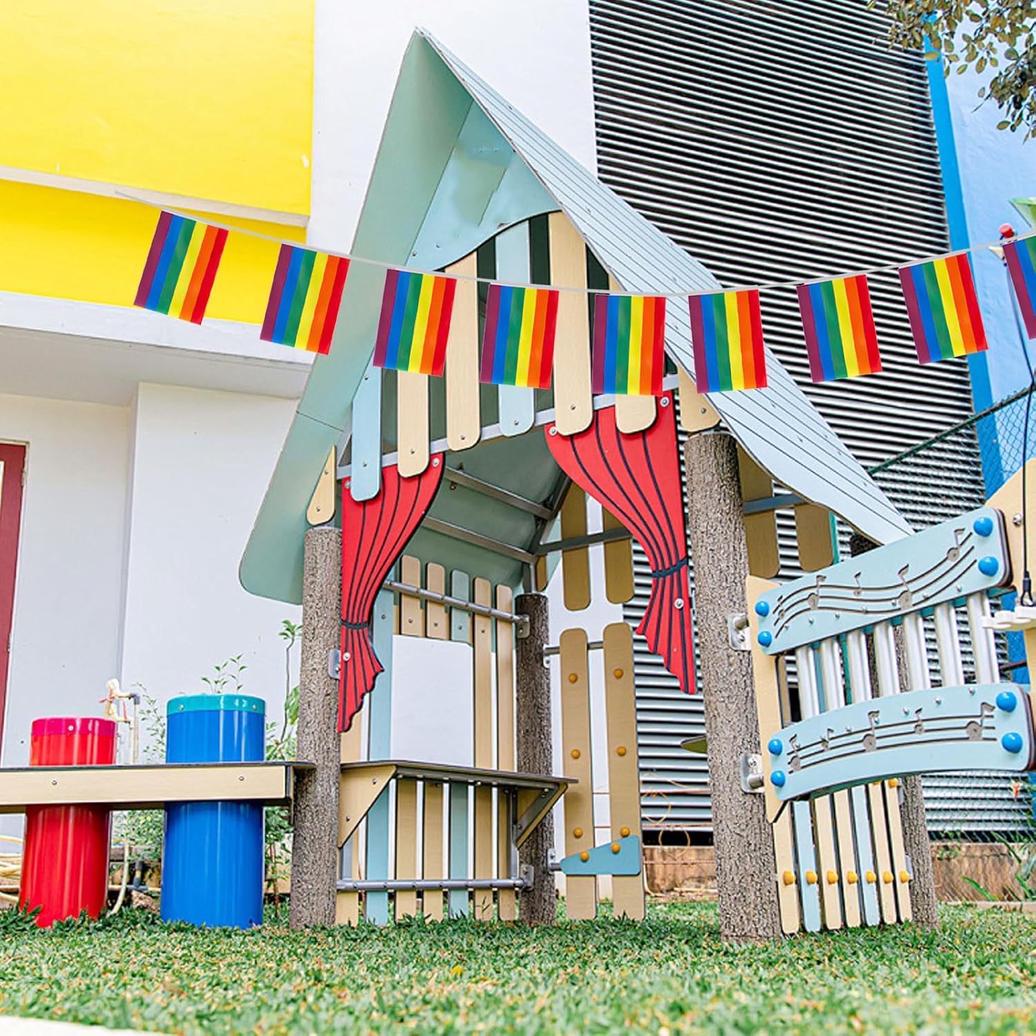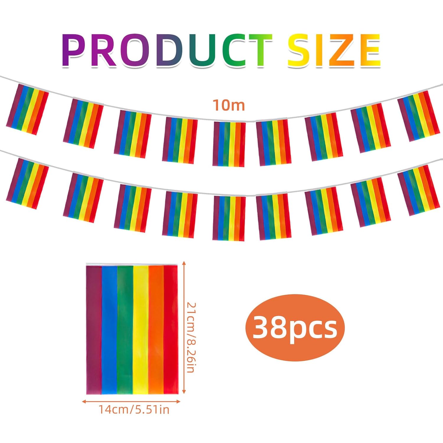 STRISCIONI PRIDE DUREVOLI E VIBRANTI: Realizzati in resistente tessuto di poliestere e infilati con una corda robusta. I nostri striscioni Pride presentano colori vivaci che resistono allo sbiadimento, sono impermeabili e possono resistere al vento, alla pioggia e alla luce solare intensa. Questi banner sono progettati per durare in tutte le condizioni atmosferiche. 【Dimensioni e quantità generose】 Ogni stendardo dell'orgoglio contiene 38 piccole bandiere arcobaleno, ciascuna delle quali misura 8,2 x 5,5 pollici (21 x 14 cm). La lunghezza totale del banner è di ben 10 metri e fornisce una copertura sufficiente per qualsiasi stanza. Colori ricchi e duraturi: le bandiere sono stampate utilizzando la tecnologia di stampa serigrafica e sublimate con coloranti utilizzando la sublimazione del colore. Ciò garantisce che i colori rimangano vibranti e fedeli anche dopo il lavaggio o una prolungata esposizione all'aperto. Questi banner sono perfetti per l'uso esterno. DESIGN ACCATTIVANTE E COLORATO: questo striscione con bandiera rettangolare è perfetto per mostrare il tuo sostegno durante il mese del Pride. I suoi colori brillanti e audaci e il design accattivante lo rendono ideale per sfilate, feste e decorazioni domestiche. Sicuramente farà girare la testa.,Versatile e significativo: lo striscione con bandiera Rainbow Pride è una scelta popolare per mostrare il tuo sostegno. Appendilo all'interno o all'esterno per celebrare il mese del Pride o usalo come simbolo di amore, uguaglianza e libertà. Questi striscioni sono perfetti per ogni occasione e per ogni stanza.