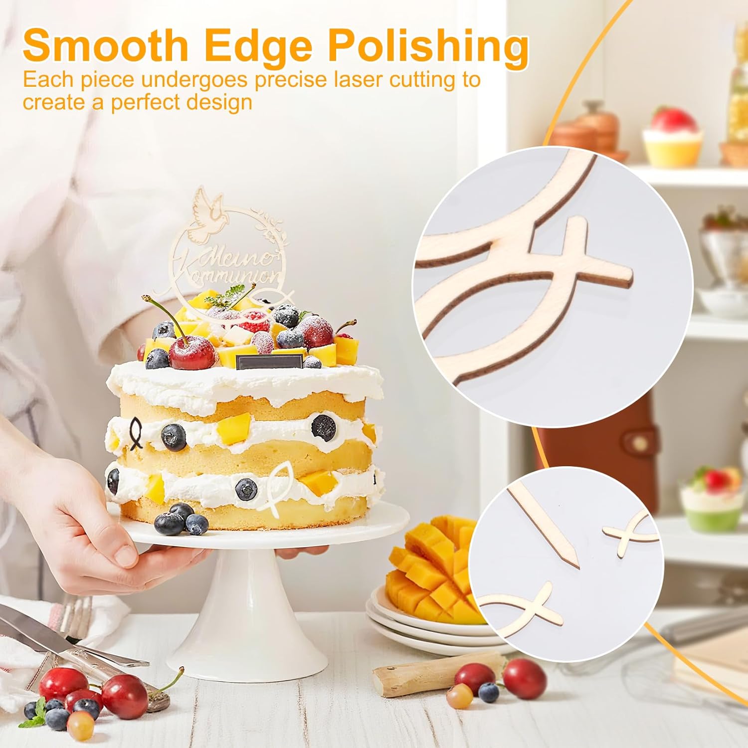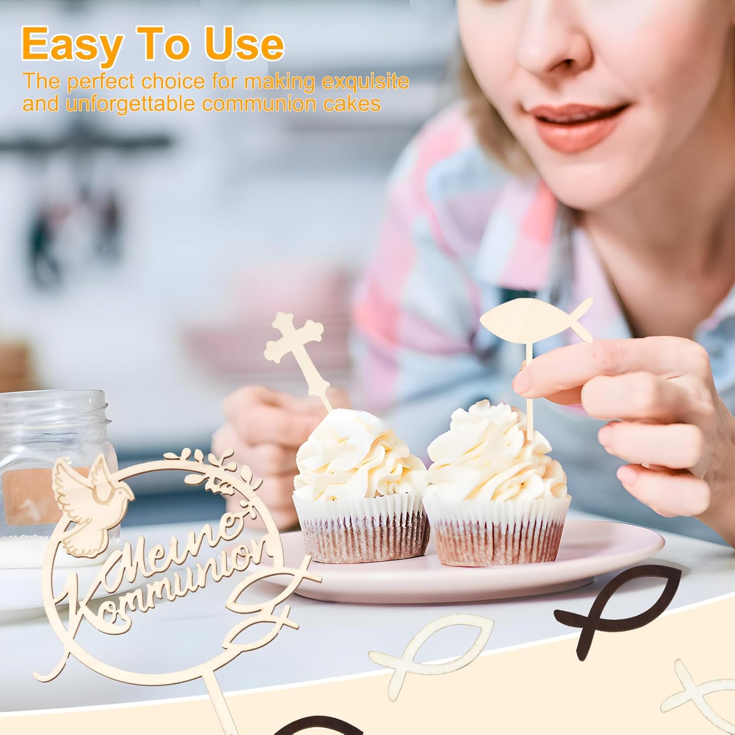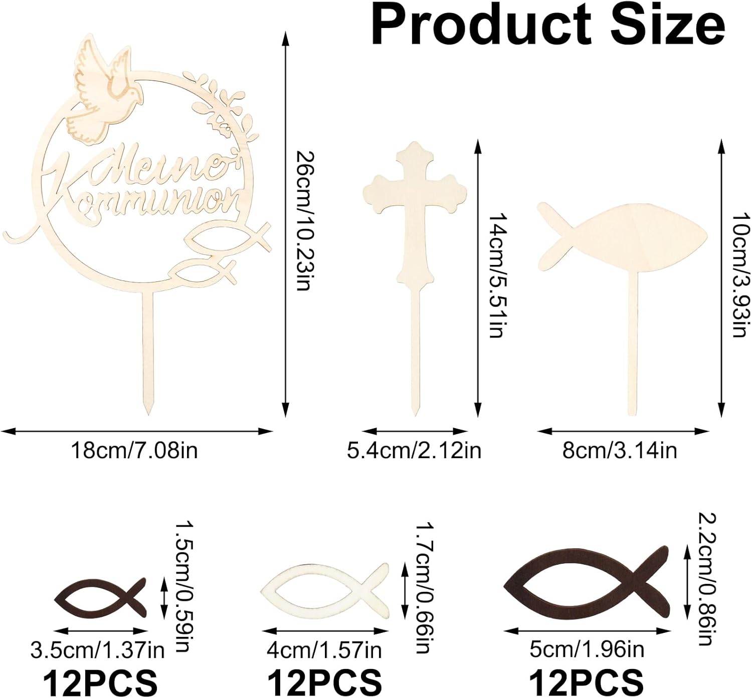 💝【Materiale di alta qualità】: Realizzati in legno di alta qualità, questi toppers per torta di comunione sono durevoli e riutilizzabili. Puoi anche scrivere il tuo nome o una data sui pesci o sulle croci per un'esperienza di creazione personalizzata. 💝【Superficie liscia e alta precisione】: i toppers per torta prima comunione presentano un bordo lucido e liscio, senza segni o imperfezioni antiestetiche. Ogni pezzo è tagliato al laser con precisione per un design perfetto che esalta l'impatto visivo della torta. 💝 【Facile da usare】: i toppers per torta di comunione sono ideali per creare torte di comunione squisite e memorabili. Le decorazioni in legno realizzate con cura conferiscono alla tua torta un aspetto elegante e senza tempo e sottolineano l'atmosfera festosa. 💝【Versatile】: Ideale per celebrazioni, feste o eventi speciali, ti permette di creare ricordi indimenticabili. È ideale per aggiungere un tocco personale alle tue torte, cupcake o tavoli da dessert per ogni occasione speciale. 💝【Decorazione torta di comunione】: Questa scatola contiene 39 pezzi: 1 decorazione grande in legno, 1 croce, 1 pesce (26 x 18 cm, 4 mm di spessore) e 36 pesci in legno disponibili in due colori (marrone e bianco) e tre dimensioni (3,5 cm, 4 cm e 5 cm). È la decorazione ideale per la tua torta.