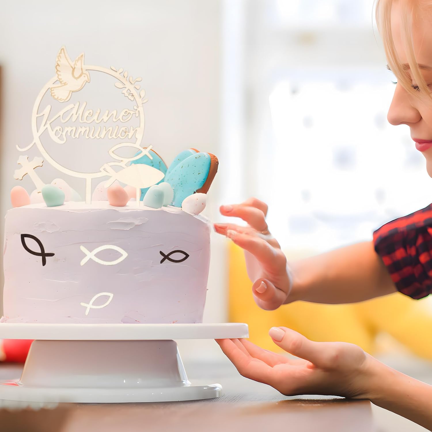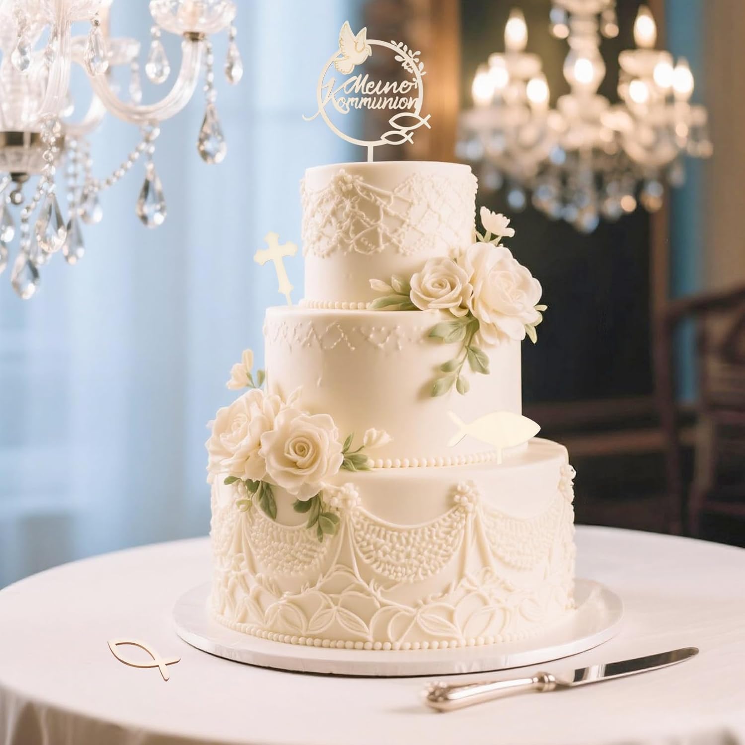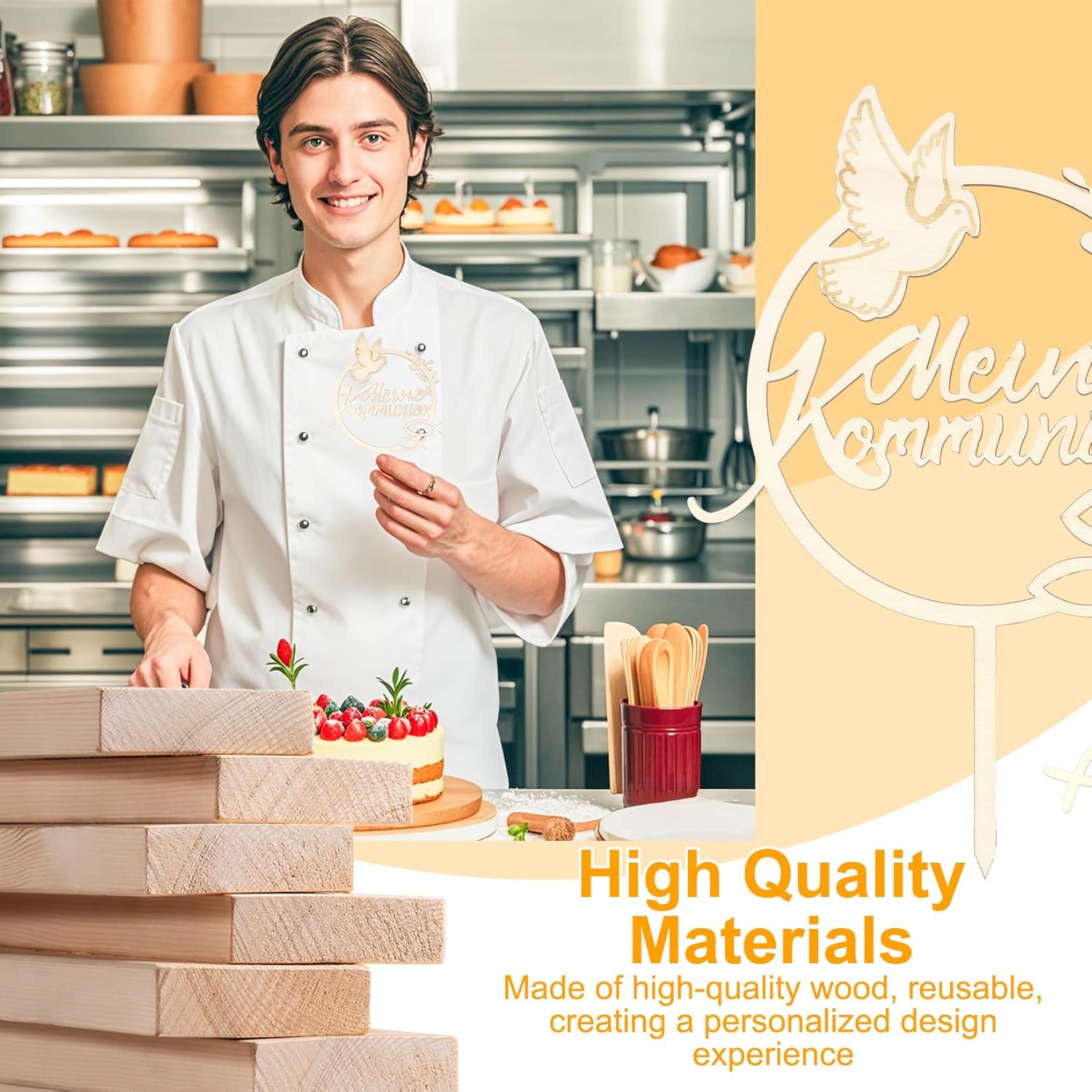💝【Materiale di alta qualità】: Realizzati in legno di alta qualità, questi toppers per torta di comunione sono durevoli e riutilizzabili. Puoi anche scrivere il tuo nome o una data sui pesci o sulle croci per un'esperienza di creazione personalizzata. 💝【Superficie liscia e alta precisione】: i toppers per torta prima comunione presentano un bordo lucido e liscio, senza segni o imperfezioni antiestetiche. Ogni pezzo è tagliato al laser con precisione per un design perfetto che esalta l'impatto visivo della torta. 💝 【Facile da usare】: i toppers per torta di comunione sono ideali per creare torte di comunione squisite e memorabili. Le decorazioni in legno realizzate con cura conferiscono alla tua torta un aspetto elegante e senza tempo e sottolineano l'atmosfera festosa. 💝【Versatile】: Ideale per celebrazioni, feste o eventi speciali, ti permette di creare ricordi indimenticabili. È ideale per aggiungere un tocco personale alle tue torte, cupcake o tavoli da dessert per ogni occasione speciale. 💝【Decorazione torta di comunione】: Questa scatola contiene 39 pezzi: 1 decorazione grande in legno, 1 croce, 1 pesce (26 x 18 cm, 4 mm di spessore) e 36 pesci in legno disponibili in due colori (marrone e bianco) e tre dimensioni (3,5 cm, 4 cm e 5 cm). È la decorazione ideale per la tua torta.
