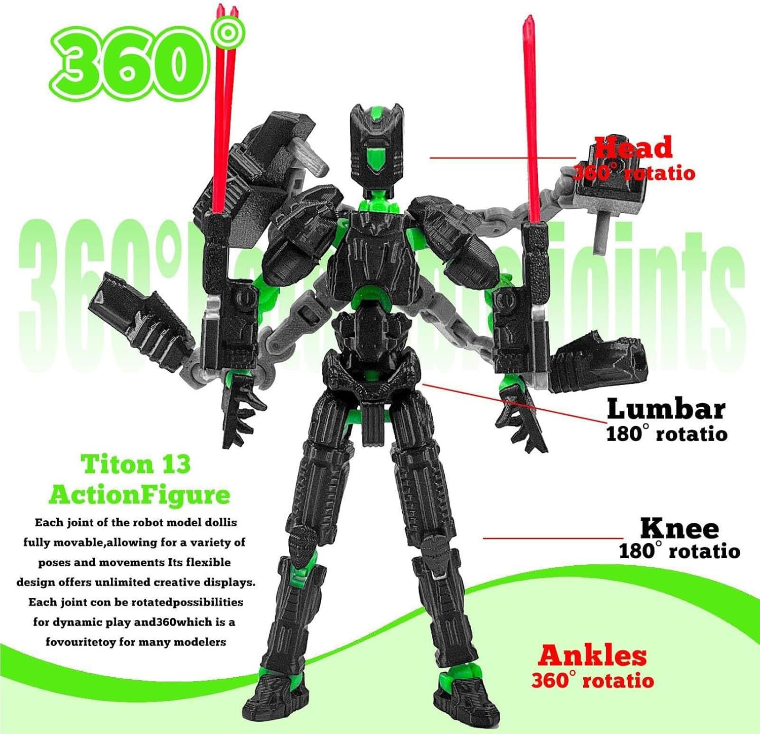 Articulated and Movable Design: Fully poseable 3D printed action figure allows kids, teens, and collectors to arrange it in multiple positions, perfect for photography, creative displays, or dynamic tabletop decoration HighQuality 3D Print: Crafted from durabled, detailed 3D printed material to ensure long-lasting use, intricate design, and smooth articulation, providing an eye-catching collectible or display piece Versatile Display Options: Ideal for desktops, bookcases, window sills, bookshelves, cabinets, nightstands, or bedside tables, adding a playful and stylish element to any room or Collector and Creative Friendly: Perfect for photography, creative projects, or as part of a collectible action figure set, making it a fun and engaging gift for teens, kids, or hobbyists Portable and Lightweight: Compact design allows easy placement on desks, shelves, or display cases, making it simple to move, pose, and rearrange while maintaining stability and visual appeal