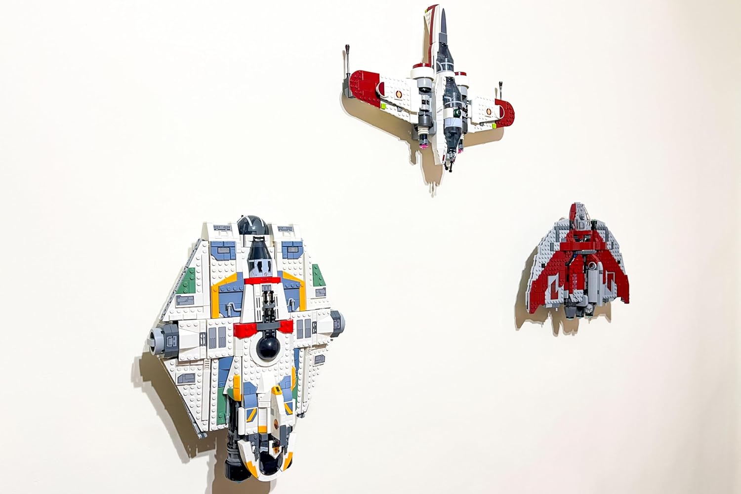 Progettato su misura per la piena compatibilità con il modello LEGO Star Wars Ghost & Phantom II: supporto a parete appositamente progettato per il set 75357 Soluzione di visualizzazione sicura: costruito per garantire resistenza e robustezza - stampato in 3D in plastica grigia resistente con capacità di peso testata per il tuo modello LEGO Installazione semplice: kit di montaggio completo con tasselli e viti di montaggio Manipolazione ed esposizione: rimuovi rapidamente e facilmente il tuo modello LEGO dal supporto a parete per maneggiarlo, quindi esponilo di nuovo in modo sicuro Decorazione da parete salvaspazio: trasforma la tua collezione Lego Star Wars in splendide decorazioni murali, perfette per stanze con spazio di archiviazione limitato